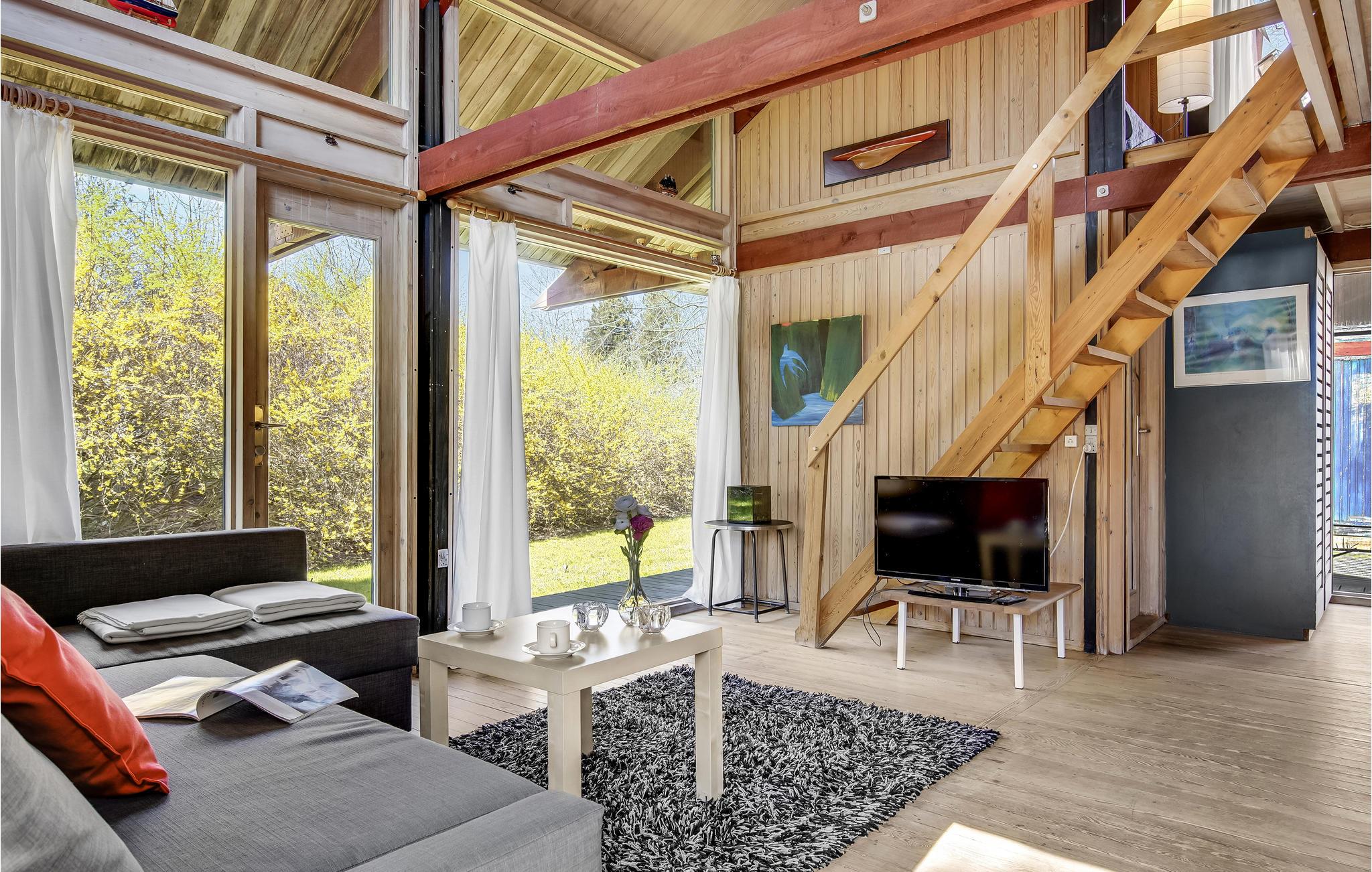 Charmantes Holzferienhaus mit offener Architektur und Terrasse nahe Dronningmølle Strand.
