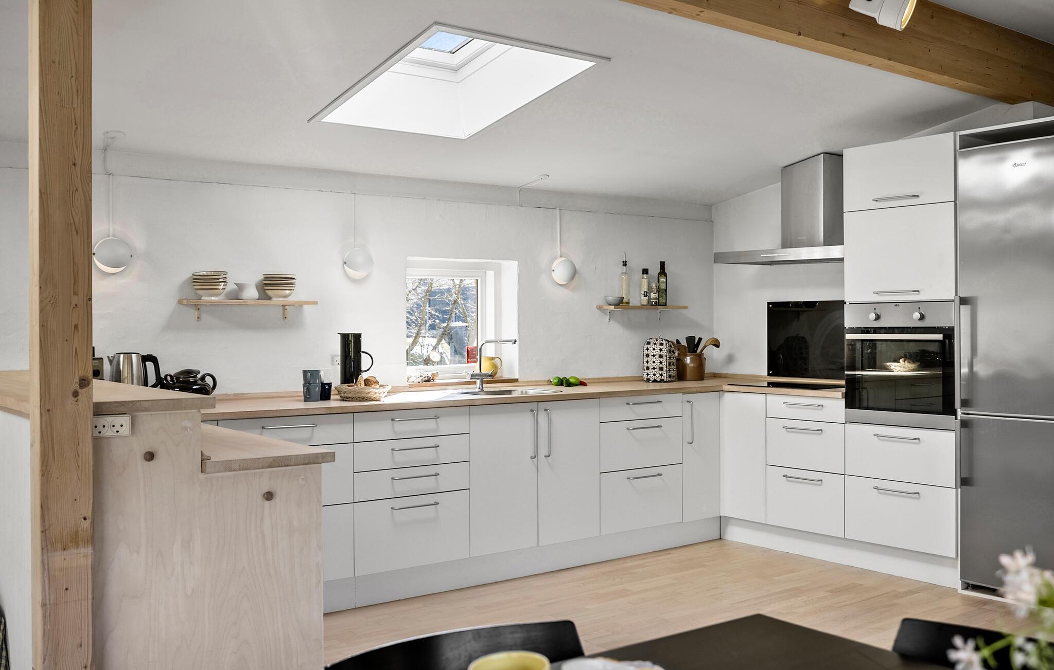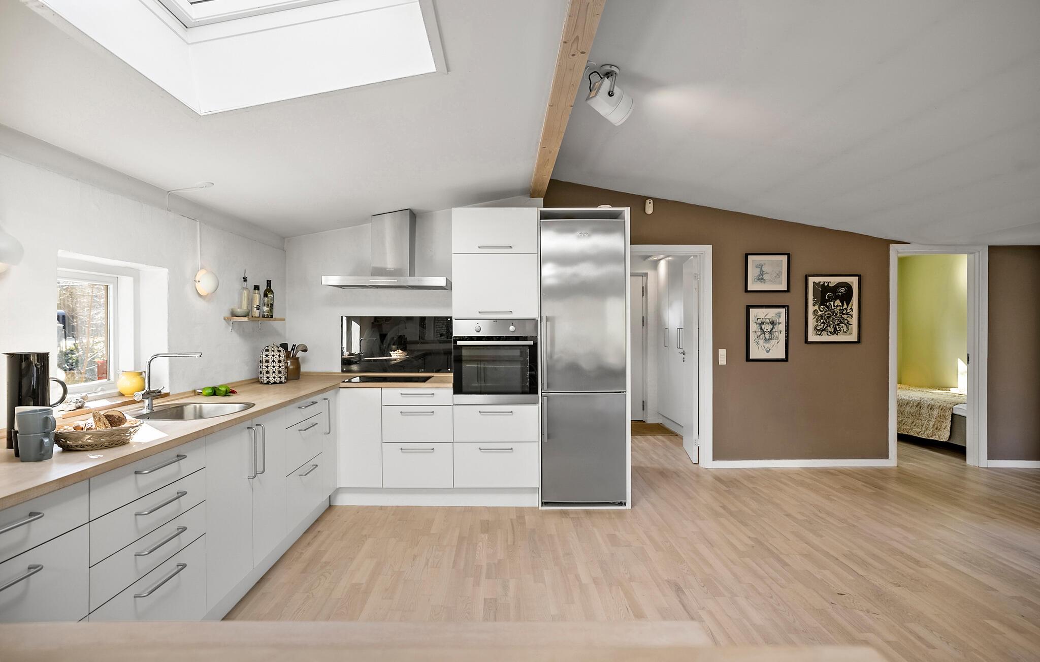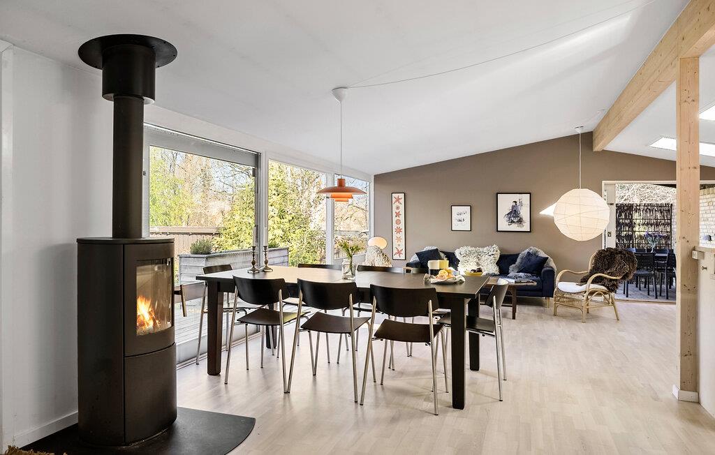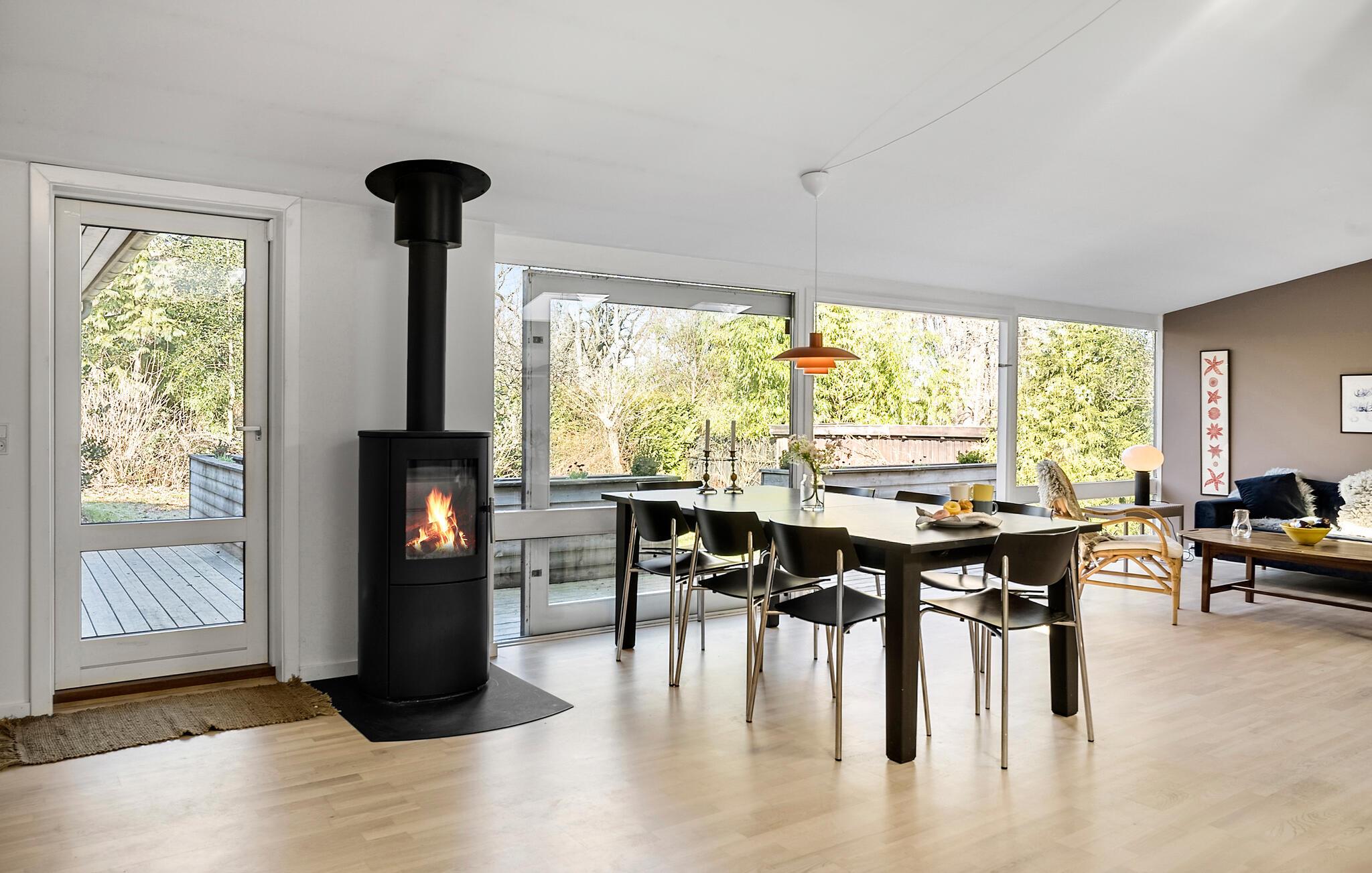 Ihr Ferienhaus befindet sich in einer ruhigen Umgebung und bietet Ihnen einen sichtgeschützten, privaten Garten. Das gemütliche Haus überzeugt durch seine einladende und offene Gestaltung. Beginnen Sie Ihre Urlaubstage entspannt bei einem Frühstück am Esstisch neben der großzügigen Küche, die die Hobbyköche der Familie zu neuen Höchstleistungen animiert. Die großen Fensterflächen sorgen für ein lichtdurchflutetes und angenehmes Ambiente. An kühlen Tagen schafft der Kaminofen wohlige Wärme und lädt zu gemütlichen Stunden ein.