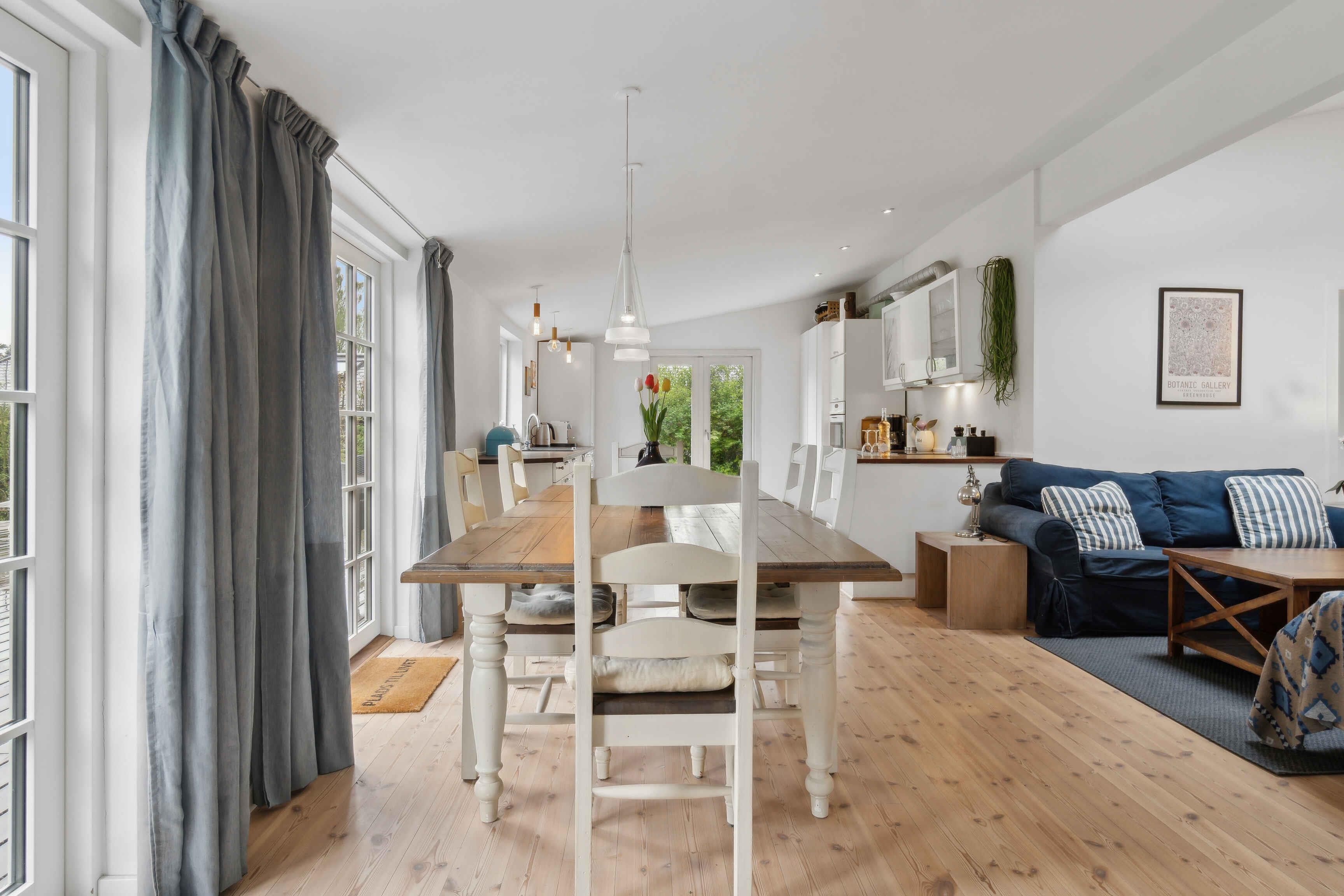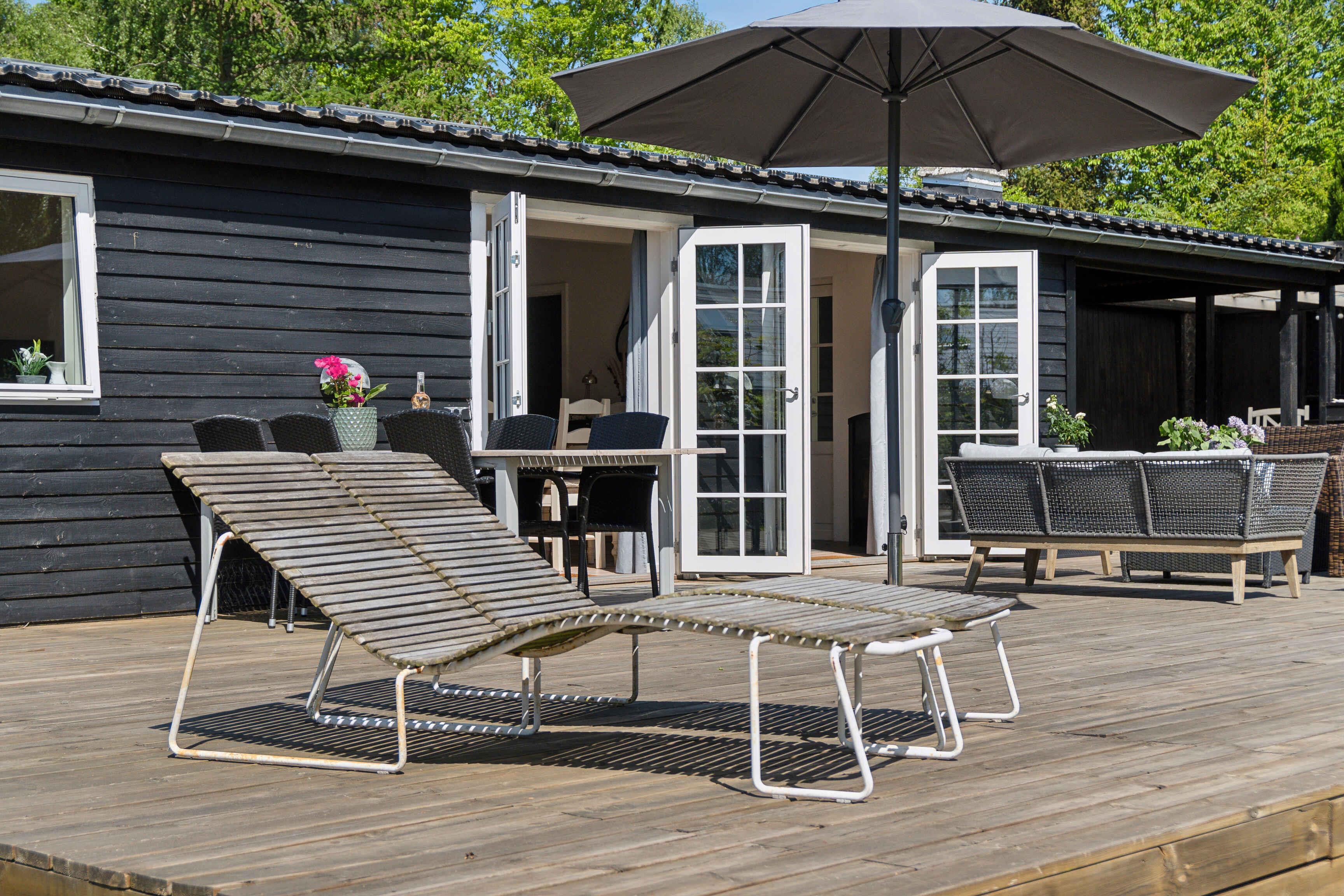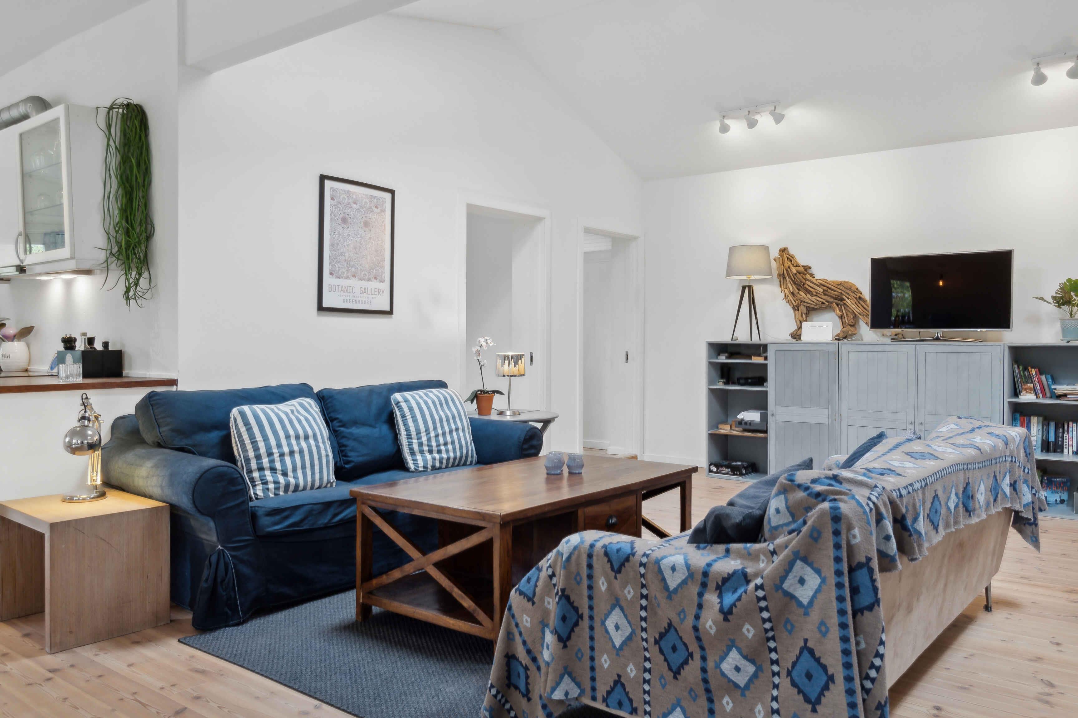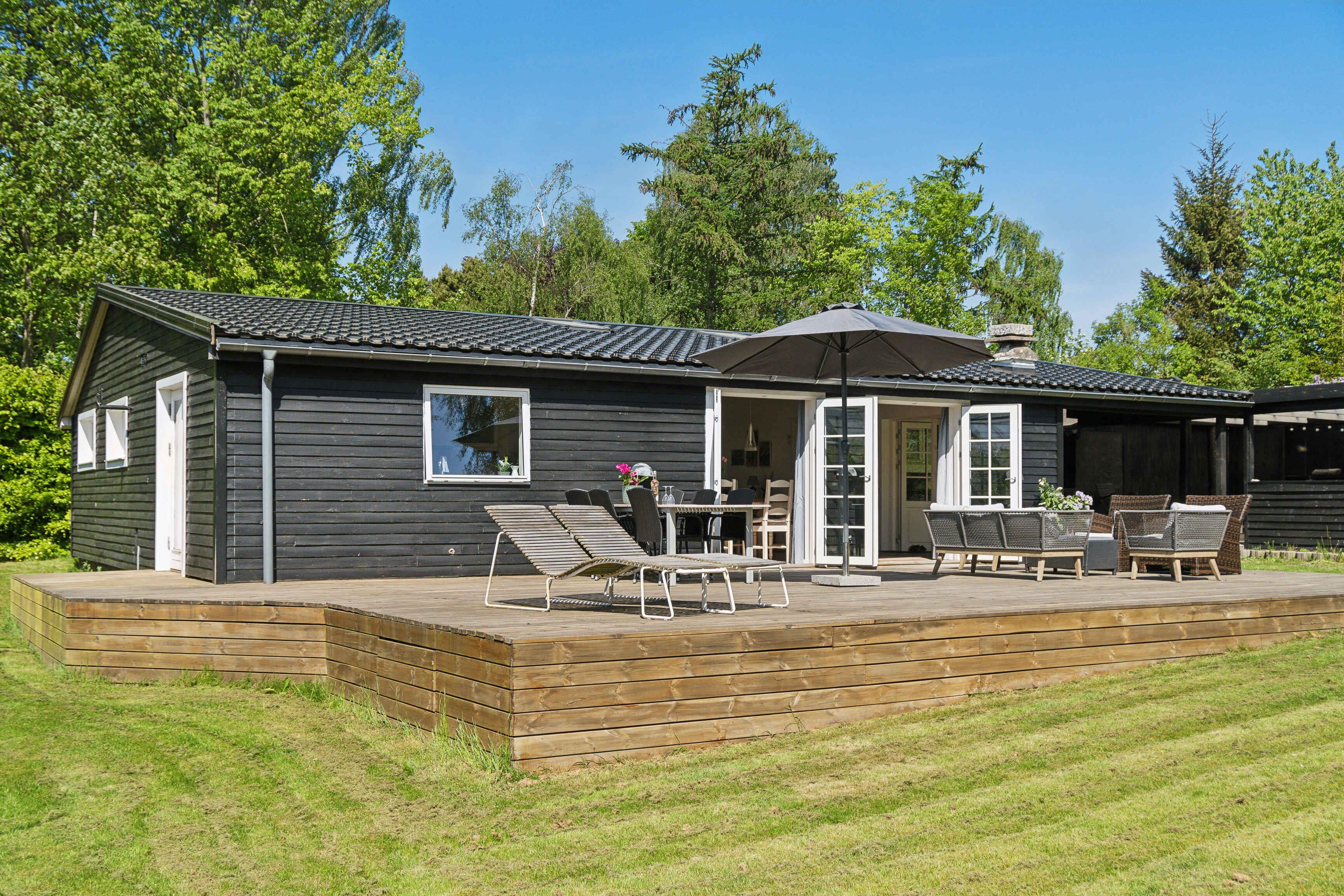 Ein schönes abgelegenes Ferienhaus, modern und gemütlich eingerichtet. Das Haus liegt zurückgesetzt auf privatem Grundstück in Dronningmølle, mit kurzer Entfernung zu malerischen Gebieten, dem guten kinderfreundlichen Sandstrand, Cafés, Restaurants und Lebensmittelgeschäften. Die Lage ist zentral für Ausflüge entlang der gesamten Nordküste, nach Kopenhagen und in Nordseeland. In der Nähe des Hauses gibt es einen offenen Gemeinschaftsbereich mit der Möglichkeit für Ballspiele und Spielen. Das Haus ist mit einem großen Gemeinschaftsraum mit offener Küche verbunden mit Wohnzimmer und Essbereich ausgestattet. Der große Raum hat ein Kathedralendecke und drei Doppeltüren mit direktem Zugang zur großen Holzterrasse. Das Ferienhaus bietet Platz für bis zu 5 Personen und ein Kind bis zu 3 Jahren. Es ist 120 m2 groß, wurde 1961 erbaut und regelmäßig renoviert. Das Haus befindet sich auf einem 1206 m² großen Grundstück, 700 m vom Meer und einem Angelteich entfernt. Der nächste Lebensmittelladen befindet sich in einer Entfernung von 425 m. Es gibt einen Golfplatz in einer Entfernung von 1950 m und einen Spielplatz in einer Entfernung von 625 m. Das Ferienhaus umfasst 60 m² offene Terrassenfläche und eine überdachte Terrasse von 28 m². Ein Grill steht zur Verfügung sowie Parkplätze am Ferienhaus. Das Haus verfügt insgesamt über 3 Schlafzimmer. Die Schlafgelegenheiten verteilen sich wie folgt: 2 Zimmer mit jeweils 2 Doppelbetten/Einzelbetten, einem Schreibtisch und ein Zimmer mit 2 Schlafplätzen in Einzelbetten/Doppelbett. Zusätzlich gibt es ein Kinderbett. Die Küche ist mit einem Kühlschrank mit Gefrierfach, einem Herd mit 4 Kochplatten, einem Backofen, einer Mikrowelle, einem Geschirrspüler und verschiedenen kleinen Küchengeräten wie Kaffeemaschinen, Toaster und Mini-Mixer ausgestattet. Es gibt ein Badezimmer mit Fußbodenheizung, Dusche und WC. Das Ferienhaus verfügt über einen Smart-TV und Chromecast. WLAN ist verfügbar. Haustiere sind nicht erlaubt.