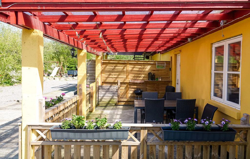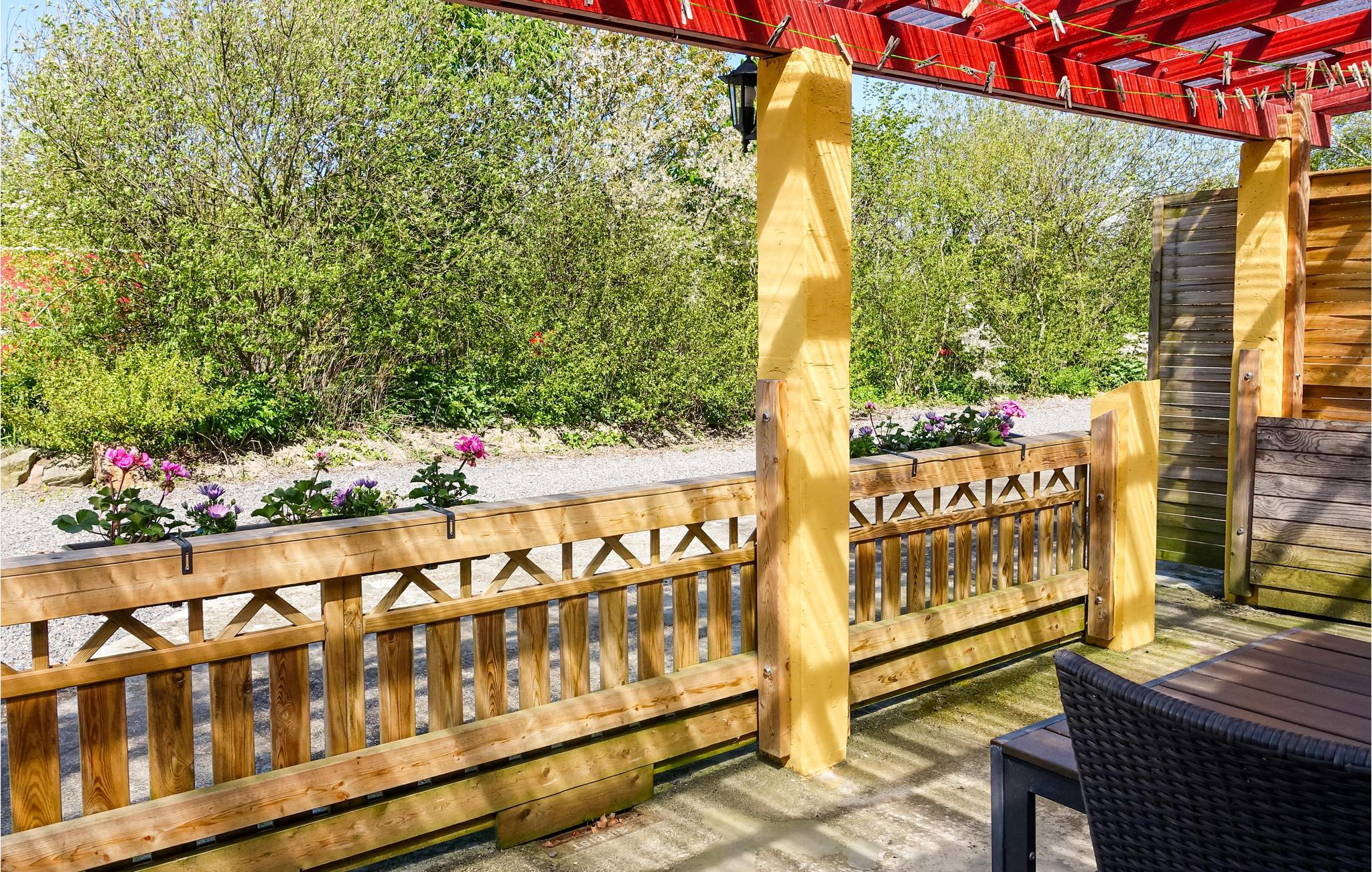 Gemütliche Ferienwohnung nahe Dueodde mit Gemeinschaftsgarten, Holzterrasse und Grill für entspannte Urlaubstage.