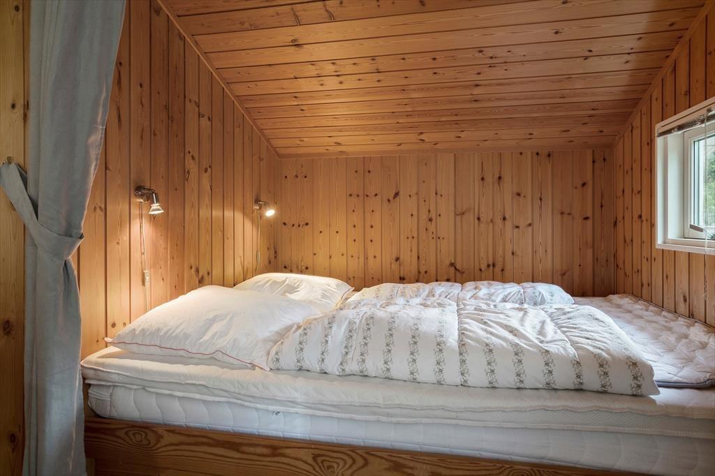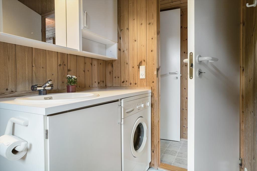 Das Haus hat zwei gute Schlafzimmer und im gemütlichen Alkoven im Wohnzimmer gibt es extra Schlafplätze. Das Badezimmer hat eine Dusche, Fußbodenheizung, eine Waschmaschine und einen Wäschetrockner. Hier gibt es auch ein Bügeleisen und ein Bügelbrett.