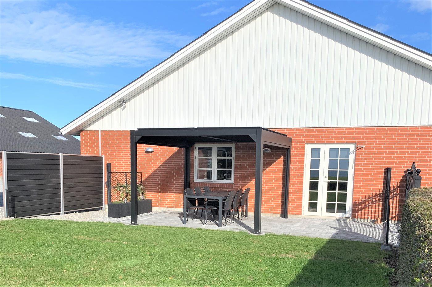 Moderne Ferienwohnung mit Meerblick, eigener Terrasse und Garten nahe Badestrand in Faaborg, Dänemark.