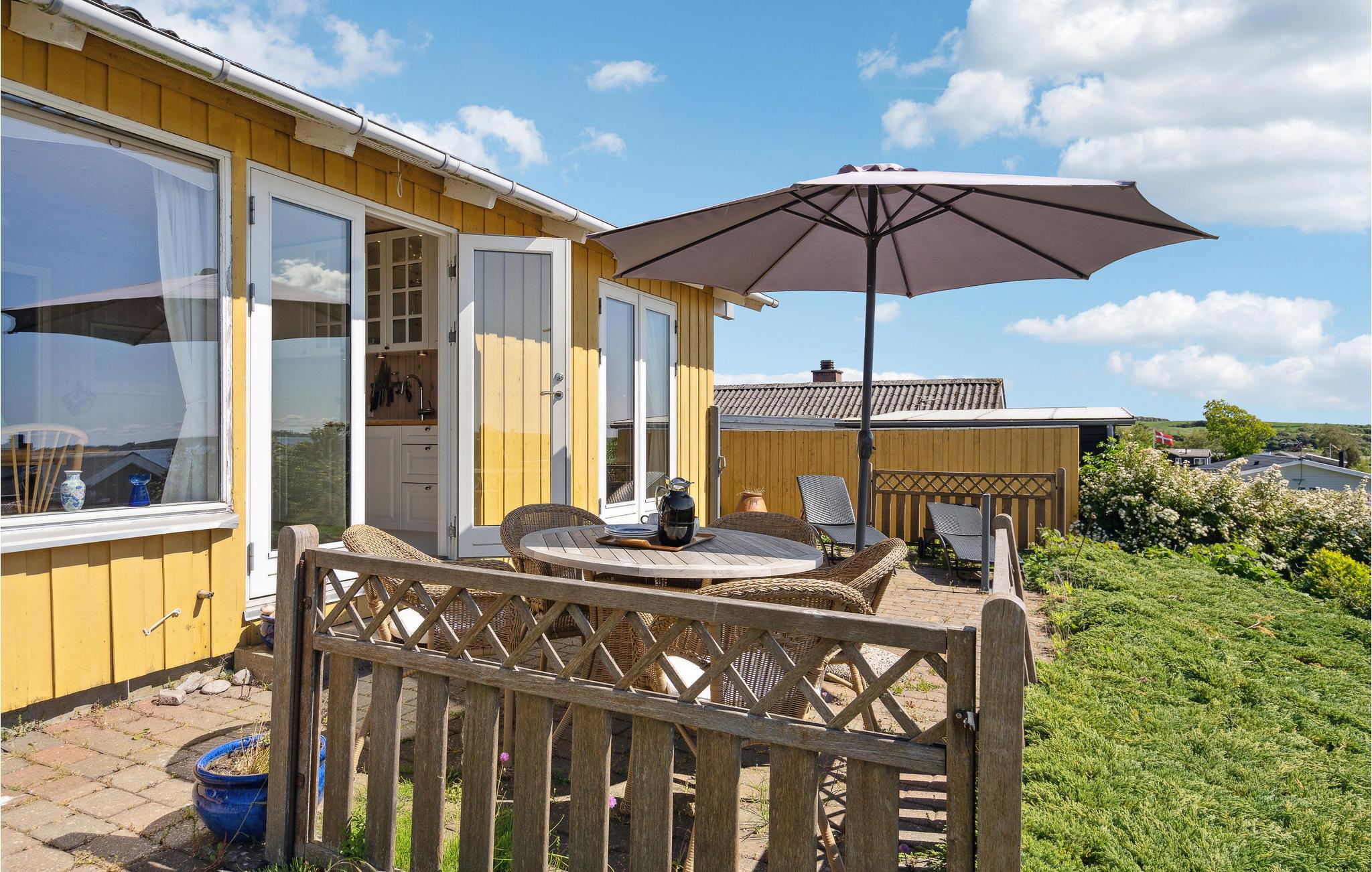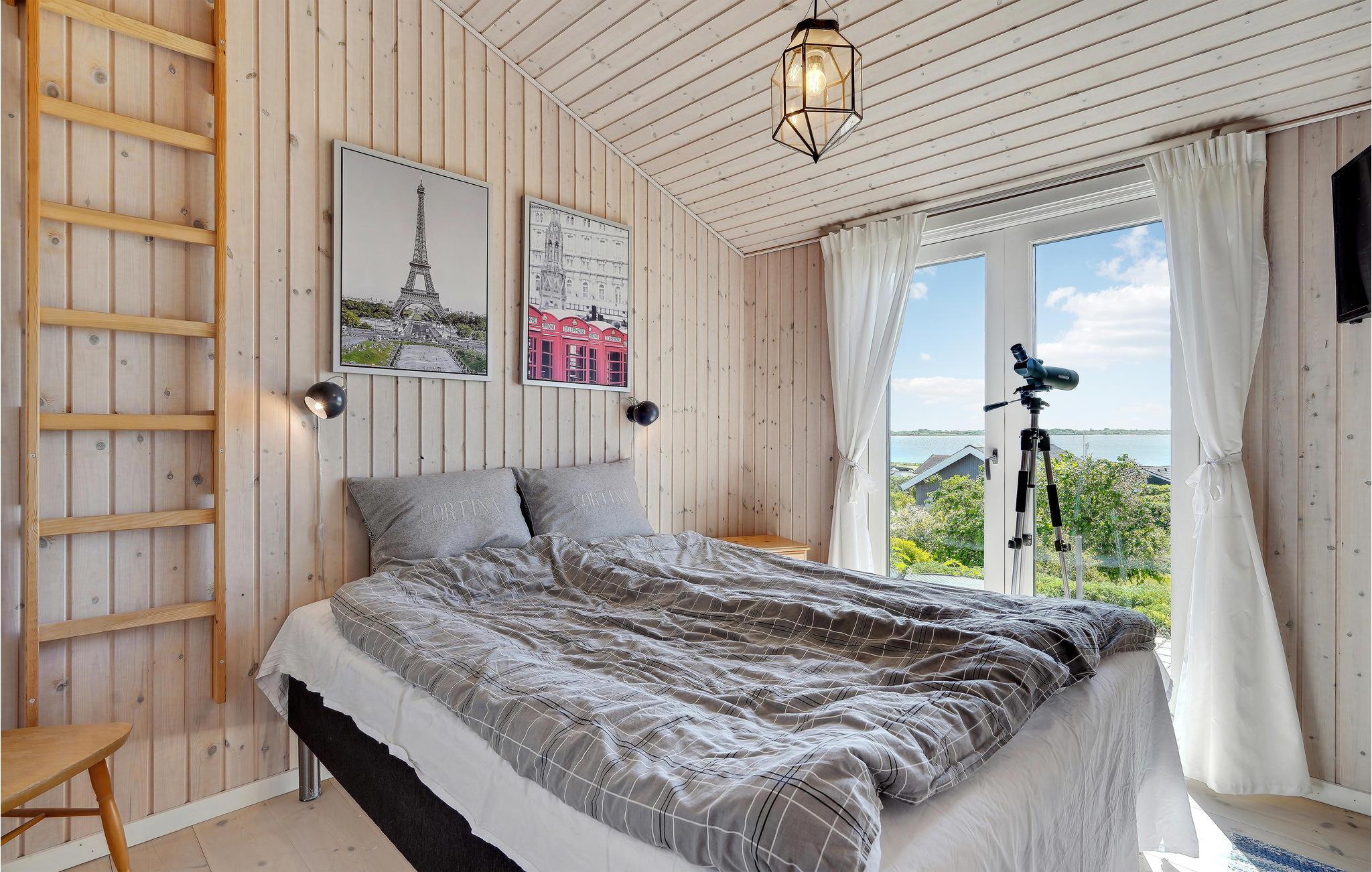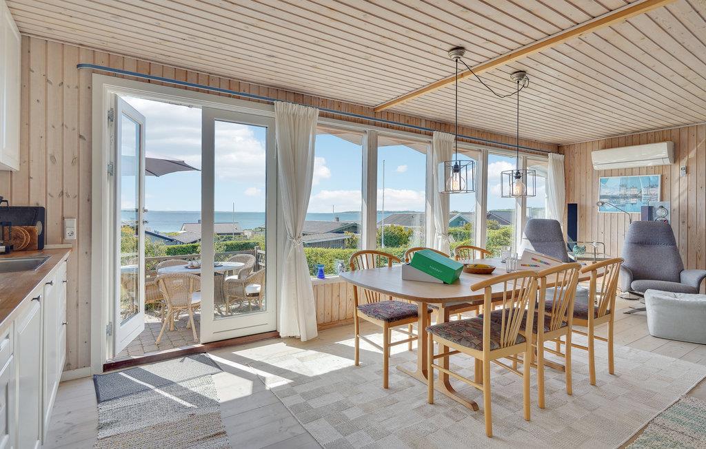 Gemütliches Ferienhaus in Dyreborg mit Panoramablick auf das Wasser und direktem Strandzugang.
