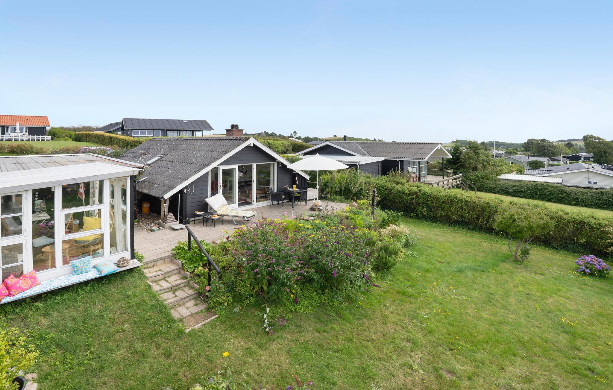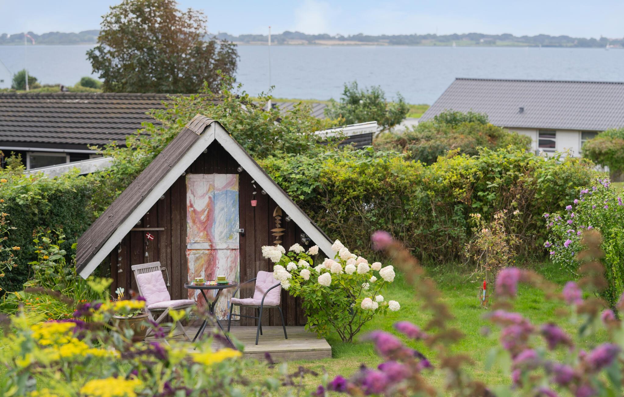Charmantes Ferienhaus in Faaborg mit Panoramablick auf das Wasser und gemütlichem Kaminofen für erholsame Urlaubstage.