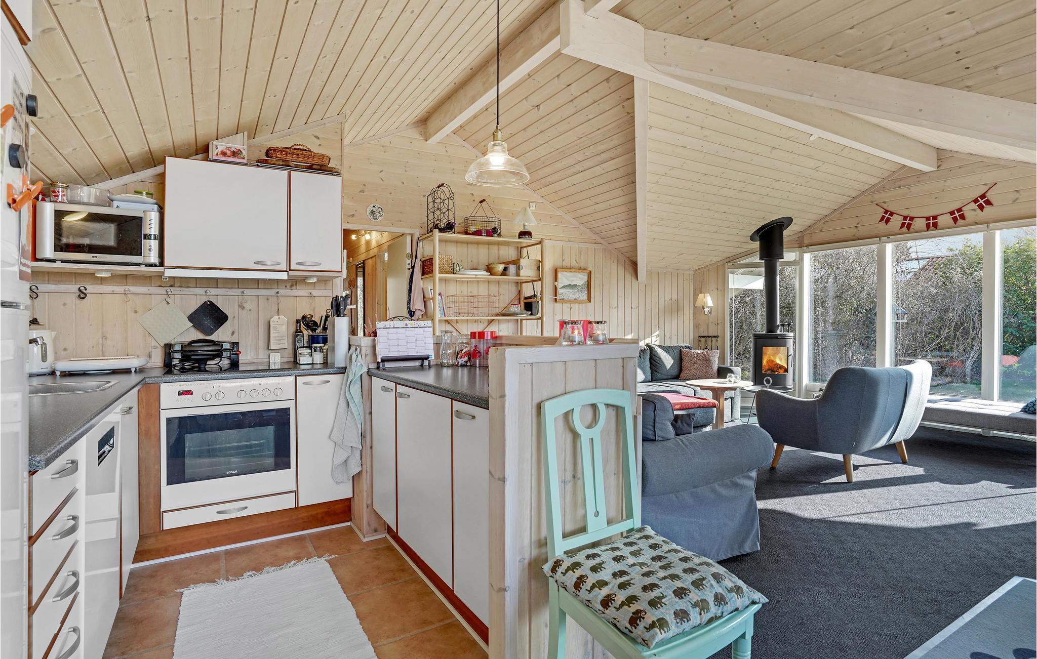 Schönes, helles Ferienhaus mit einer bis unter den First offenen Decke. In der Wohnküche steht u. a. ein Kaminofen. In der Ecke des Wohnraumes befindet sich ein Alkoven. Die Terrasse liegt teilweise unter Dach und lädt zum Sonnen ein. Auf Sjællands Odde ist es richtig schön, es herrscht ein tolles Licht, und an der Küste gibt es einen schönen Strand nach dem anderen. Auch Angler werden hier glücklich, sie können gut von der Küste angeln. Odsherred ist eine geologische Einzigartigkeit und schön wie ein Geopark. Auf ihr finden Sie entlang der Grabhügelstraße, mit den Hünengräbern und Grabhügeln, Zeitzeugen aus der Stein- und Bronzezeit, die Reste eines vor 300 Jahren verlassenen Walddorfes in Ulkerup, das Hempel Glasmuseum und im Odsherred Museum die Kopie des im Moor Trundholm Mose gefundenen Sonnenwagens. Sie sehen auch den Findling Lommesten sowie die Burg Næsholm Borg, die auf einer kleinen Insel im See Nygård Sø zwischen Højby und Nykøbing Sj. steht. Auf Odsherred gibt es auch eine Naturschule, die Sie Meeresfrüchte fangen lässt, Schmetterlingsafaris und Expeditionen in den Wald veranstaltet und zu Troll- und Fuchsausflügen einlädt. Das Naturreservat Hovvig, ein renaturiertes Feuchtgebiet, beherbergt ein reiches Vogelleben. Im Wald Grønnehaveskoven gibt es einen Fitnessparcour, einen schönen Hundewald und auf der Wiese Kongeengen entspringt die Quelle Thorskilde, der magische Eigenschaften nachgesagt werden. Ihre Kinder werden auch von einem Besuch im Odsherred Feuerwehrmuseum begeistert sein. Besuchen Sie in der Nähe das Sommerland Sjælland (25 Autominuten), Galerien, die auch typisch für Odsherreds sind und das Dragsholm Schloss aus dem 13. Jahrhundert. Havnebyen ist der einzige richtige Fischereihafen mit Kutter und einer kleinen Räucherei. Auch Freizeitangler bekommen hier immer etwas an den Haken. In Nykøbing Sjælland können Sie gut einkaufen und das Kaffeehausleben genießen. Vom Hafen in Rørvig werden auch Robbensafaris gestartet. Von Rørvig können Sie nach Hundested schippern, von hier ist es dann nur eine Fahrstunde nach Kopenhagen. Von Havnsø gehen Fähren zu den kleinen Inseln Sejerø und Nekselø. Auf Sejerø gibt es eine schöne Natur, Hühnengräber und eine Kirche mit Kalkmalereien, auf Nekselø erwartet Sie eine einzigartige Vogelwelt und Angler finden hier auch ausgezeichnete Fischgründe.