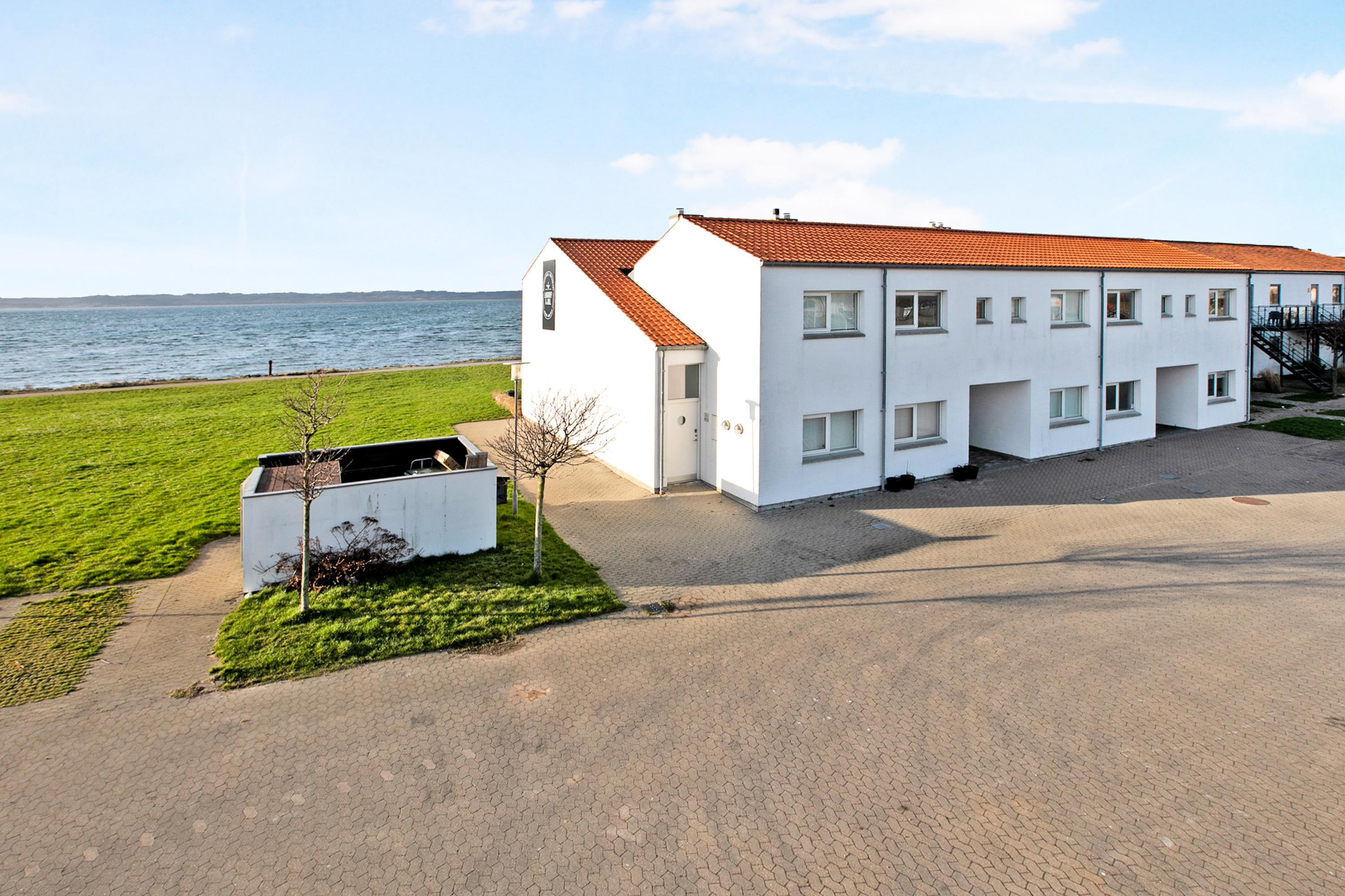 Helle Ferienwohnung in erster Reihe mit Blick auf die Bucht Ebeltoft Vig und Nähe zum kinderfreundlichen Strand.