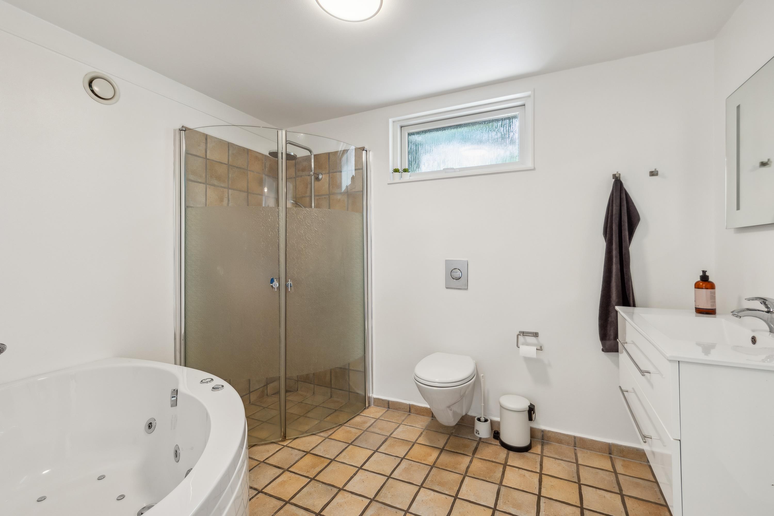 Das Badezimmer ist gut ausgestattet und bietet eine Duschkabine und einen Whirlpool.
