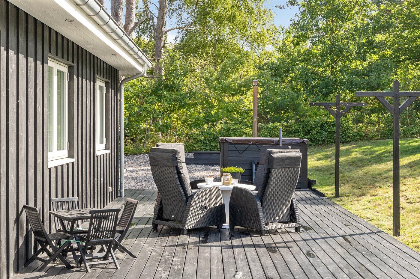 Die Ferienunterkunft liegt auf einem 1800 m² großen Gartengrundstück. Die Entfernung zum Meer beträgt 1000 m. Die nächste Einkaufsmöglichkeit liegt 800 m entfernt. Es steht ein 64 m² Terrassenareal zur Verfügung. Außerdem gibt es 24 m² überdachte Terrasse. Geräteraum.Lagerfeuerstelle. Es steht ein Grill zur Verfügung. Parkplatz auf dem Grundstück.