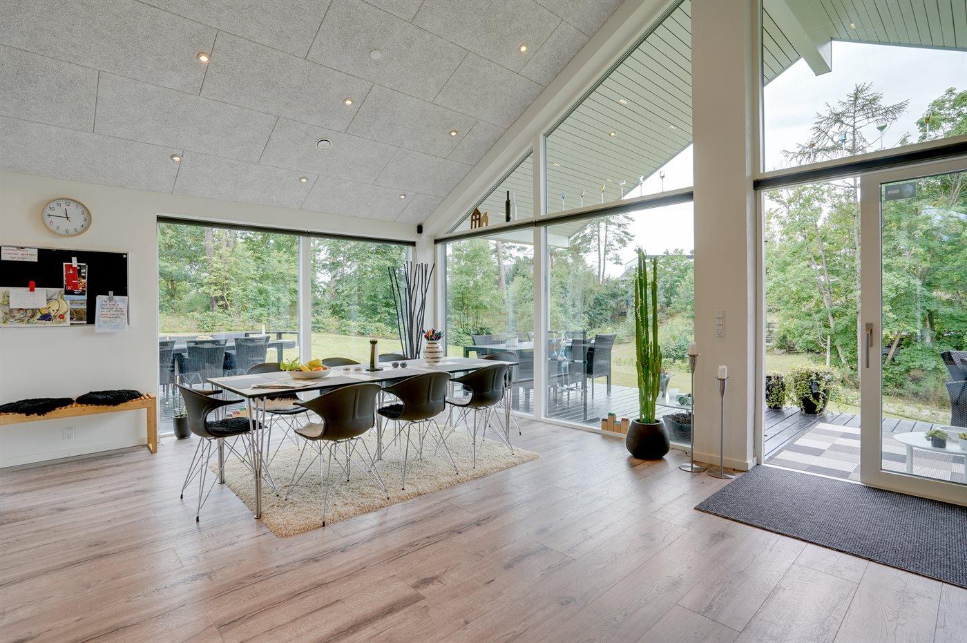Dieses sehr gepflegte Ferienhaus, 2016 gebaut, liegt in landschaftlich schöner Umgebung, nur wenige Kilometer vom Stadtzentrum von Ebeltoft entfernt. Das Haus ist sehr gut ausgestattet mit großen Fensterfronten, die zusätzlich zu dem guten Lichteinfall auch einen schönen Blick auf die sehr guten Terrassenbereiche und das große, gepflegte Grundstück ermöglichen. Im Wohnzimmer finden Sie 2 der insgesamt 8 Schlafplätze in einem Alkoven. Das Haus ist top-gedämmt und es ist eine energiesparende Wärmepumpe installiert– somit können Sie sich auf einen besonders energiefreundlichen Urlaub freuen.