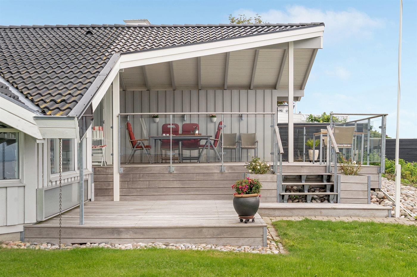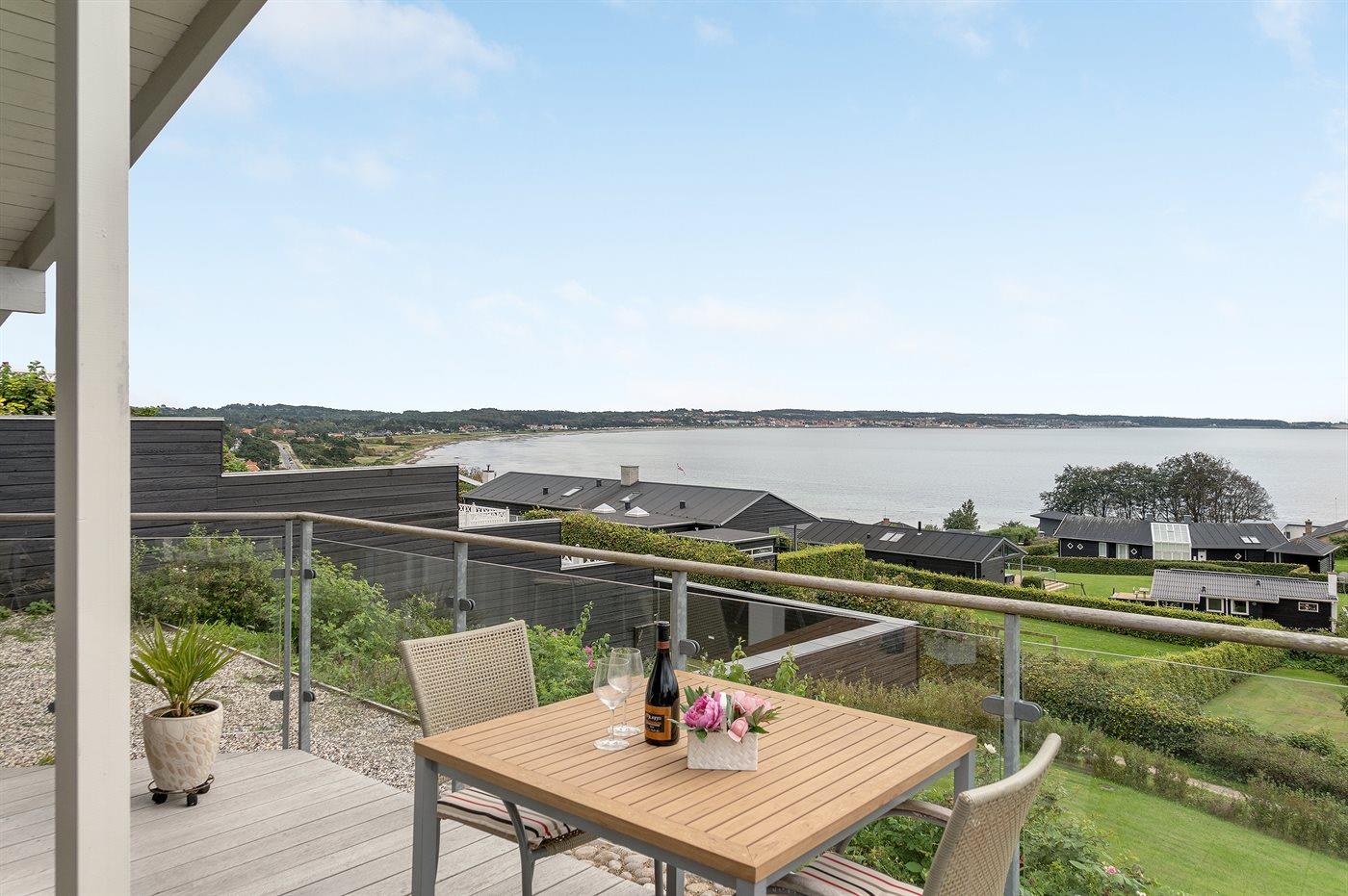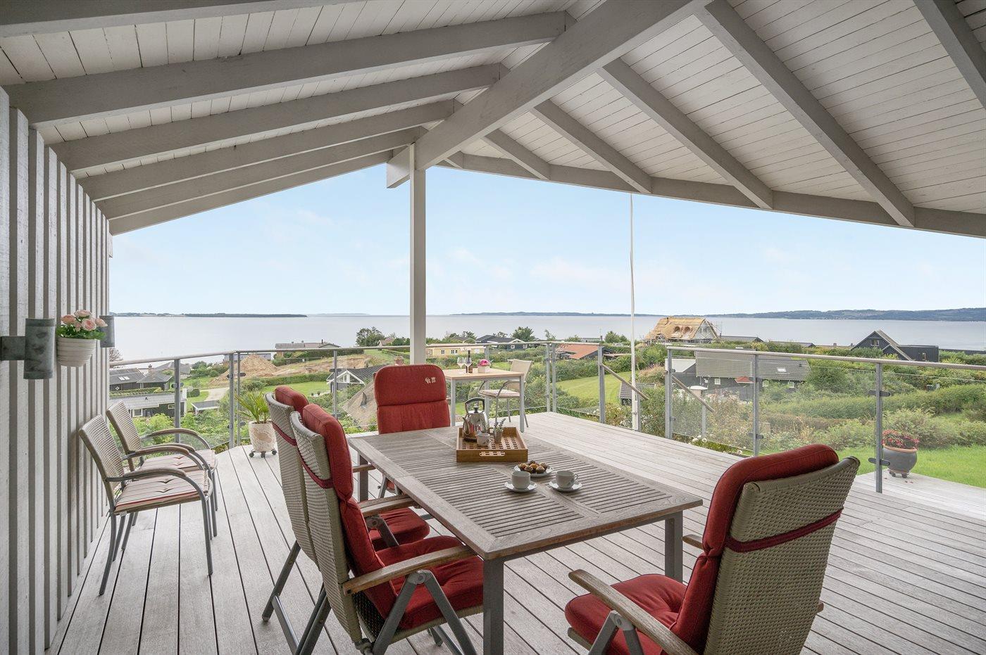 Ein phantastisch gelegenes Ferienhaus mit außergewöhnlich schöner Panoramaaussicht über das Wasser und Ebeltoft – eine schönere Aussicht ist schwer zu finden. Das Ferienhaus liegt außerdem so hoch im Gelände, daß es verhältnismäßig ungestört liegt. Das Haus ist von Terrassen umgeben und daher können Sie ie Aussicht von mehreren Seiten aus genießen. Ein schönes und gepflegtes Ferienhaus mit viel Platz.