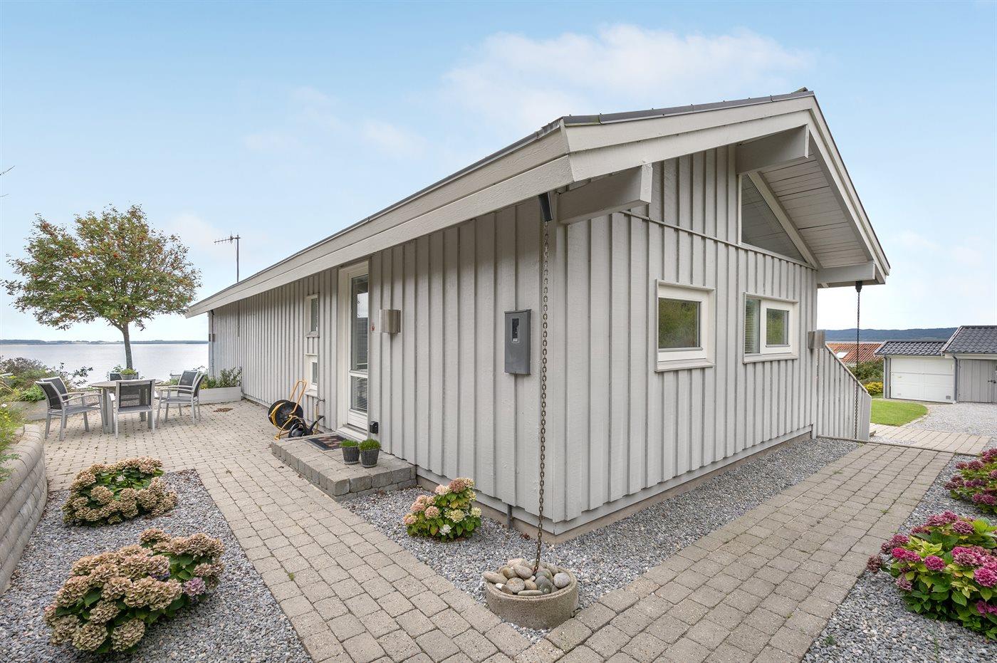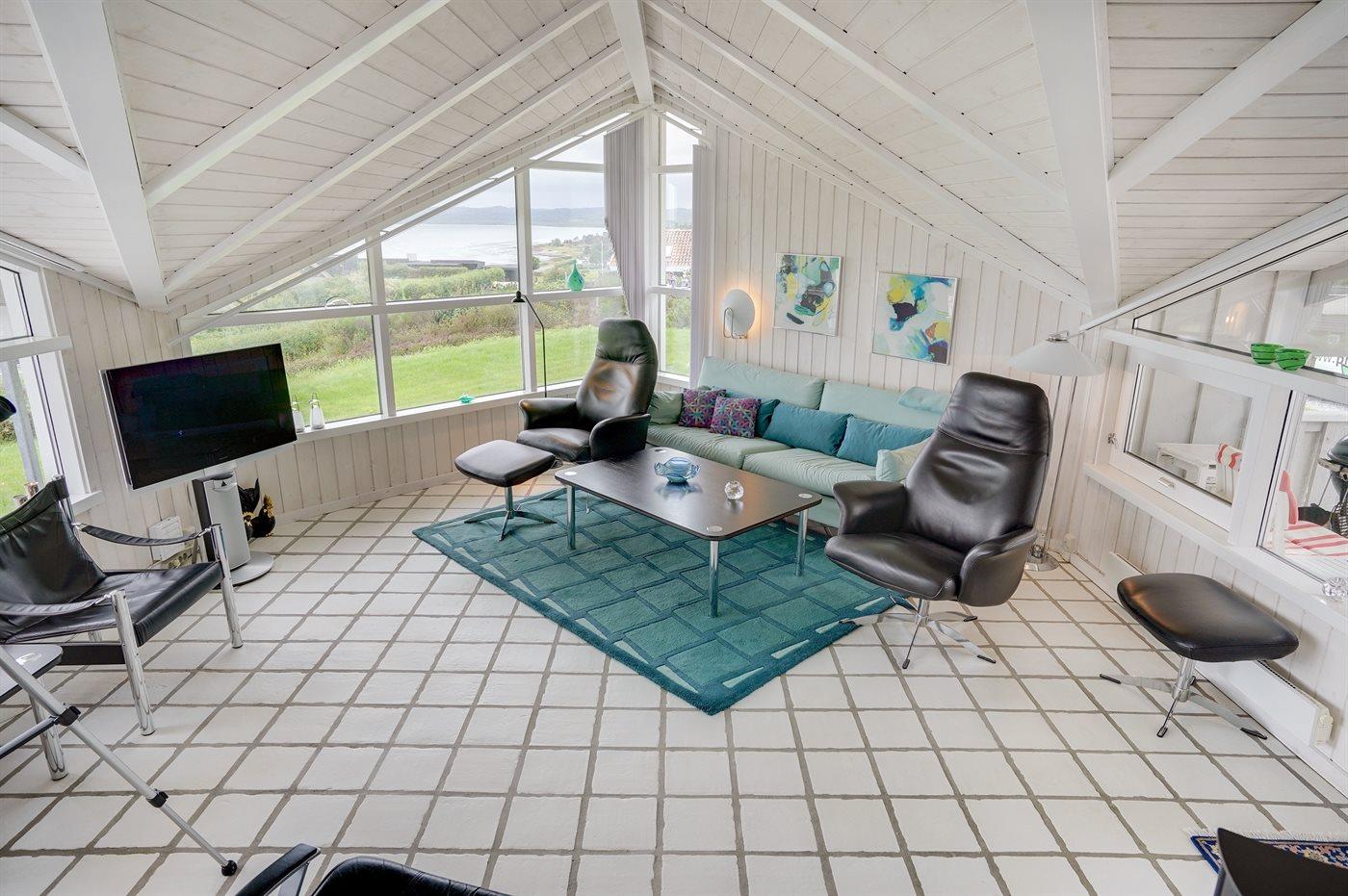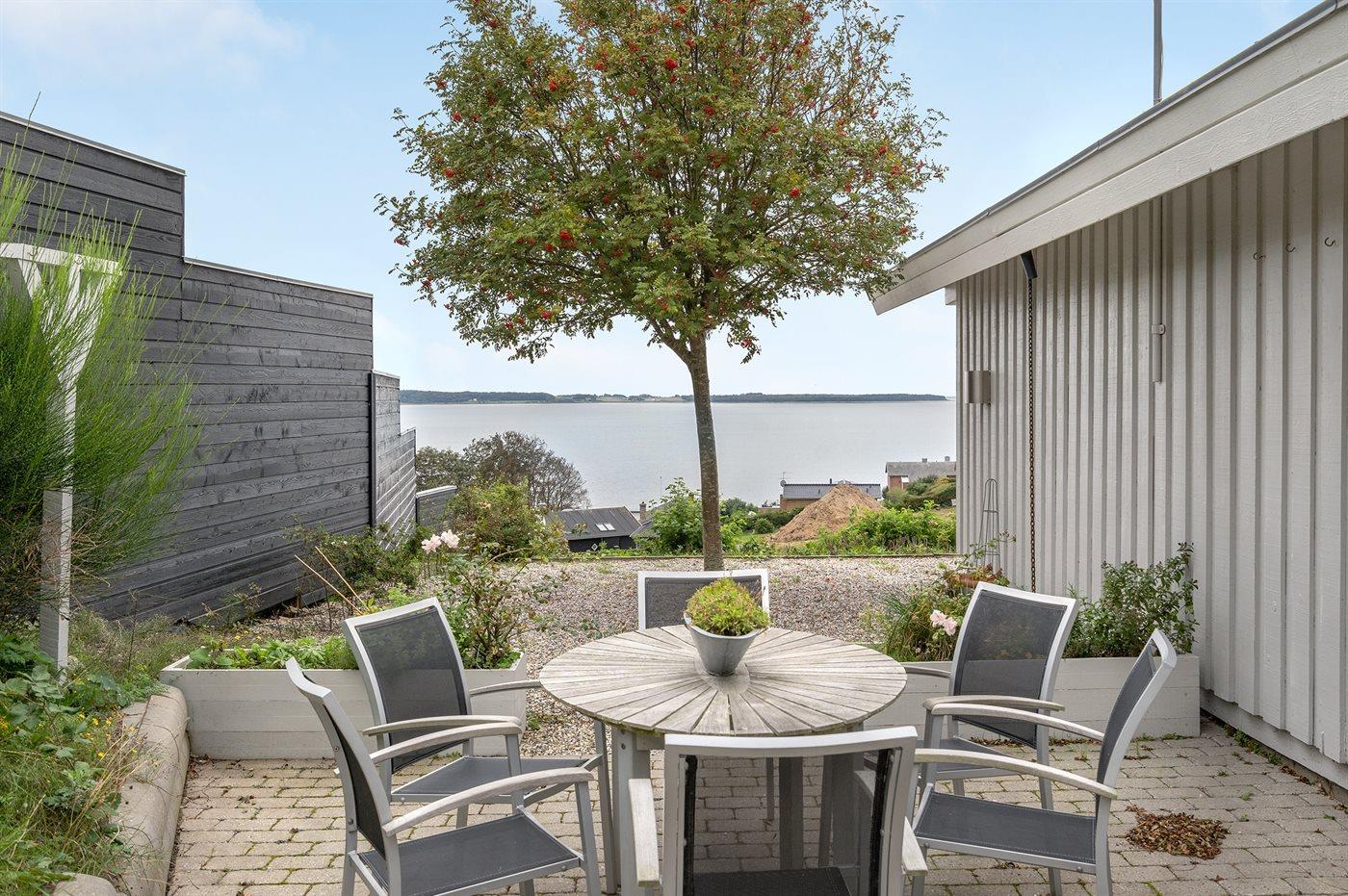 Ein phantastisch gelegenes Ferienhaus mit außergewöhnlich schöner Panoramaaussicht über das Wasser und Ebeltoft – eine schönere Aussicht ist schwer zu finden. Das Ferienhaus liegt außerdem so hoch im Gelände, daß es verhältnismäßig ungestört liegt. Das Haus ist von Terrassen umgeben und daher können Sie ie Aussicht von mehreren Seiten aus genießen. Ein schönes und gepflegtes Ferienhaus mit viel Platz.