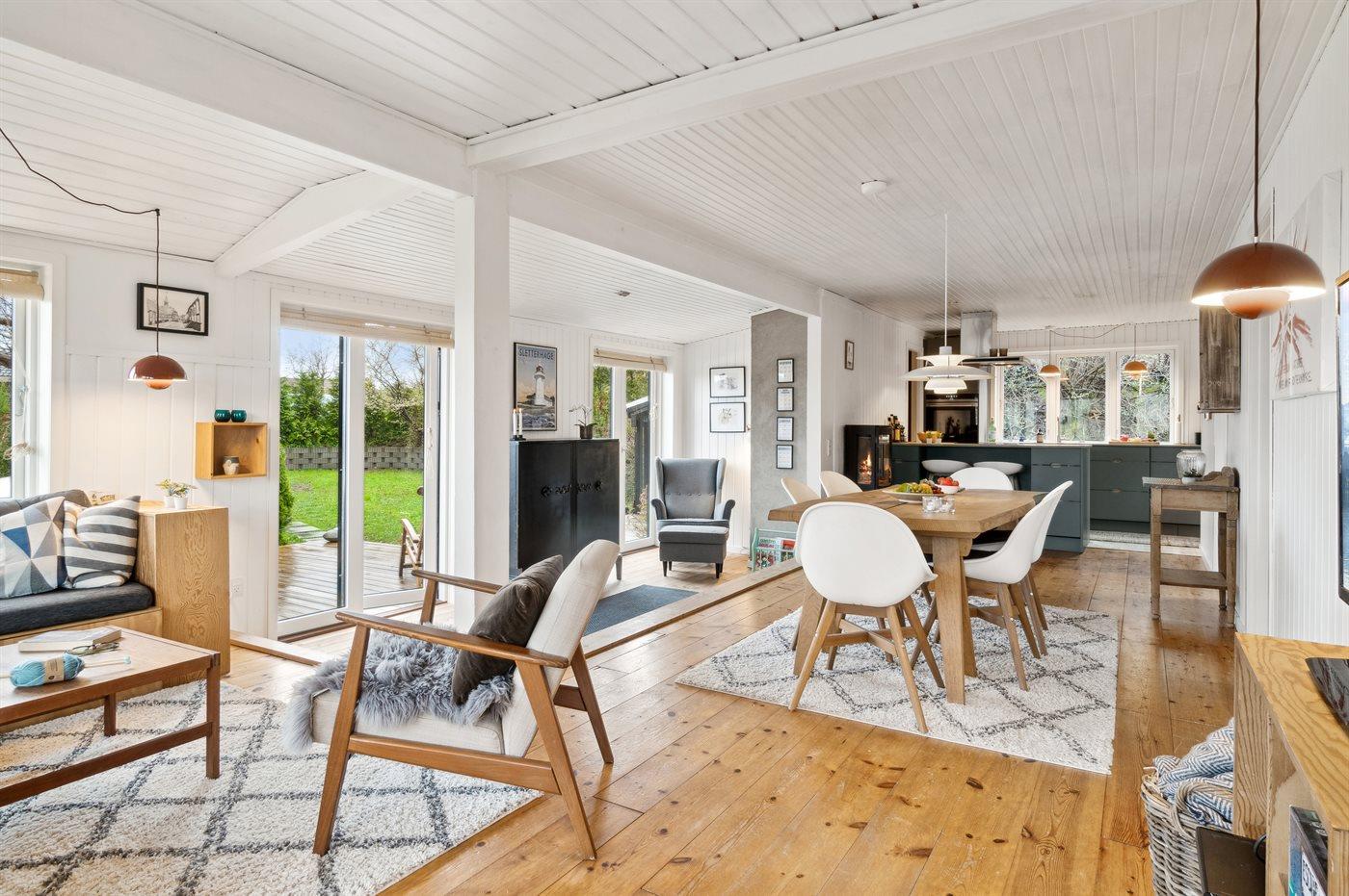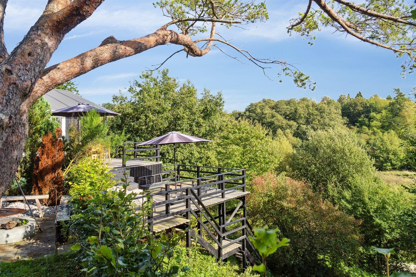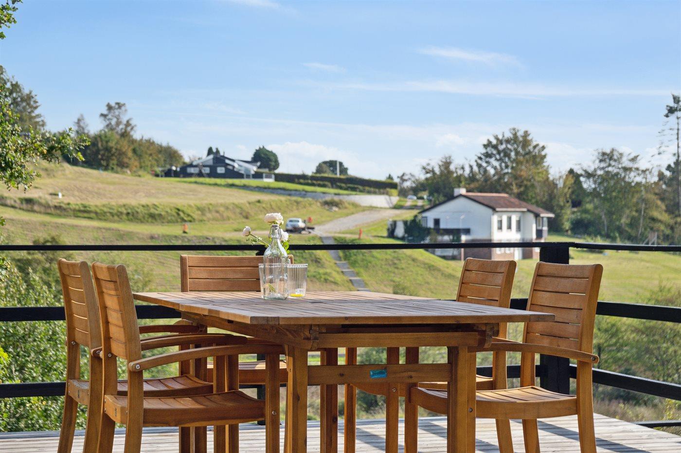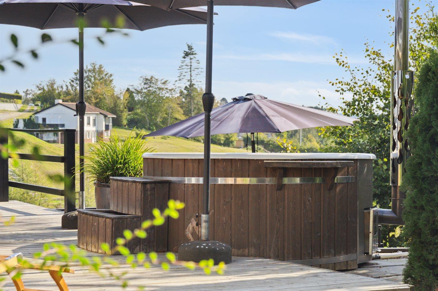 Herzlich willkommen in diesem schönen Ferienhaus für 6 Personen mit 3 Schlafzimmern und einem Gästehaus. Das Haus liegt mitten im Nationalpark Mols Bjerge mit einer atemberaubenden Aussicht auf die Umgebung. Die große Terrasse des Hauses erstreckt sich rund um das gesamte Haus und ermöglicht es, immer eine vor dem Wind geschützte Ecke zu finden. Sollte es für einen Aufenthalt auf der Terrasse zu kalt sein besteht die Möglichkeit den Hot-Tub zu nutzen – von hier aus kann man die schöne Aussicht genießen, während man im warmen Wasser entspannt.