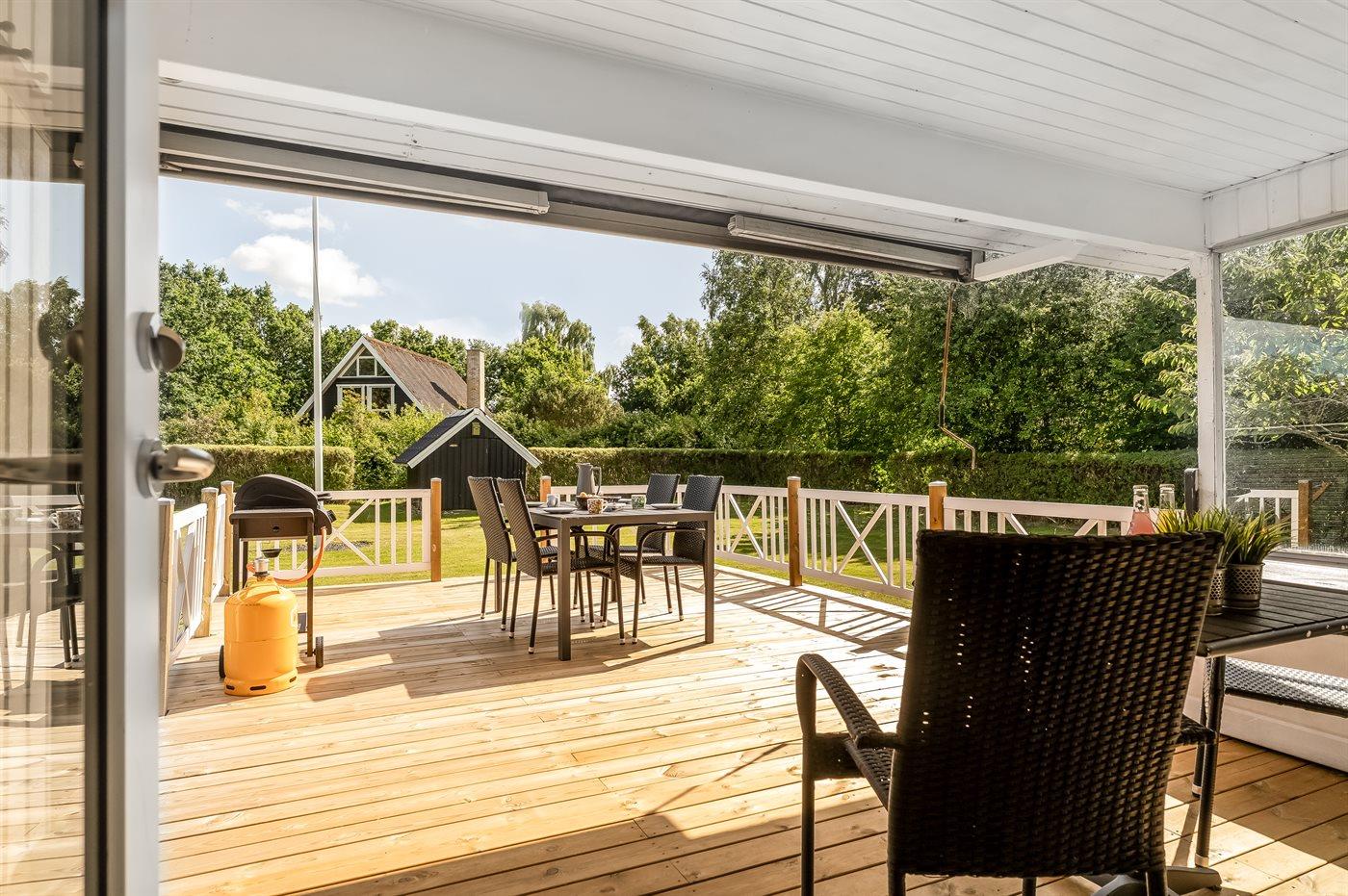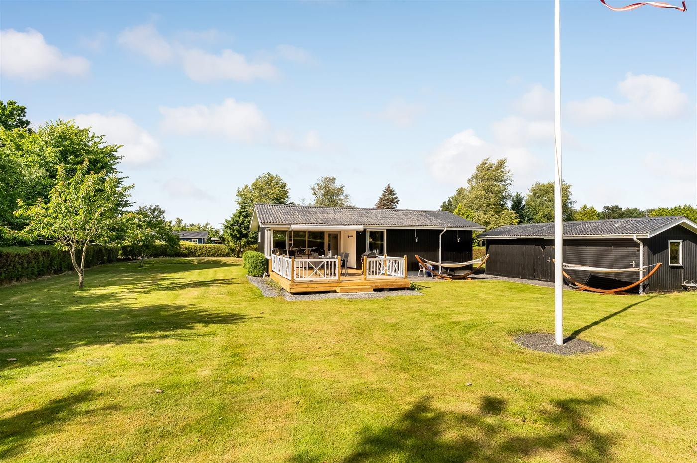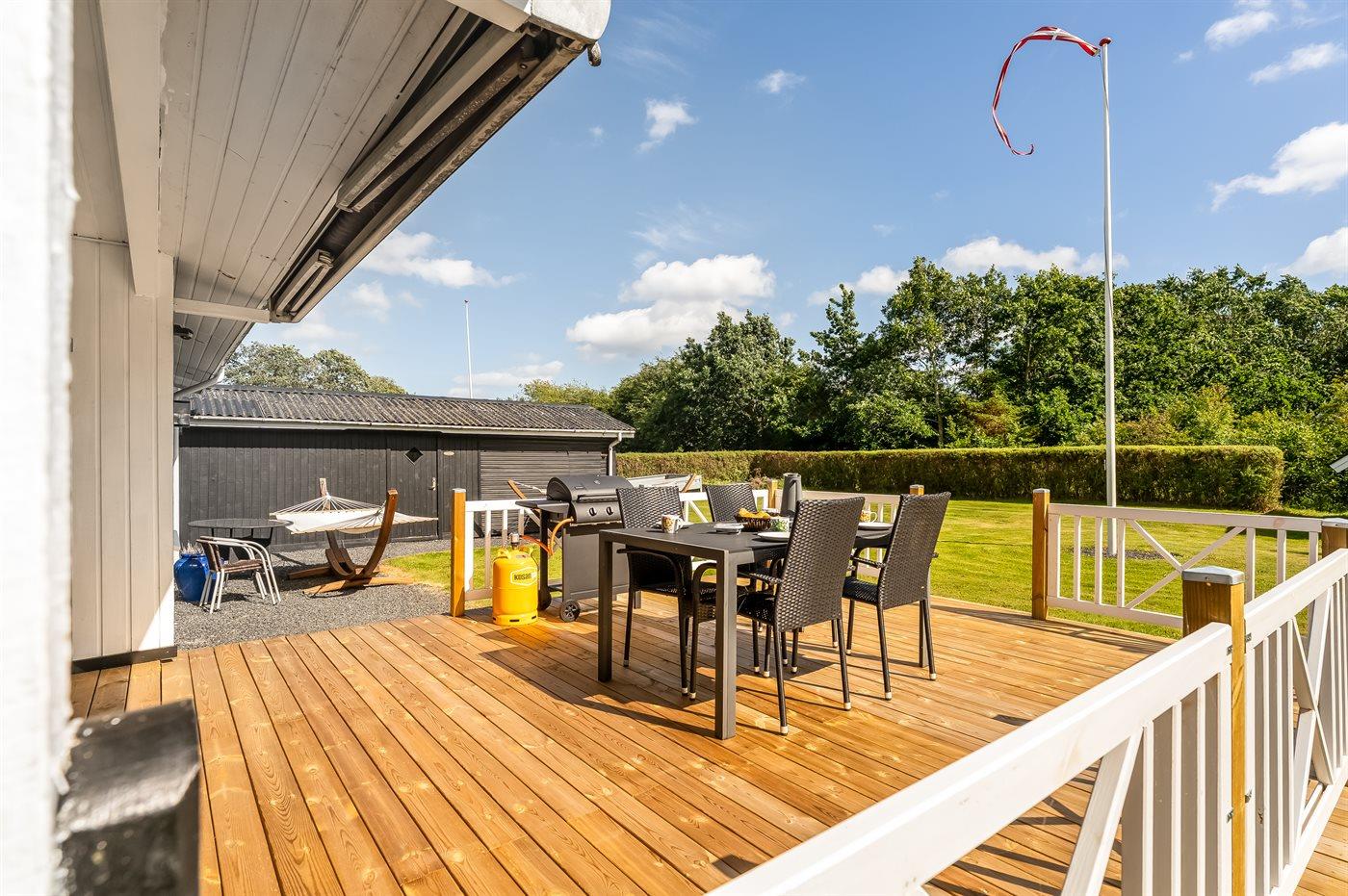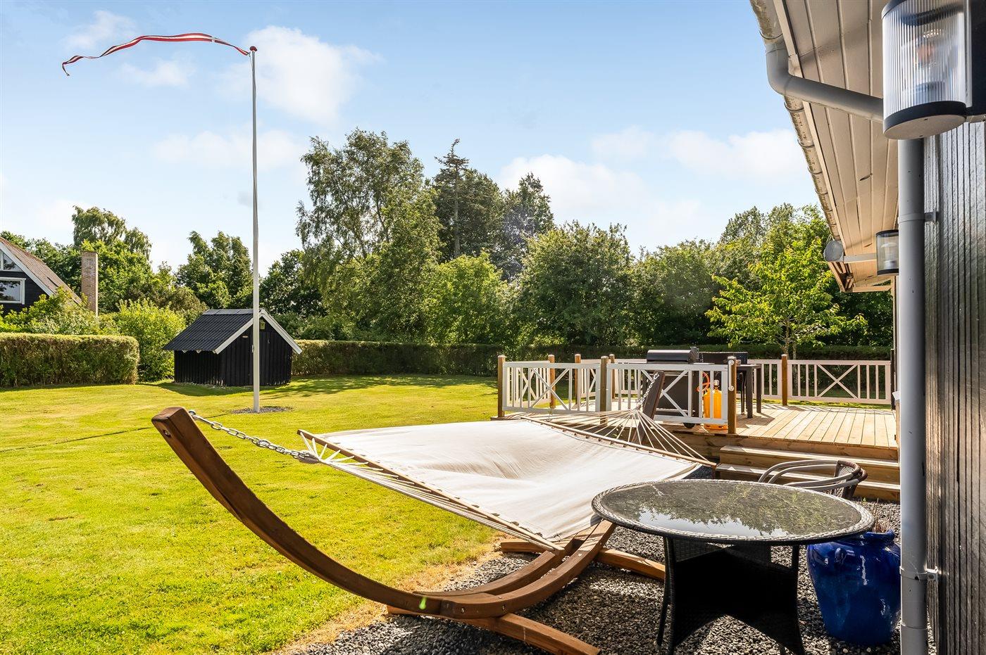 Gemütliches Ferienhaus mit Terrasse, großem Garten und Nähe zum Fjord in Egense, Dänemark.