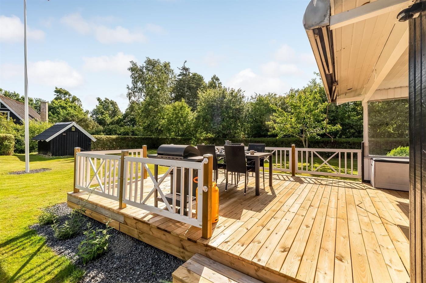 Die Ferienunterkunft liegt auf einem 1230 m² großen Gartengrundstück. Die Entfernung zum Meer beträgt 1300 m. Die Entfernung zum Fjord beträgt 500 m. Die nächste Einkaufsmöglichkeit liegt 300 m entfernt. In einem Abstand von 3100 m gibt es einen Golfplatz. Es steht ein offenes Terrassenareal zur Verfügung. Außerdem gibt es überdachte Terrasse. Es steht ein Grill zur Verfügung. Parkplatz auf dem Grundstück.