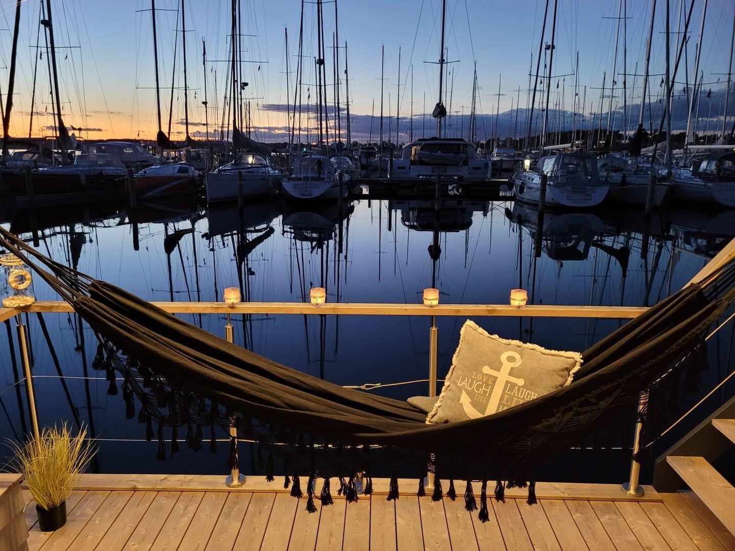 und genießt den grandiosen Ausblick auf die Ostsee. Entweder mit einer Tasse Tee oder Kaffee vom Sofa - mit maritimen Blick auf die Marina - einem Glas Wein in den Händen auf der Terrasse mit S/W Ausrichtung - in der Hängematte - oder mit einem Sundowner auf der 45qm großen Sonnendachterrasse relaxt auf der Liege. Hier genießt Ihr Auszeit, Seeluft & Licht.