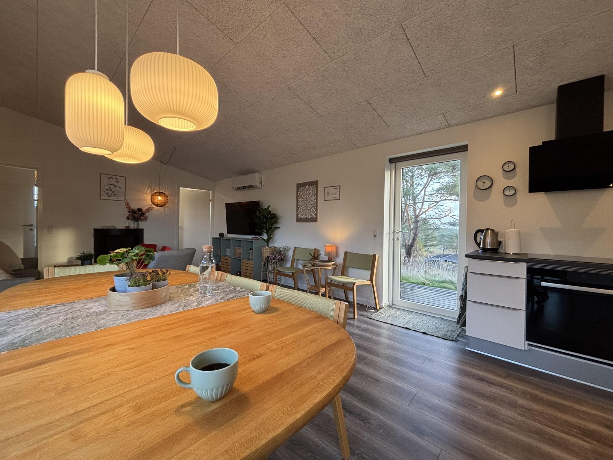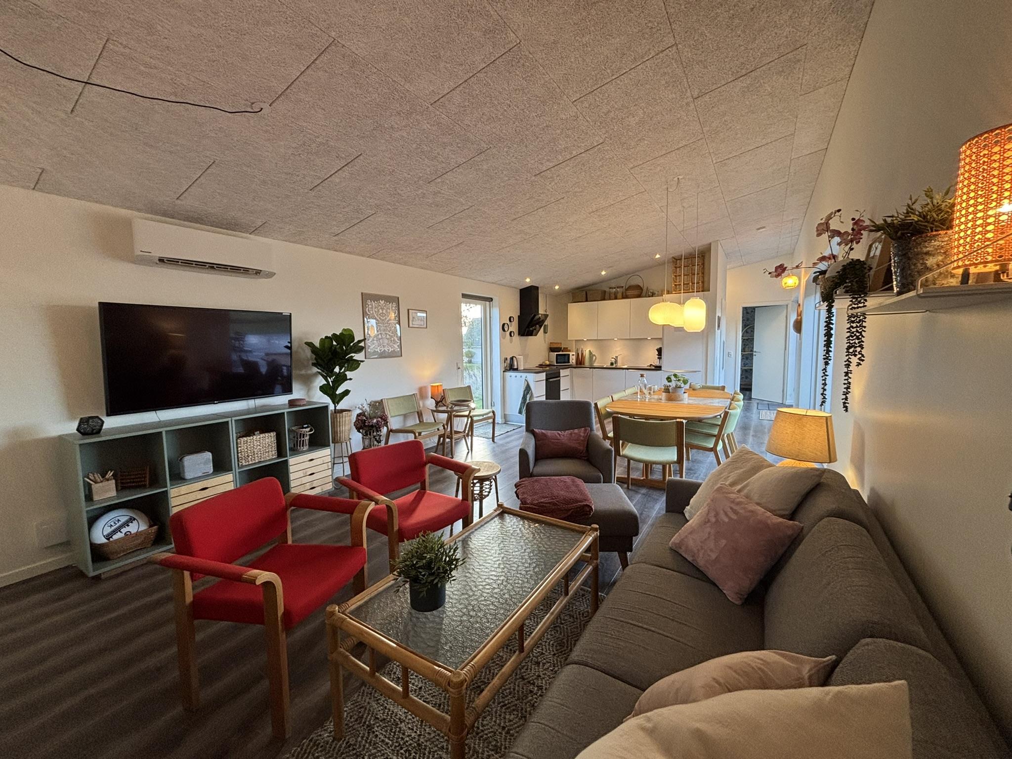 Großzügiges Ferienhaus in Egsmark Strand mit Platz für zehn Personen und kinderfreundlichem Sandstrand in der Nähe.