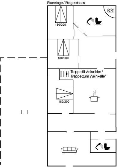 Im geschmackvoll eingerichteten Wohnzimmer, von dem Sie auch den Blick auf den Fjord genießen können, gibt es Stereoanlage mit CD-Spieler und TV mit digitalem Satellitenanschluss. Die Schlafplätze des Hauses verteilen sich auf 6 Zimmer, alle mit Doppelbett – davon befinden sich 3 Zimmer im Erdgeschoss und 3 Zimmer im Obergeschoss. Kinderbett und 2 Kinderhochstühle für die Kleinsten.