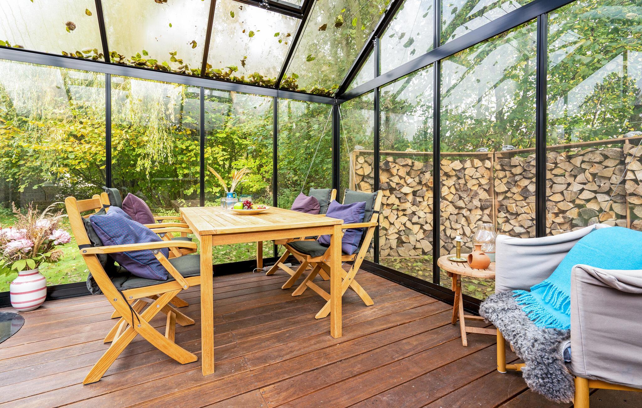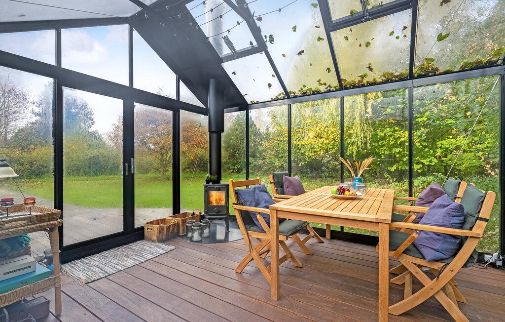 Treten Sie morgens mit einer Tasse Kaffee auf die schöne Terrasse und genießen Sie die ersten Sonnenstrahlen. Bei kühlerem Wetter frühstückt es sich gemütlich im Wintergarten, den Sie mit einem Kaminofen beheizen können. Der grüne Garten lädt ebenfalls zum Verweilen ein: Vertiefen Sie sich in ein gutes Buch, während die Kinder im Garten spielen. Versammeln Sie die Familie abends am Grill und genießen Sie die friedliche Stimmung.