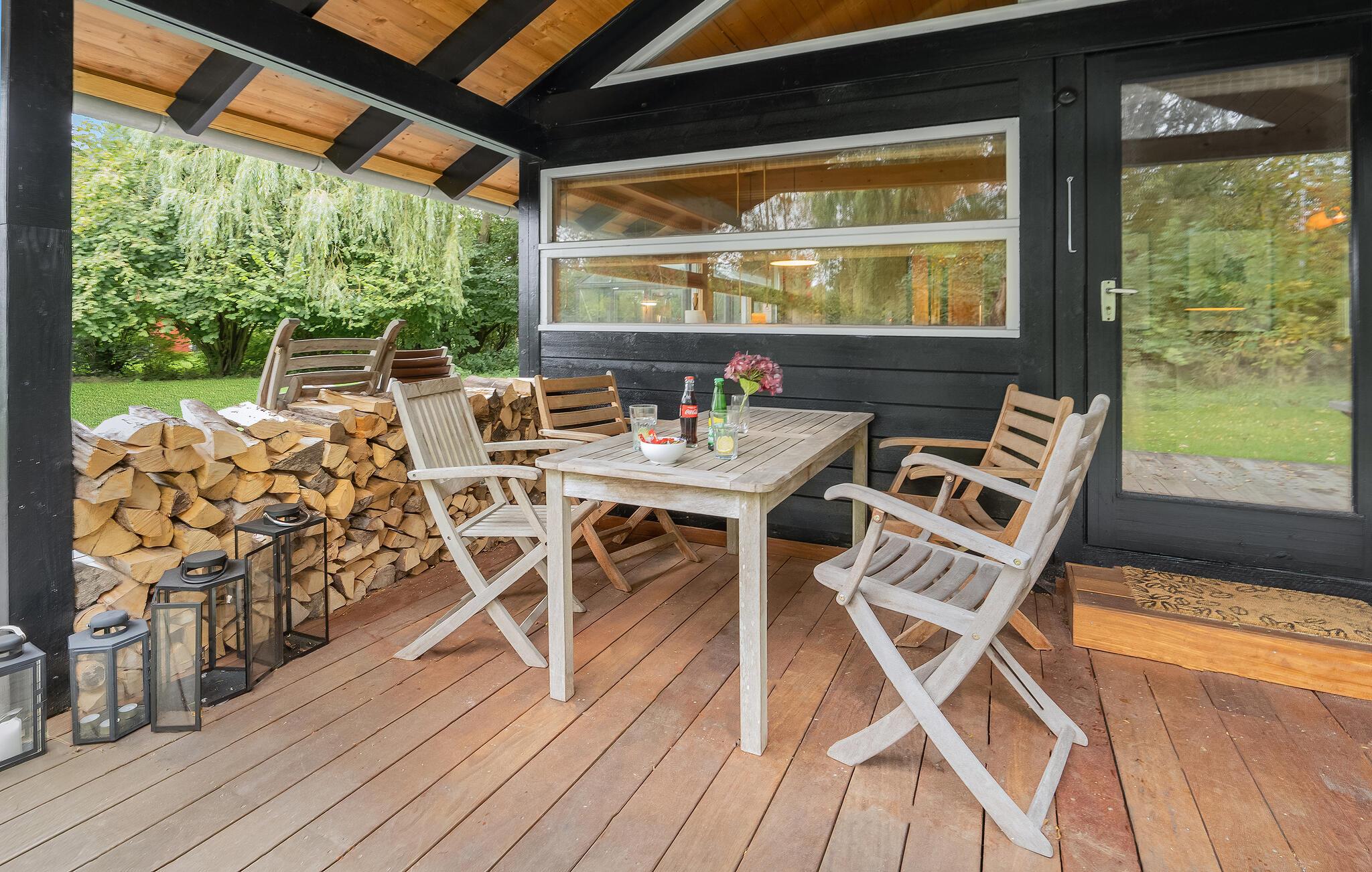 Gemütliches Ferienhaus nahe Strand mit Kamin, Garten und moderner Ausstattung in Elkenøre, Dänemark.