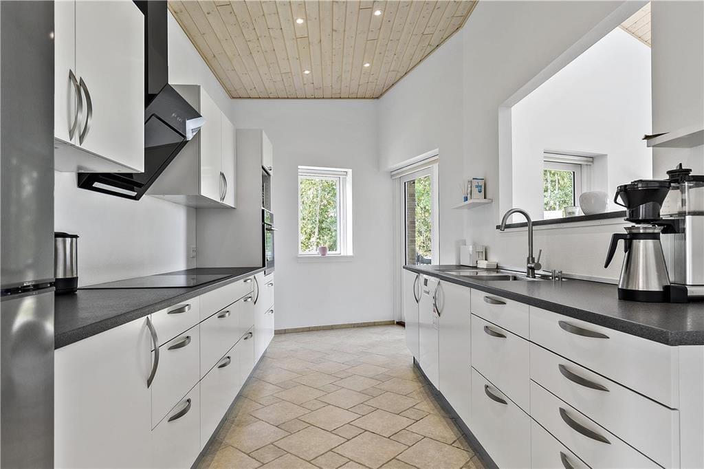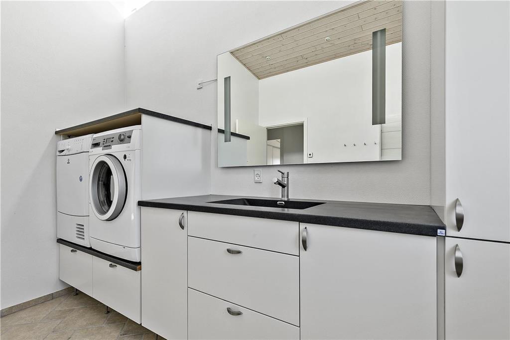 Neu errichtete und besonders geräumiges Ferienhaus, direkt an den Fjord gelegen. Wohn-/Essraum mit Panoramablick. Küche mit Kühlschrank, Gefrierfach, Induktions Herd mit Backofen, Microwelle und Spülmaschine. 4 Schlafräume, 2 mit je 1 Dopp.bett, 2 mit je 2 Einzelbetten. 2 schöne Badezimmern je mit Dusche, Waschbecken, WC. Waschmaschine und Trockner.