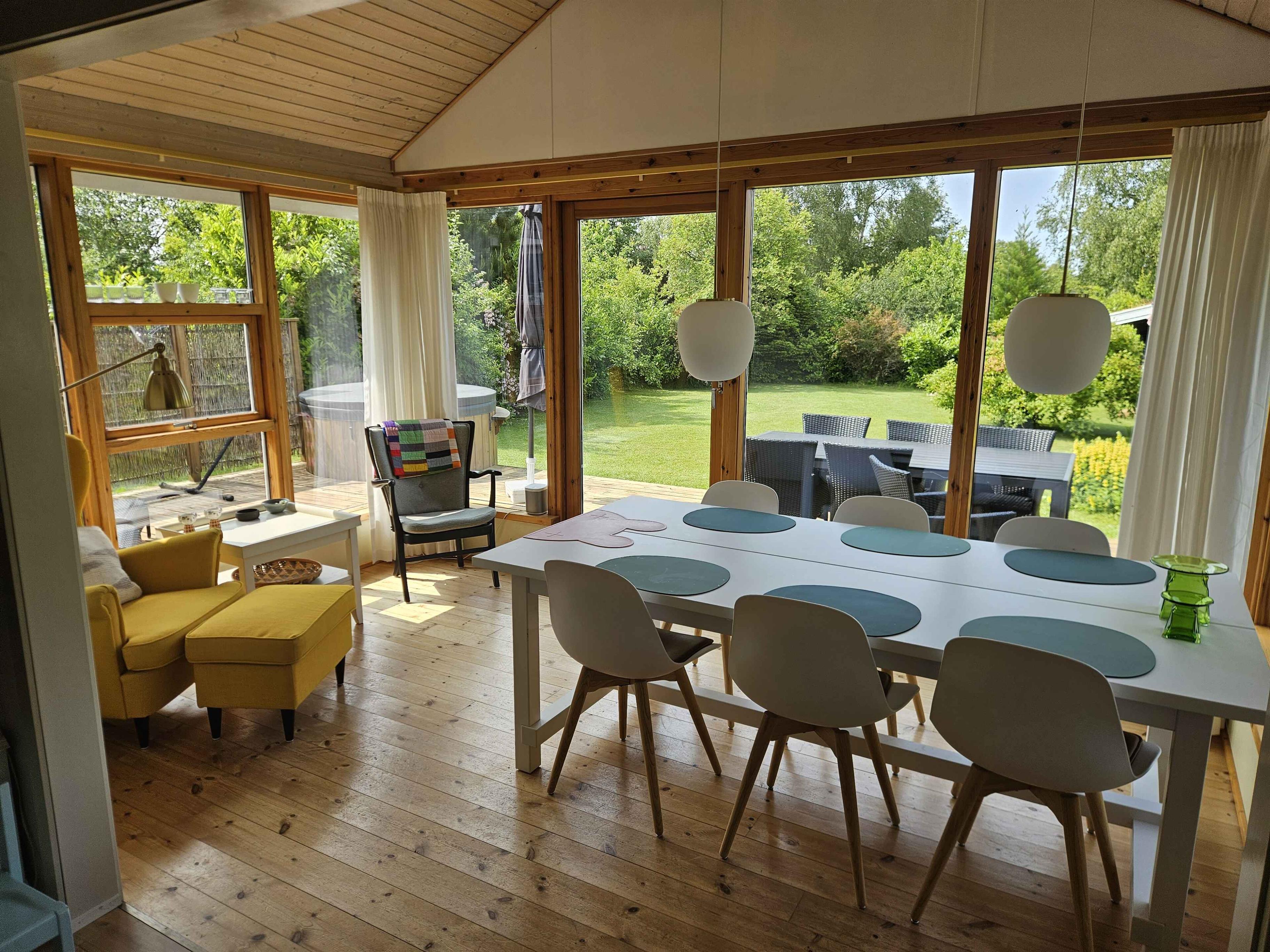 Gemütliches und großes Familienferienhaus mit 2 Schlafzimmern und 2 Anbauten, 2 Badezimmern und insgesamt 10 Schlafplätzen. In der Nähe des Badestrands, der Natur und der Stadt Havnsø. Geschlossener und privater Garten mit einem Vildmarkswasserbad.