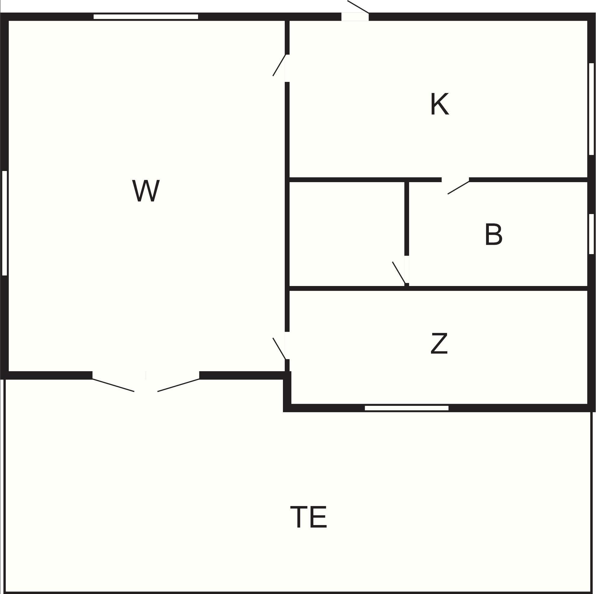 Der Wohnbereich ist warm und einladend und verfügt über einen Fernseher und direkten Zugang zur Terrasse, auf der Sie sonnige Morgen oder ruhige Abende genießen können. Das Ferienhaus verfügt über ein Schlafzimmer mit zwei Betten und ein Schlafsofa im Wohnzimmer und bietet so flexible Schlafmöglichkeiten für bis zu vier Gäste. Die Küche ist zwar schlicht ausgestattet, ermöglicht aber die einfache Zubereitung von Mahlzeiten, und ein Badezimmer rundet das funktionale Interieur ab.