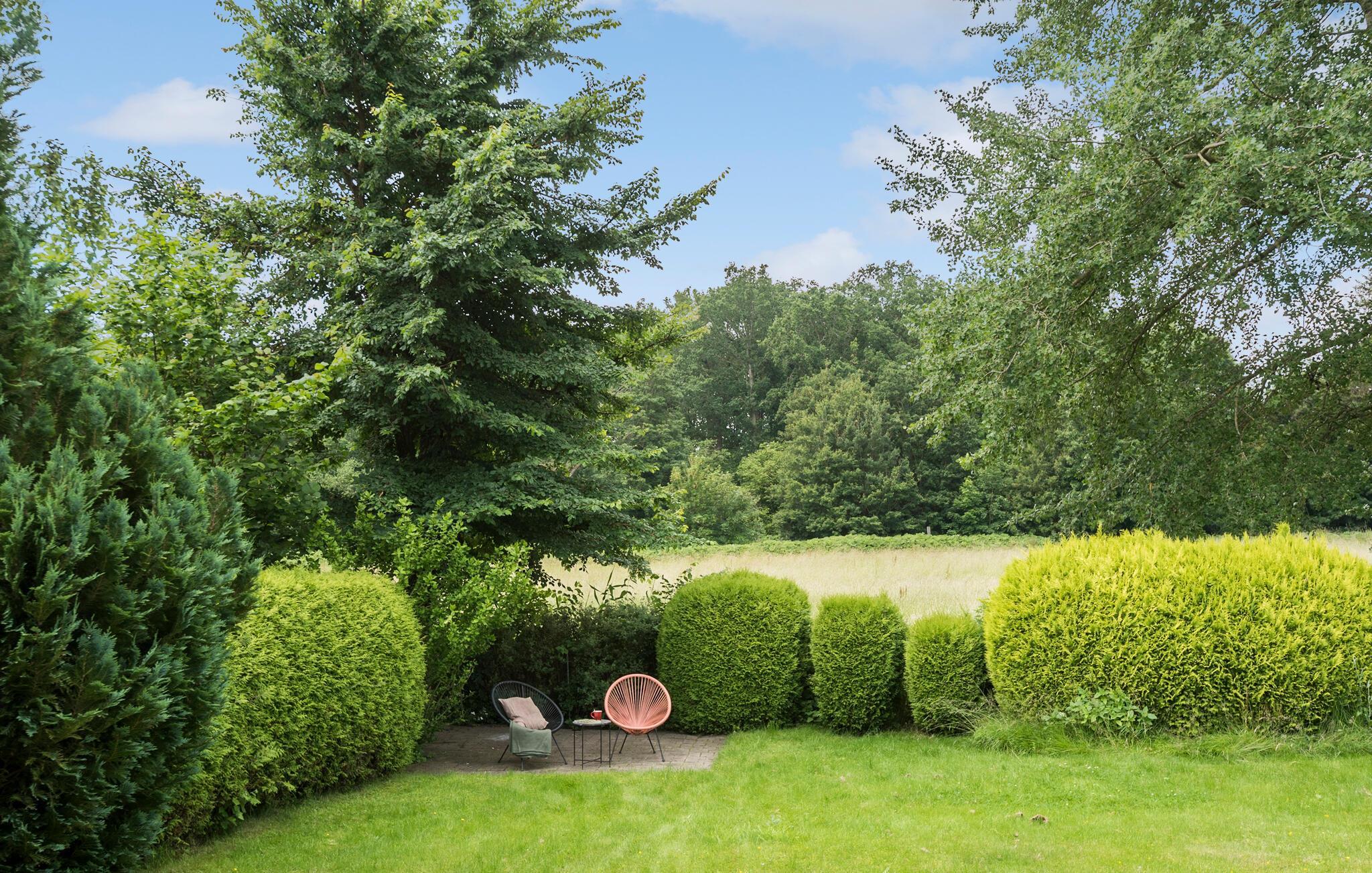 Draußen erwartet Sie eine friedliche Atmosphäre. Entspannen Sie auf der Terrasse oder auf den Sonnenliegen und den übrigen Sitzgelegenheiten im Garten, atmen Sie die frische Luft und lassen Sie die Ruhe und erholsame Stimmung auf sich wirken.
