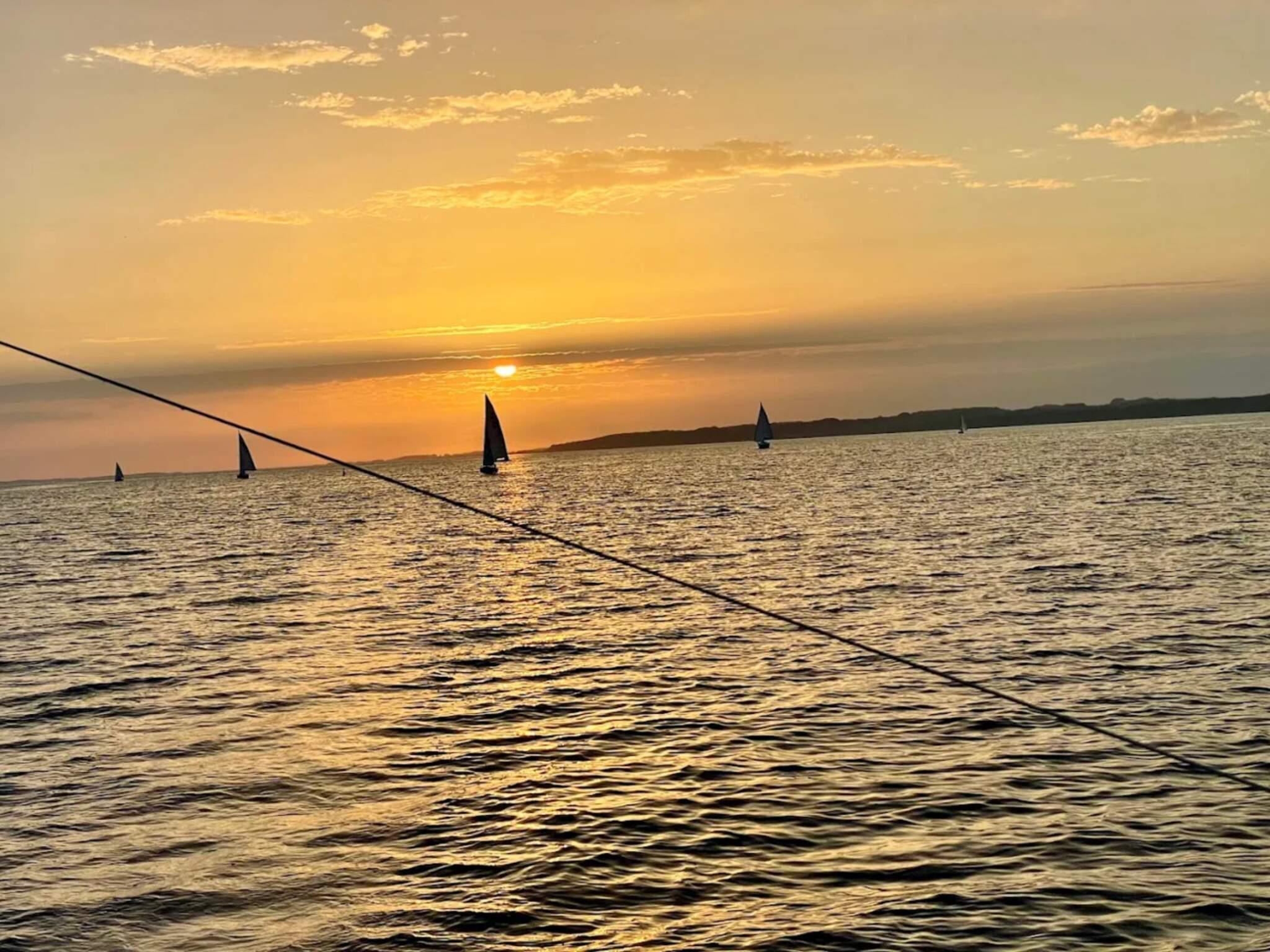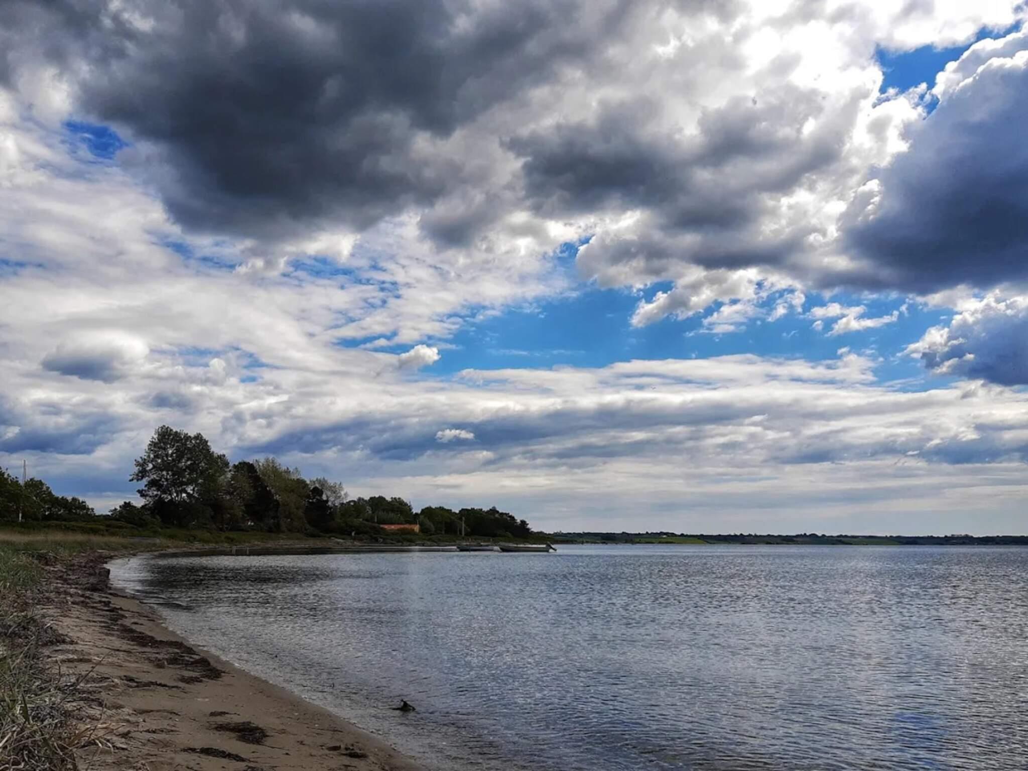 Genießen Sie die schönen Tage auf der Terrasse mit Ausblick zum Bootsverkehr in der Bucht sowie über Felder bis zum Wald. Sie können hier gut sonnenbaden oder unter dem Sonnenschirm Schatten finden.
