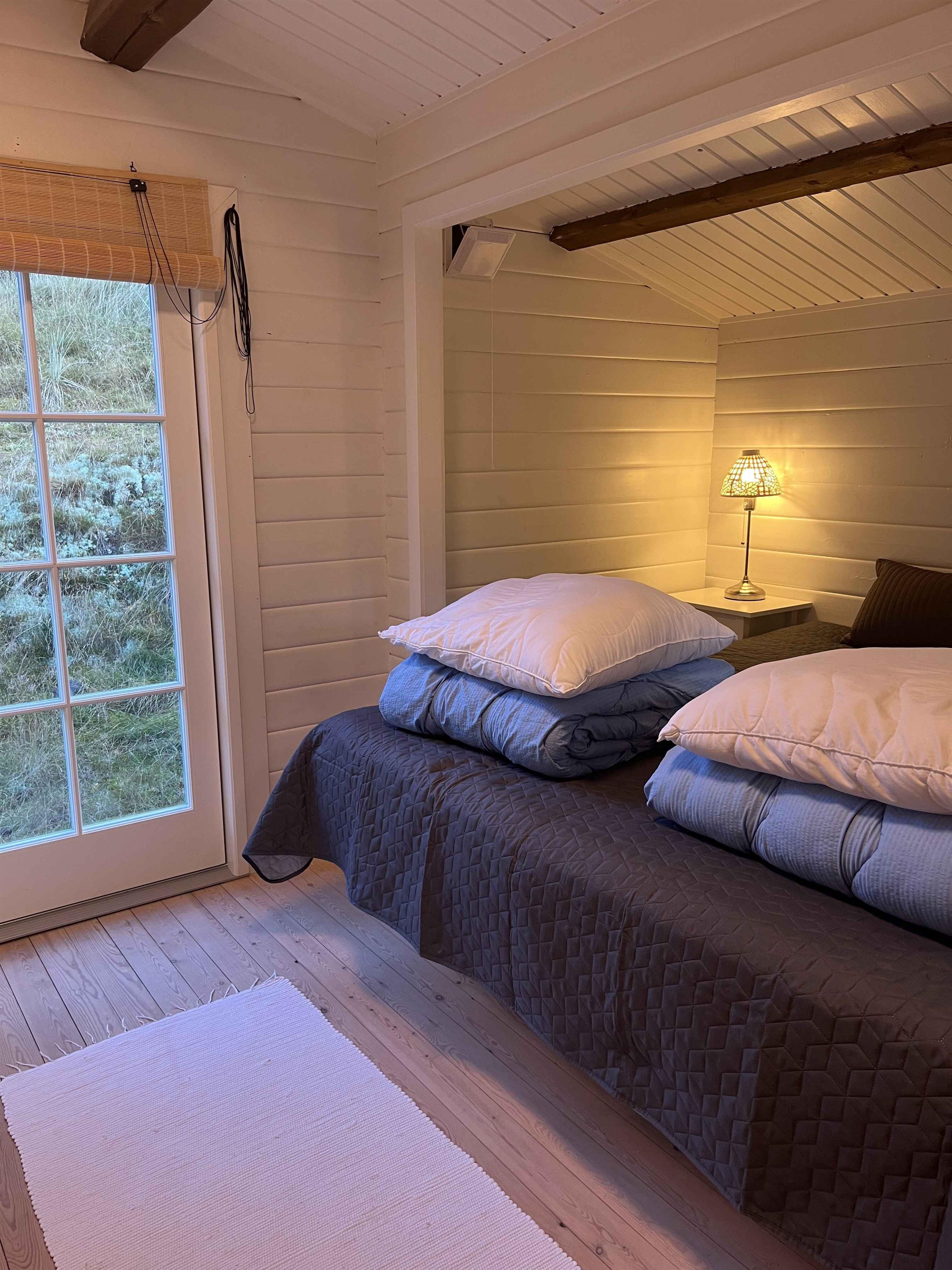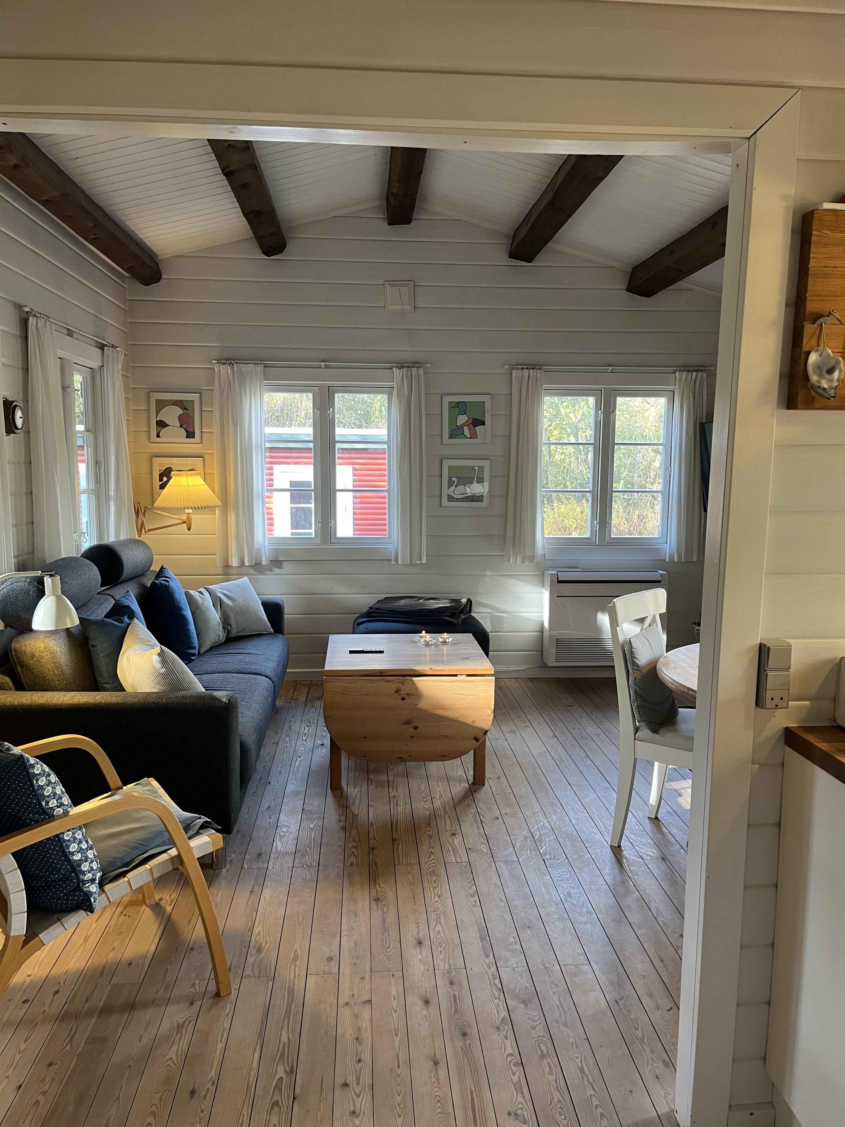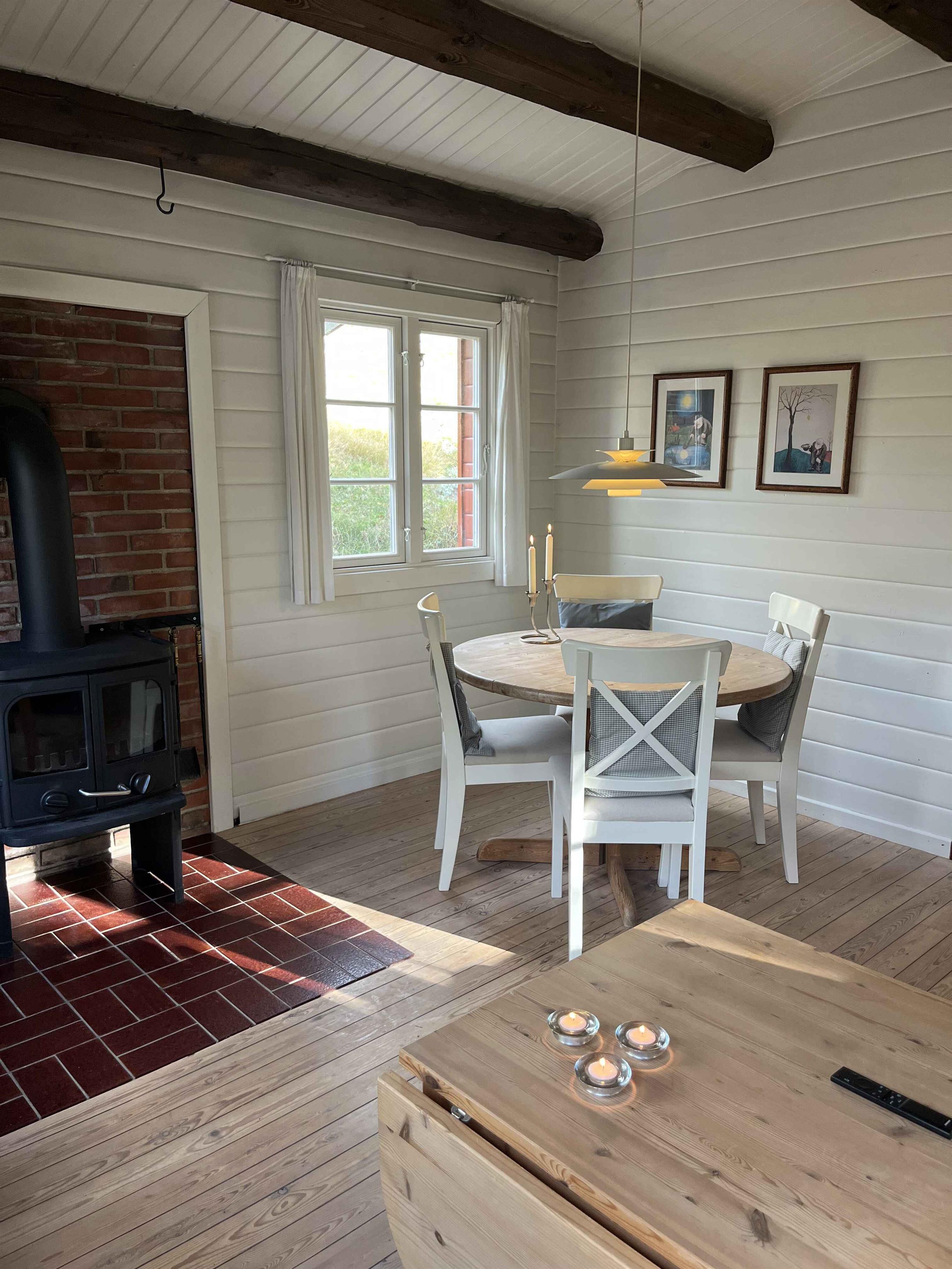 Gemütliches Blockhaus in Rindby auf Fanø mit Platz für vier Personen. Das Haus ist 50 m² groß und verfügt über zwei Schlafzimmer, ein helles Wohnzimmer mit Kaminofen sowie eine gut ausgestattete Küche. Die Einrichtung ist schlicht und funktional, sodass man sich leicht entspannen und sofort zu Hause fühlen kann. Vom Wohnzimmer aus gelangt man auf eine große, überdachte Terrasse. Hier können Sie den Grill anzünden, lange Mahlzeiten im Freien genießen oder geschützt sitzen und dem Vogelgesang lauschen. Das Haus ist von Natur umgeben, und die Tierwelt lässt sich hautnah erleben – oft direkt vor der Tür. Die Umgebung ist ein idealer Ausgangspunkt für Urlaubserlebnisse. Fanøs breite Sandstrände liegen nur 1,5 km entfernt – perfekt für Spaziergänge, Baden oder Drachensteigen im Wind. Die Insel bietet herrliche Fahrradrouten, kleine gemütliche Geschäfte, Cafés und Kunsthandwerk. Rindby ist bekannt für sein ruhiges Tempo, wo Natur und Meer aufeinandertreffen. Fanø ist außerdem ein Paradies für Naturliebhaber. Hier können Sie Robben bei Ebbe beobachten, die charakteristischen Wattvögel sehen oder durch Heide- und Dünenlandschaften wandern. Die Kombination aus unberührter Natur und lebendiger Kultur macht den Urlaub hier sowohl erholsam als auch erlebnisreich. Achtung: Wird nicht für gewerbliche Nutzung vermietet.