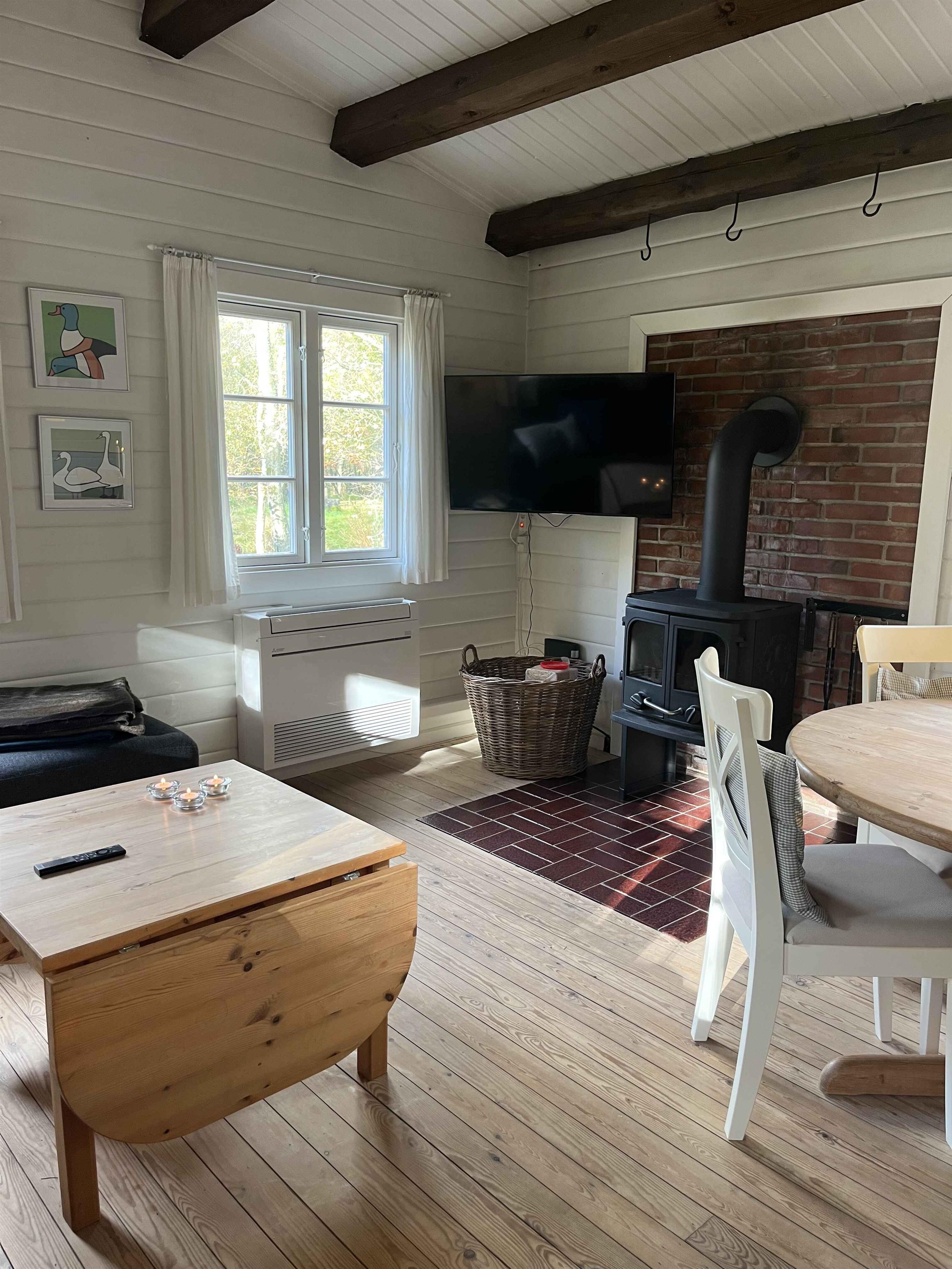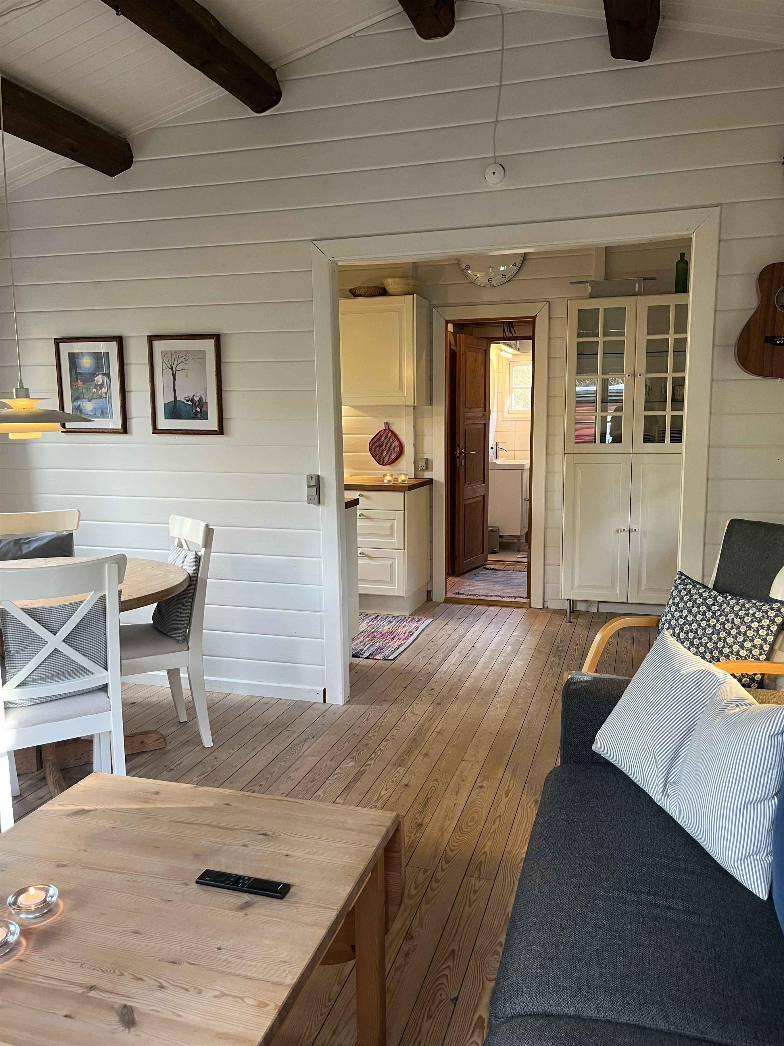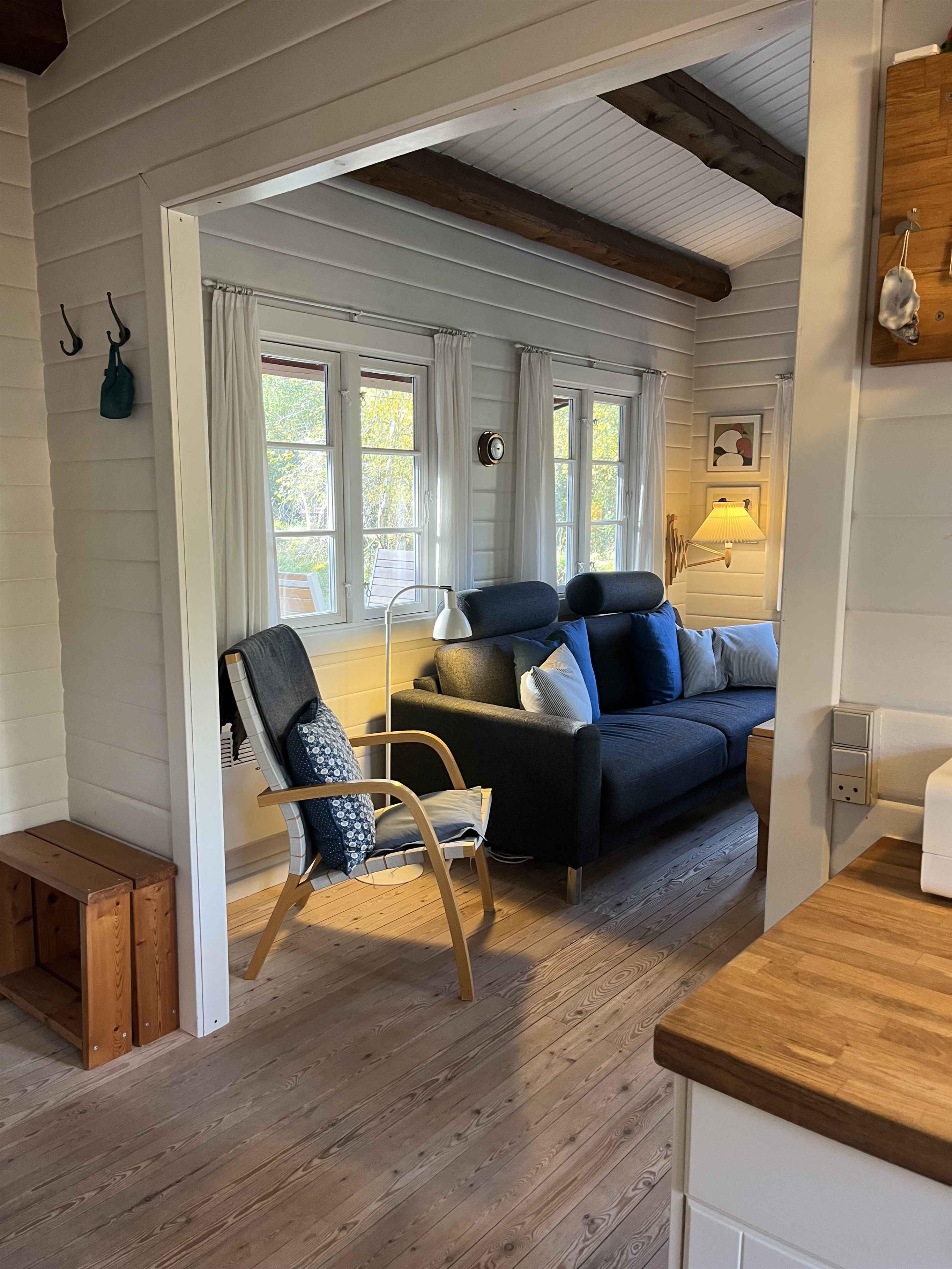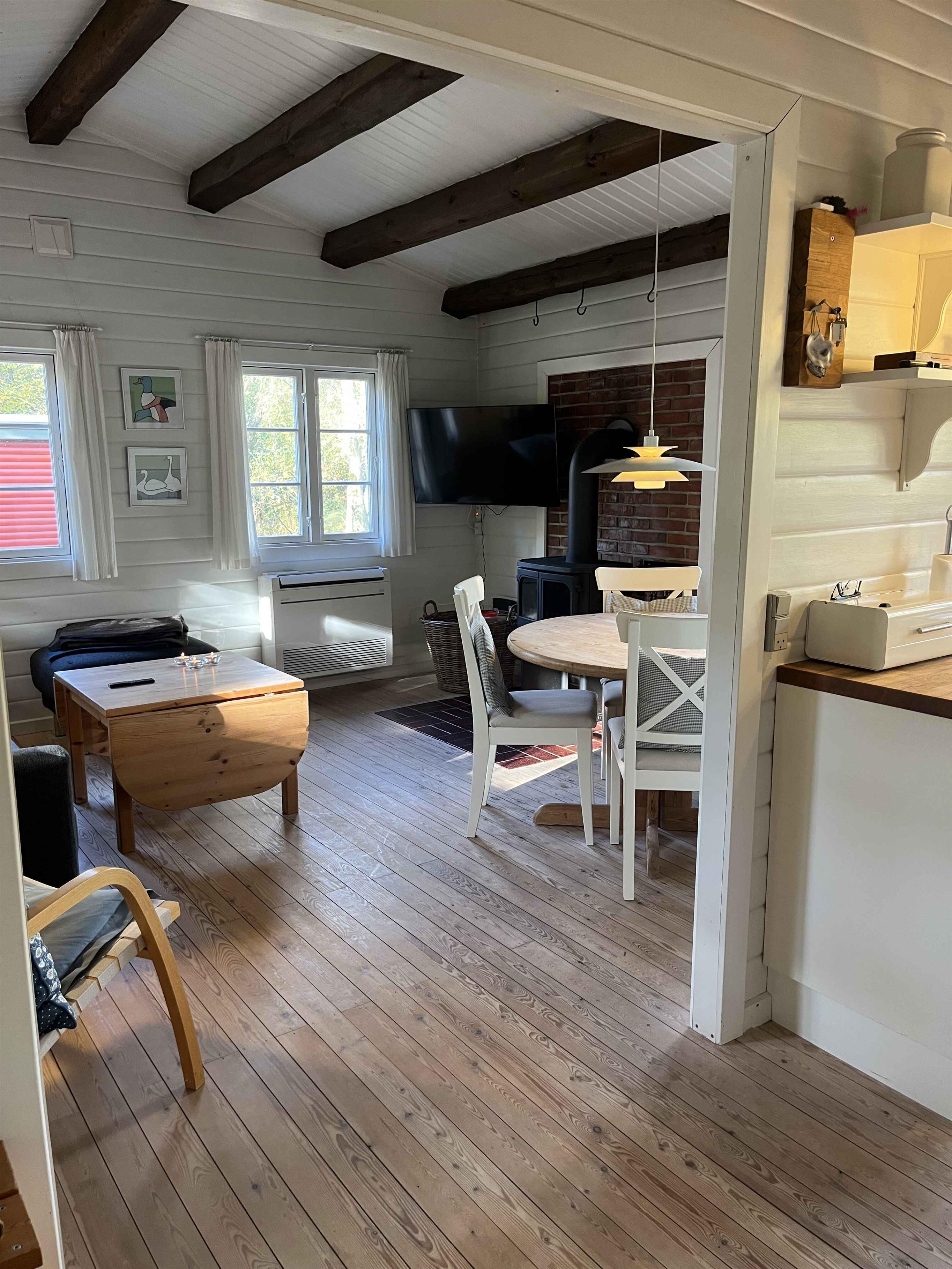 Gemütliches Blockhaus in Rindby auf Fanø mit Platz für vier Personen. Das Haus ist 50 m² groß und verfügt über zwei Schlafzimmer, ein helles Wohnzimmer mit Kaminofen sowie eine gut ausgestattete Küche. Die Einrichtung ist schlicht und funktional, sodass man sich leicht entspannen und sofort zu Hause fühlen kann. Vom Wohnzimmer aus gelangt man auf eine große, überdachte Terrasse. Hier können Sie den Grill anzünden, lange Mahlzeiten im Freien genießen oder geschützt sitzen und dem Vogelgesang lauschen. Das Haus ist von Natur umgeben, und die Tierwelt lässt sich hautnah erleben – oft direkt vor der Tür. Die Umgebung ist ein idealer Ausgangspunkt für Urlaubserlebnisse. Fanøs breite Sandstrände liegen nur 1,5 km entfernt – perfekt für Spaziergänge, Baden oder Drachensteigen im Wind. Die Insel bietet herrliche Fahrradrouten, kleine gemütliche Geschäfte, Cafés und Kunsthandwerk. Rindby ist bekannt für sein ruhiges Tempo, wo Natur und Meer aufeinandertreffen. Fanø ist außerdem ein Paradies für Naturliebhaber. Hier können Sie Robben bei Ebbe beobachten, die charakteristischen Wattvögel sehen oder durch Heide- und Dünenlandschaften wandern. Die Kombination aus unberührter Natur und lebendiger Kultur macht den Urlaub hier sowohl erholsam als auch erlebnisreich. Achtung: Wird nicht für gewerbliche Nutzung vermietet.