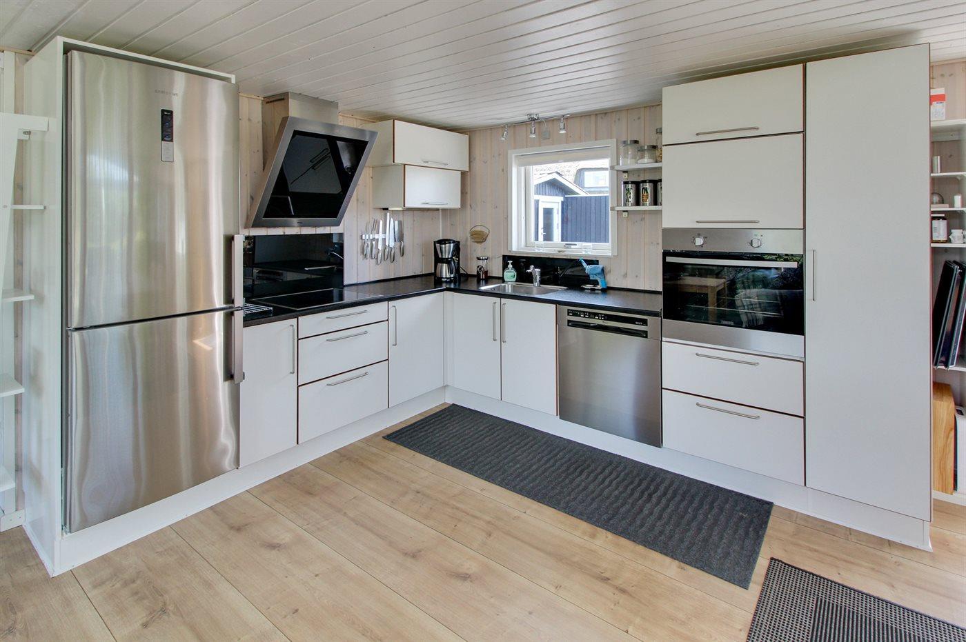 Die Küche ist mit Kühlschrank ausgestattet. Außerdem gibt es 4 Keramik-Kochfelder, Backofen, Mikrowelle sowie Geschirrspüler.