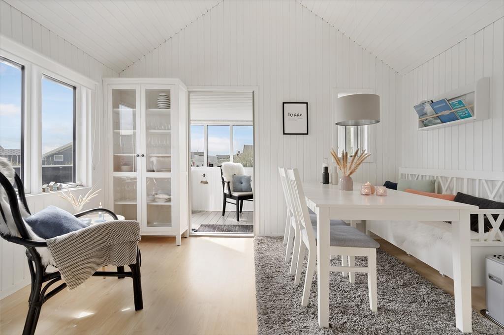 Unmittelbar nachdem du dein gemütliches Urlaubsdomizil zum ersten Mal betreten hast, wird dich der fantastische Tageslichteinfall begeistern, der durch die großen Fenster bedingt ist und dem Haus eine schöne Atmosphäre und Geräumigkeit verleiht. Du genießt mit deinem Herzensmenschen entspannte Stunden bei Kartenspielen am Esstisch, beim Kochen in der Küche und bei ruhigen Momenten mit einem guten Buch im ansprechenden Wohnraum. Im Wohnraum erwartet dich ein gemütliches Eckchen, in dem du dich gerne niederlässt und die durch die Fenster fallende Sonne genießt. Trotz der vergleichsweise wenigen Quadratmeter bietet das Haus viel Platz für das Beisammensein, aber auch für ruhige Momente alleine. Ein Fernseher ist nicht vorhanden.