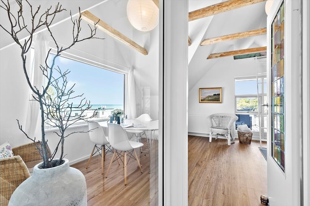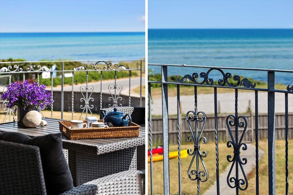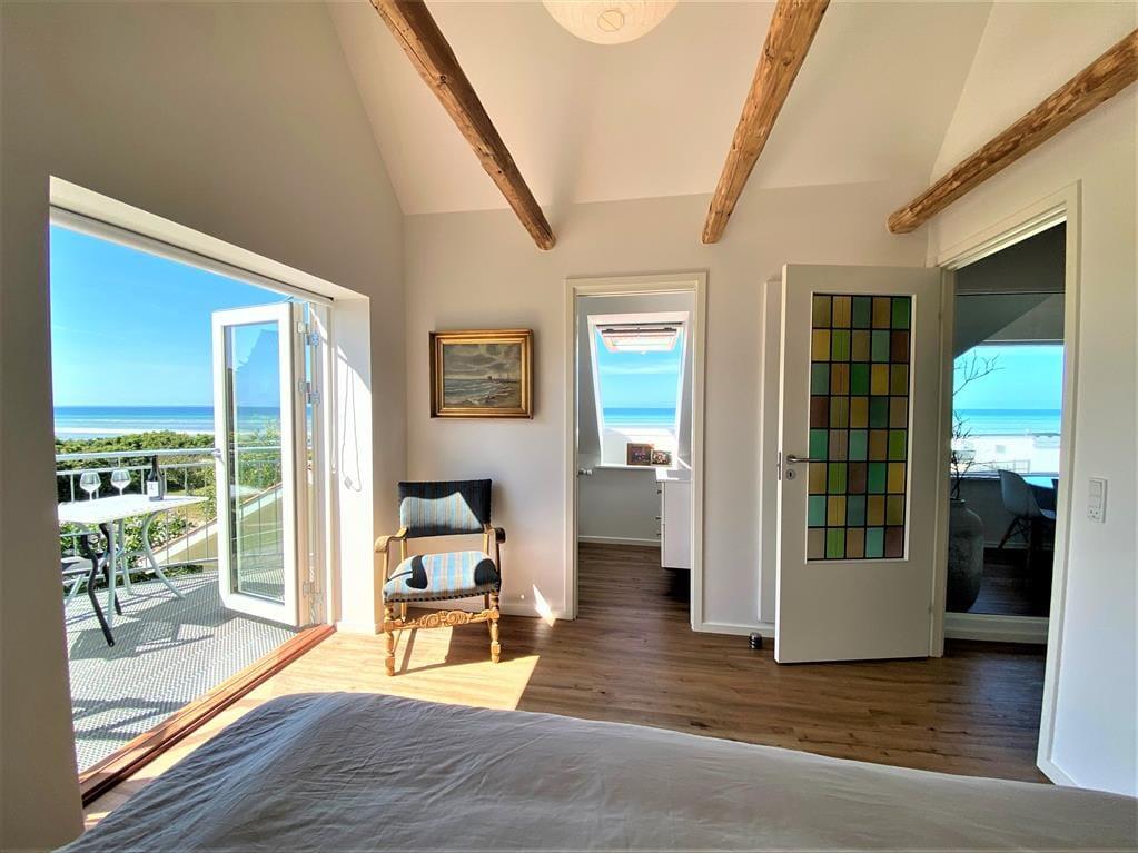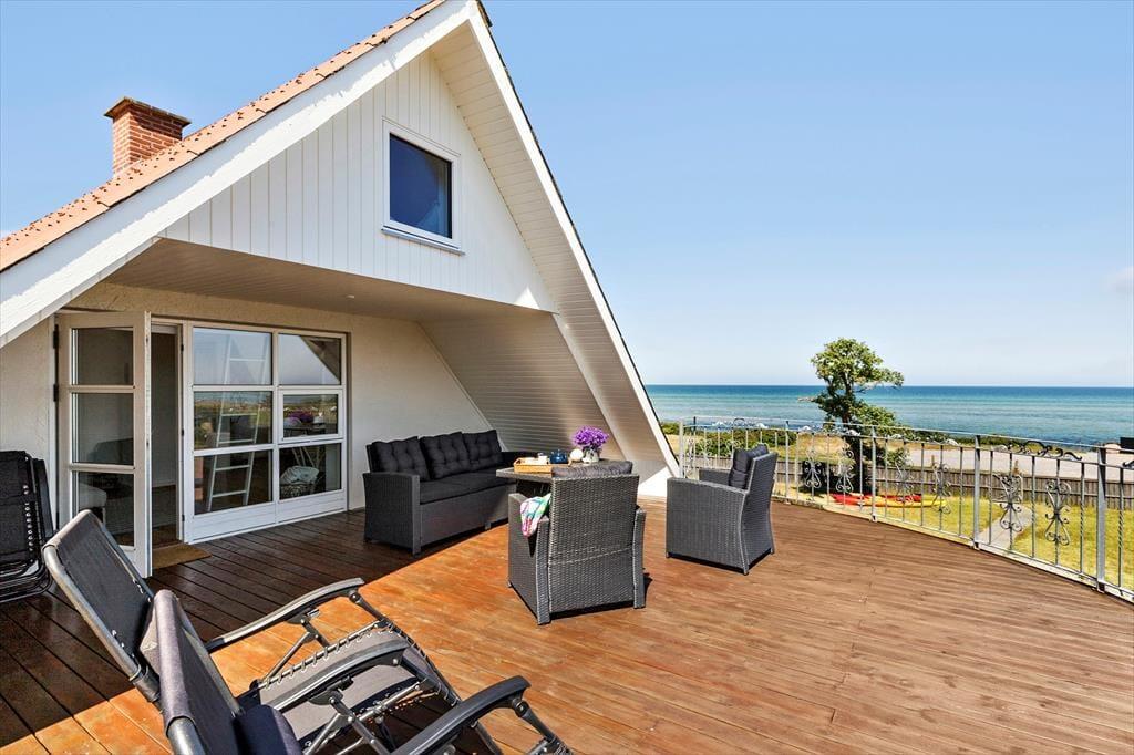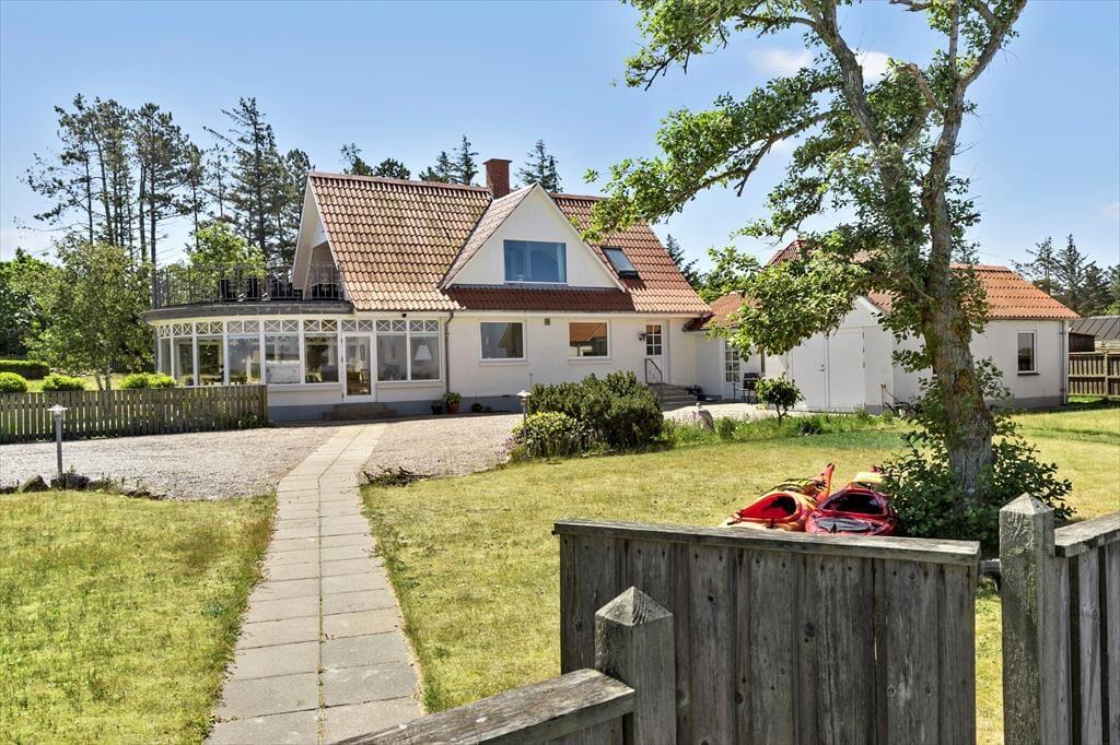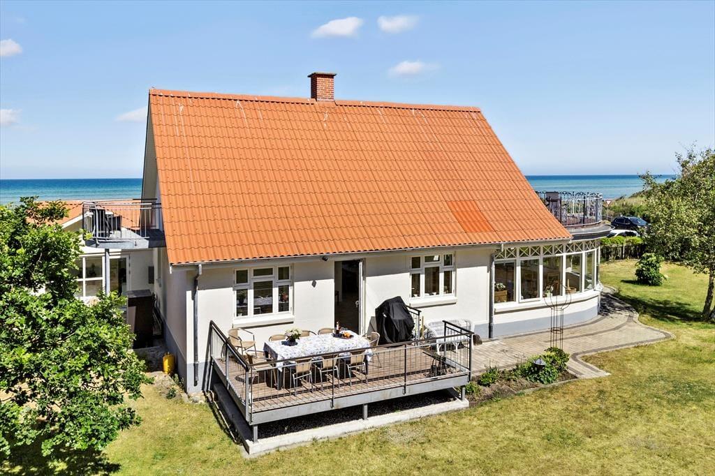 Nicht an vielen Stellen finden Sie so ein prachtvolles Ferienhaus, von dem Sie aufs Meer blicken und bei geöffneten Türen und Fenstern das Rauschen der Wellen hören und den Duft des Salzwassers riechen. Bei diesem Mietobjekt werden all Ihre Sinne angesprochen. Sie Nähe zum Meer verleiht Ruhe und Atmosphäre und bildet beste Voraussetzungen für erholsame Urlaubstage. Das in den 1930er Jahren erbaute Steinhaus wurde zuletzt im Jahr 2023 modernisiert und instandgesetzt. Dabei bewies der Eigentümer seinen guten Geschmack und zeigte Respekt gegenüber schönen alten Details. Die 173 m² große Wohnfläche erstreckt sich über zwei Etagen. Vom Eingangsbereich aus gelangen Sie in ein tolles Badezimmer mit Dusche und Badewanne. Die Küche präsentiert sich geräumig, gemütlich und zugleich modern. Sie beinhaltet alles, was Sie für die Zubereitung Ihrer Urlaubsmahlzeiten benötigen. Vom guten Essplatz aus gelangen Sie weiter in den Wohnraum, an den der "Wintergarten" schließt. Der große Wintergarten bietet viel Platz und verwöhnt mit Ausblick in den schönen Garten. Er ist fester Bestandteil des Hauses und verfügt, wie der Rest des Erdgeschosses, über eine Fußbodenheizung. Dadurch können Sie sich selbst im Winterhalbjahr wunderbar im Wintergarten aufhalten. Ein Schlafzimmer mit einem Doppelbett steht im Erdgeschoss zur Verfügung. Vom Wohnraum aus gelangen Sie auf eine große Terrasse, hinter der sich der Garten erstreckt. Auf dieser Terrasse können Sie abends frischen Fisch grillen, den Sie beim gegenüberliegenden Fischhändler Andersen gekauft haben. Die Treppe im Wohnraum führt Sie in das Obergeschoss, in dem zwei schöne Zimmer zur Verfügung stehen. Eines der Zimmer begeistert mit einem Zugang zum Aussichtsbalkon, auf dem Sie unter anderem gemütliche Stunden und herrliche Sonnenuntergänge genießen. Selbst vom Bett aus blicken Sie auf das Meer. Das zweite Zimmer besticht ebenfalls mit fantastischem Meerblick und beinhaltet vier Schlafplätze - zwei auf dem Schlafboden und zwei in Form eines doppelten Schlafsofas. Von diesem Zimmer aus treten Sie auf eine unglaublich schöne Dachterrasse, die dem Sonnendeck eines Schiffes ähnelt. Die Dachterrasse verwöhnt mit Liegestühlen, Loungemöbeln und prachtvollem Meerblick. Zu guter Letzt steht Ihnen ein 28 m² großes Nebengebäude zur Verfügung. Dieses Nebengebäude verfügt über ein Doppelbett, eine Mikrowelle, eine Kaffeemaschine, einen Ausgang auf eine kleine Terrasse sowie über ein eigenes Badezimmer mit einer Dusche und einem Waschtrockner.