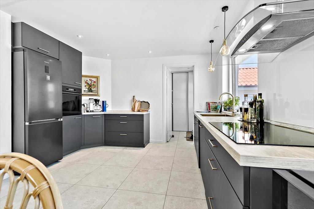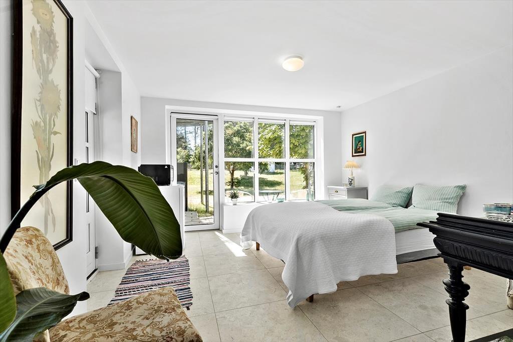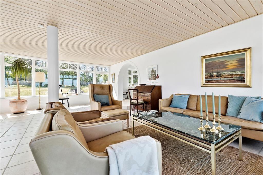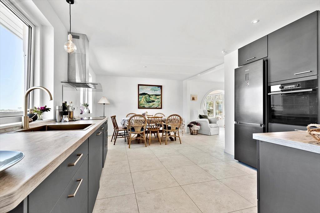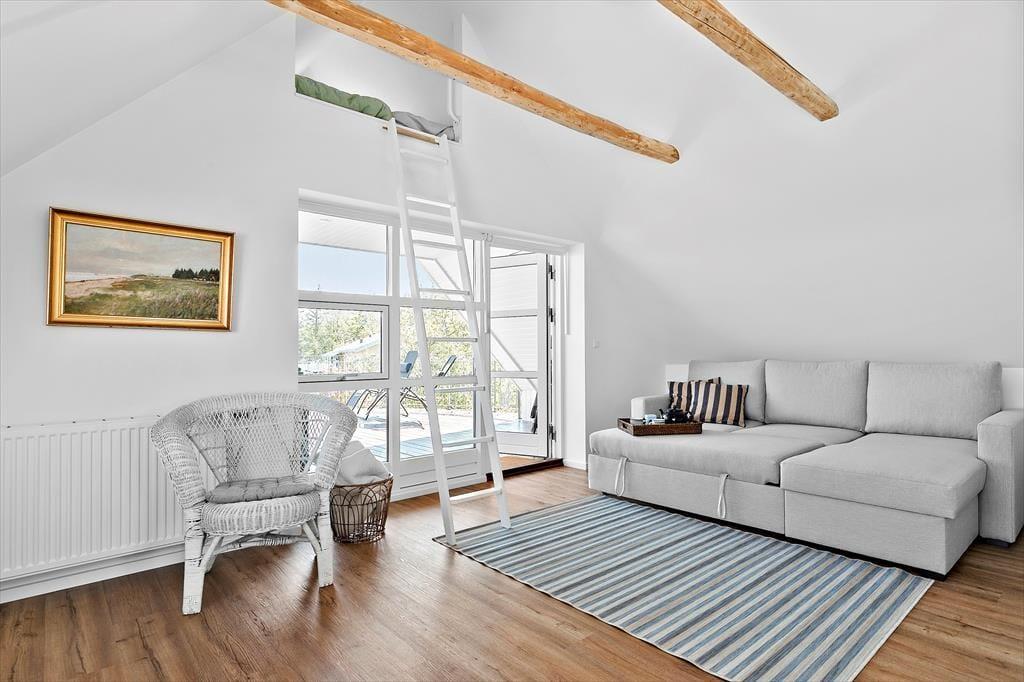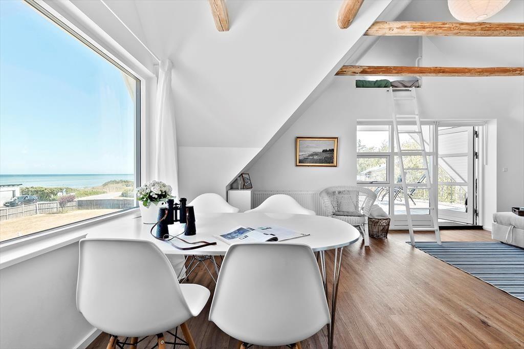 Nicht an vielen Stellen finden Sie so ein prachtvolles Ferienhaus, von dem Sie aufs Meer blicken und bei geöffneten Türen und Fenstern das Rauschen der Wellen hören und den Duft des Salzwassers riechen. Bei diesem Mietobjekt werden all Ihre Sinne angesprochen. Sie Nähe zum Meer verleiht Ruhe und Atmosphäre und bildet beste Voraussetzungen für erholsame Urlaubstage. Das in den 1930er Jahren erbaute Steinhaus wurde zuletzt im Jahr 2023 modernisiert und instandgesetzt. Dabei bewies der Eigentümer seinen guten Geschmack und zeigte Respekt gegenüber schönen alten Details. Die 173 m² große Wohnfläche erstreckt sich über zwei Etagen. Vom Eingangsbereich aus gelangen Sie in ein tolles Badezimmer mit Dusche und Badewanne. Die Küche präsentiert sich geräumig, gemütlich und zugleich modern. Sie beinhaltet alles, was Sie für die Zubereitung Ihrer Urlaubsmahlzeiten benötigen. Vom guten Essplatz aus gelangen Sie weiter in den Wohnraum, an den der "Wintergarten" schließt. Der große Wintergarten bietet viel Platz und verwöhnt mit Ausblick in den schönen Garten. Er ist fester Bestandteil des Hauses und verfügt, wie der Rest des Erdgeschosses, über eine Fußbodenheizung. Dadurch können Sie sich selbst im Winterhalbjahr wunderbar im Wintergarten aufhalten. Ein Schlafzimmer mit einem Doppelbett steht im Erdgeschoss zur Verfügung. Vom Wohnraum aus gelangen Sie auf eine große Terrasse, hinter der sich der Garten erstreckt. Auf dieser Terrasse können Sie abends frischen Fisch grillen, den Sie beim gegenüberliegenden Fischhändler Andersen gekauft haben. Die Treppe im Wohnraum führt Sie in das Obergeschoss, in dem zwei schöne Zimmer zur Verfügung stehen. Eines der Zimmer begeistert mit einem Zugang zum Aussichtsbalkon, auf dem Sie unter anderem gemütliche Stunden und herrliche Sonnenuntergänge genießen. Selbst vom Bett aus blicken Sie auf das Meer. Das zweite Zimmer besticht ebenfalls mit fantastischem Meerblick und beinhaltet vier Schlafplätze - zwei auf dem Schlafboden und zwei in Form eines doppelten Schlafsofas. Von diesem Zimmer aus treten Sie auf eine unglaublich schöne Dachterrasse, die dem Sonnendeck eines Schiffes ähnelt. Die Dachterrasse verwöhnt mit Liegestühlen, Loungemöbeln und prachtvollem Meerblick. Zu guter Letzt steht Ihnen ein 28 m² großes Nebengebäude zur Verfügung. Dieses Nebengebäude verfügt über ein Doppelbett, eine Mikrowelle, eine Kaffeemaschine, einen Ausgang auf eine kleine Terrasse sowie über ein eigenes Badezimmer mit einer Dusche und einem Waschtrockner.