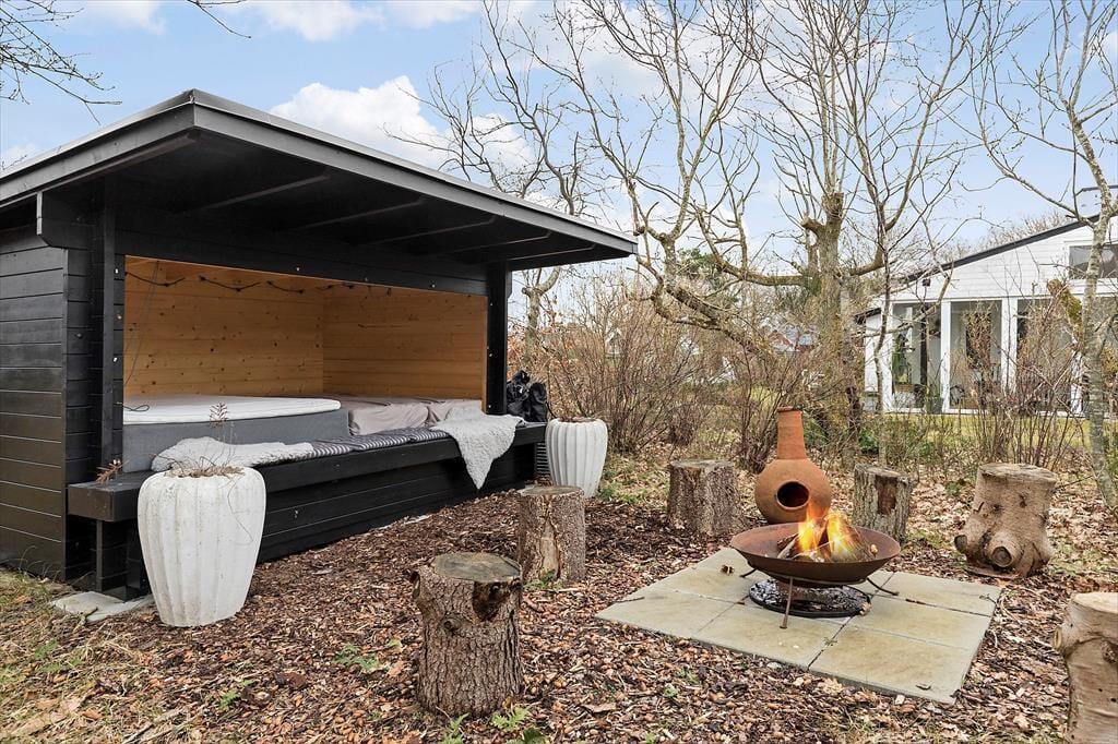 Zum Haus gehören mehrere Terrassen, sodass du dich immer da niederlassen kannst, wo die Sonne gerade am schönsten scheint. Gemütliche Momente im Kreise deiner Lieben verspricht selbst an bewölkten Tagen die vor der Schutzunterkunft platzierte Lagerfeuerstelle. Hier könnt ihr abends gemeinsam Marshmallows rösten und einen erlebnisreichen Urlaubstag in aller Ruhe ausklingen lassen. Während du dich auf den Terrassen erholst, werden deine Kinder vergnügt im Garten umhertollen und spielen. Falls du selber gern aktiv bist, spricht nichts gegen ausgelassene Ballspiele. Stimmungsvoll geht es auf den Terrassen abends mit einem guten Glas Wein und einem köstlichen Essen vom Grill zu.