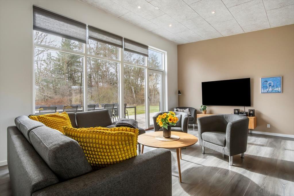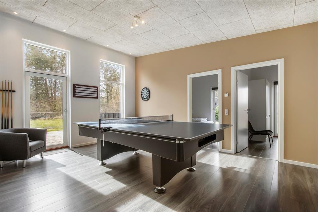Ein modernes Holzferienhaus aus dem Jahr 2016, das dich, deine Familie und Freunde zum Wohlfühlen einlädt. Beim Betreten des Hauses werdet ihr von einer Geräumigkeit begrüßt, die zeigt, dass dies ein Haus ist, in dem ihr gerne Zeit verbringt. Die Küche und das Wohnzimmer sind offen miteinander verbunden. Hier wird Essen gezaubert und gemütlich gegessen, während die Fernsehecke zu entspannenden Filmstunden und vielleicht einem kleinen Nickerchen einlädt. Wenn der Drang nach Betätigung in den eigenen vier Wänden aufkommt, steht der Aktivitätsraum für euch bereit. Hier könnt ihr euch in spannenden Tischtennis-Matches und intensiven Billard-Turnieren messen. Das Ferienhaus verfügt über fünf Schlafzimmer - vier Zimmer mit zwei Einzelbetten, die zu Doppelbetten zusammengeschoben werden können, und ein Etagenzimmer mit vier Etagenbetten, perfekt für die Kinder und diejenigen unter euch, die sich noch jung genug fühlen, um in das obere Etagenbett zu klettern. Abgerundet wird das Hausinnere durch zwei moderne Bäder, von denen eines mit einem schönen Whirlpool ausgestattet ist, in dem ihr euch herrlich entspannen könnt.