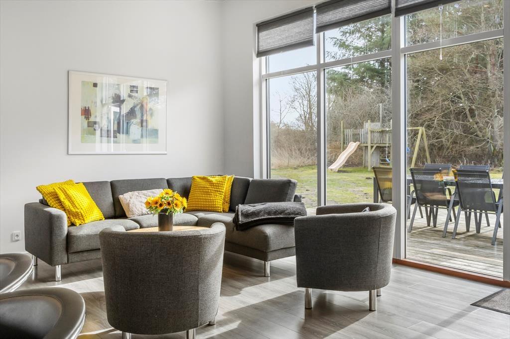Das Ferienhaus liegt abgeschieden am Ende einer ruhigen Schotterstraße in einem neueren Ferienhausgebiet. Es gibt genügend Parkplätze und einen einfachen Zugang zu einer Ladestation für ein Elektroauto. Hinter dem Haus breitet sich eine große ebene Rasenfläche aus. Es gibt viel Platz für Spiele - probiere das hauseigene Wikingerschach und Krocket aus. Die Kinder können sich im Spielturm austoben, wo es auch eine Schaukel und eine Rutsche gibt, während ihr Erwachsene auf der Terrasse plaudert. Wenn das gegrillte Abendessen beendet ist, nehmt eure Gläser mit zum Feuer und versammelt euch zu langen Geschichten und gerösteten Marshmallows. Die Terrasse ist eine schöne Oase mit Platz für alle. Ob ihr nun Entspannung oder Aktivität sucht; dieses Ferienhaus hat alles, was ihr benötigt, um unvergessliche Erinnerungen zu schaffen.
