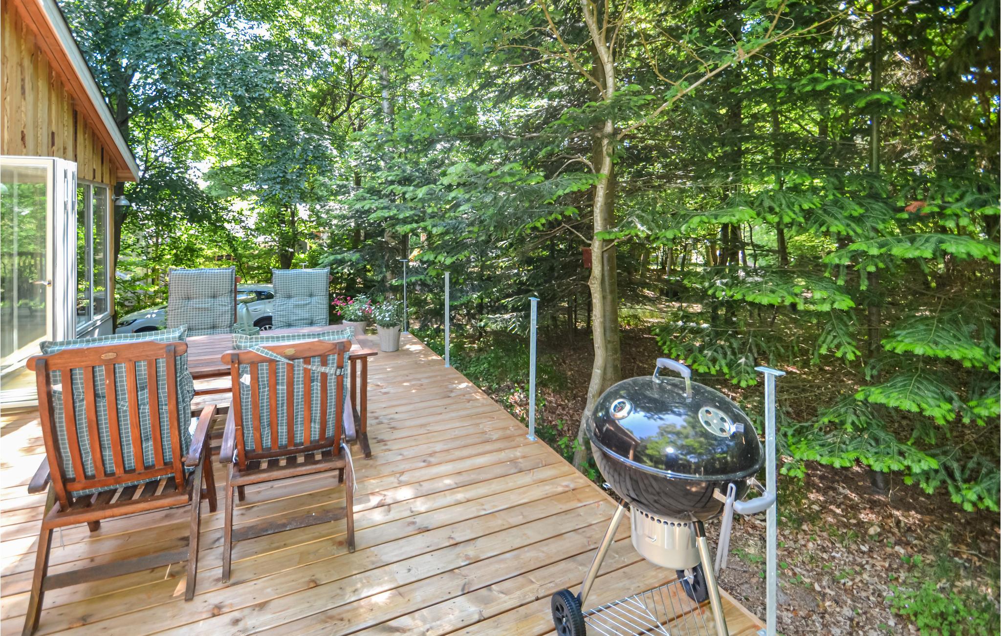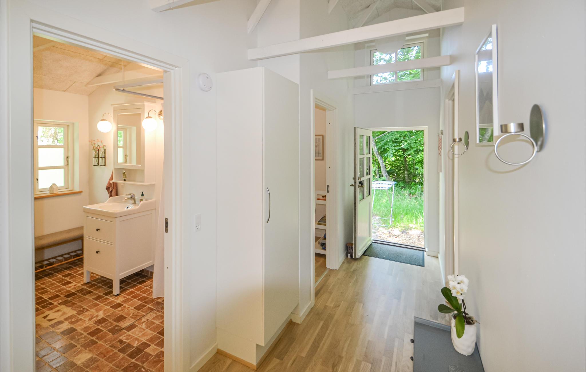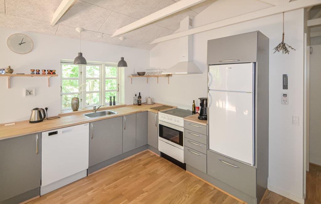 In der alten Ferienhausgegend in Fjellerup, auf einem hügeligen Grundstück, liegt dieses Ferienhaus von hohen Buchen umgeben. Das Haus ist schön und hell und hat eine große Terrasse mit Treppen zum Grundstück. Ein Teil des großen Fensterbereichs im Wohnzimmer kann bis zur Terrasse geöffnet werden, sodass Sie fast das Gefühl haben, mitten in der wunderschönen Natur zu sitzen. Das Wohnzimmer mit Holzofen ist unglaublich gemütlich mit bequemen Möbeln eingerichtet und verfügt über freiliegende Sparren mit schrägen Decken, die ein gutes Raumgefühl vermitteln. In Erweiterung des Wohnzimmers befindet sich das Esszimmer und die gut ausgestattete Küche. Darüber hinaus verfügt das Haus über 3 gute Schlafzimmer und ein großes Badezimmer. Auf dem Grundstück ist Platz für 2 Autos zum Parken.