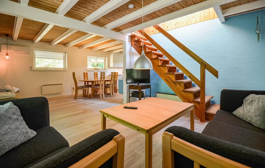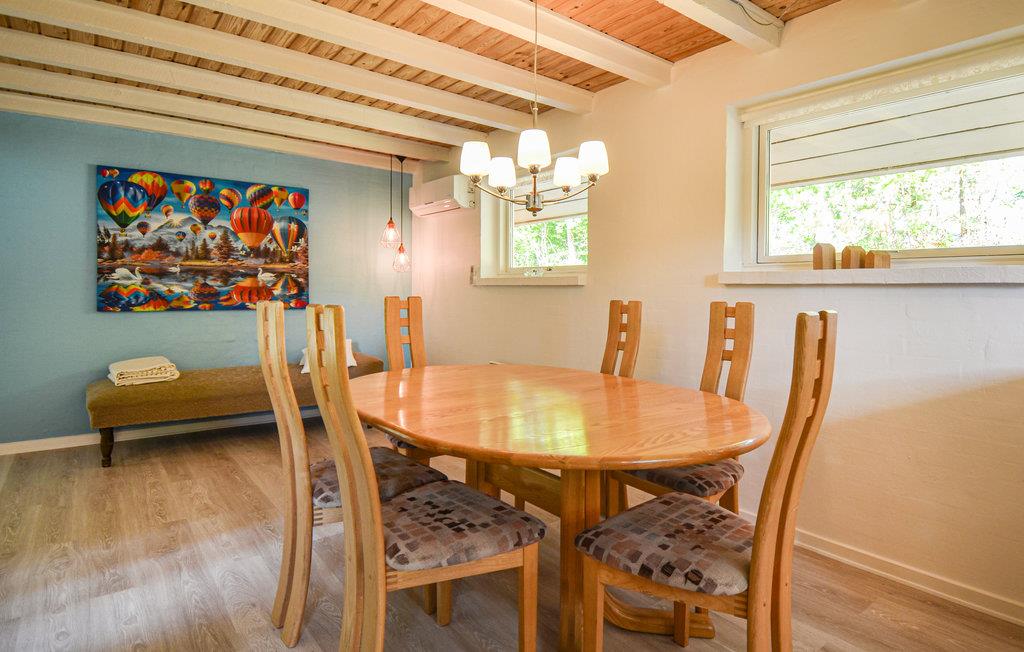 Verbringen Sie Ihre Ferien in diesem einladenden Ferienhaus auf einem hügeligen Naturgrund, unweit der Nordküste Djurslands. Das gemütlich gestaltete Haus erwartet Sie mit einer offenen Wohnküche im Erdgeschoss. Nutzen Sie den Essbereich für gemeinsame Mahlzeiten und machen Sie es sich auf den Sofas bequem. Kochen Sie in der hellen Küche, die mit einer praktischen Einrichtung und viel Arbeitsfläche punktet.