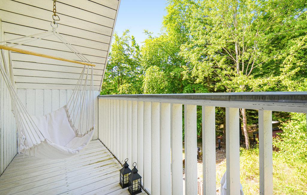 Lassen Sie den Tag auf der großen, möblierten Terrasse ausklingen. Entspannen Sie nach allen Regeln der Kunst im Finnischen Holzbad oder genießen Sie die Aussicht vom Balkon im Hängesessel. Kinder freuen sich über das eingelassene Trampolin und die Spielgeräte im Garten. Sammeln Sie sich abends rund um die Feuerstelle und lassen Sie den Urlaubstag in geselliger Runde ausklingen.