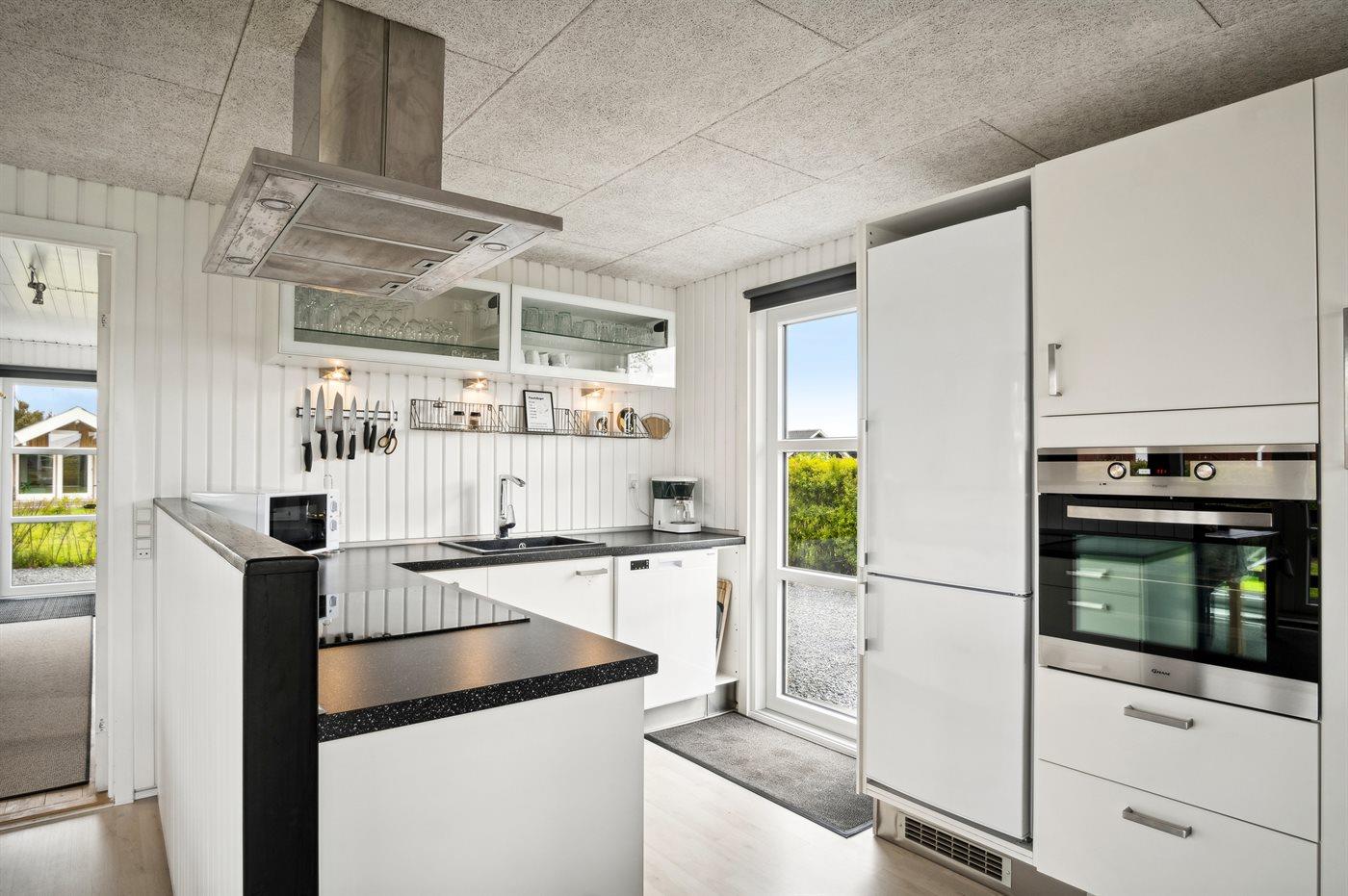 Die Küche ist mit 1 Kühlschrank ausgestattet. Außerdem gibt es 4 Keramik-Kochfelder, Umluftofen, Mikrowelle sowie Geschirrspüler.