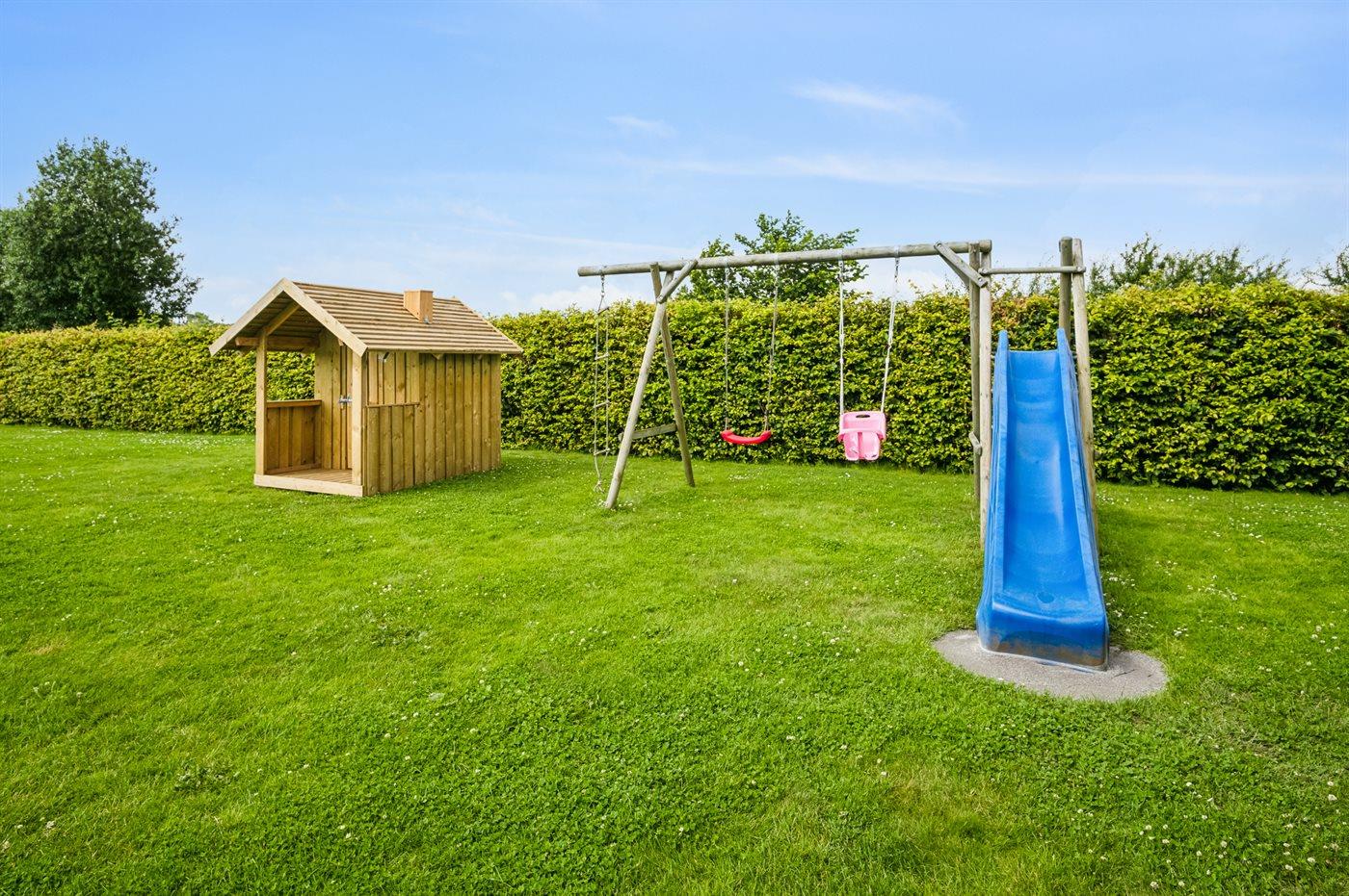 Die Ferienunterkunft liegt auf einem 1171 m² großen Naturgrundstück. Die Entfernung zum Meer beträgt 500 m. Die nächste Einkaufsmöglichkeit liegt 5000 m entfernt. In einem Abstand von 12000 m gibt es einen Golfplatz. Es steht ein offenes Terrassenareal zur Verfügung. Außerdem gibt es überdachte Terrasse. Schaukel. Sandkasten. Kinderspielhaus. Trampolin. Rutsche. Es steht ein Grill zur Verfügung. Parkplatz auf dem Grundstück.