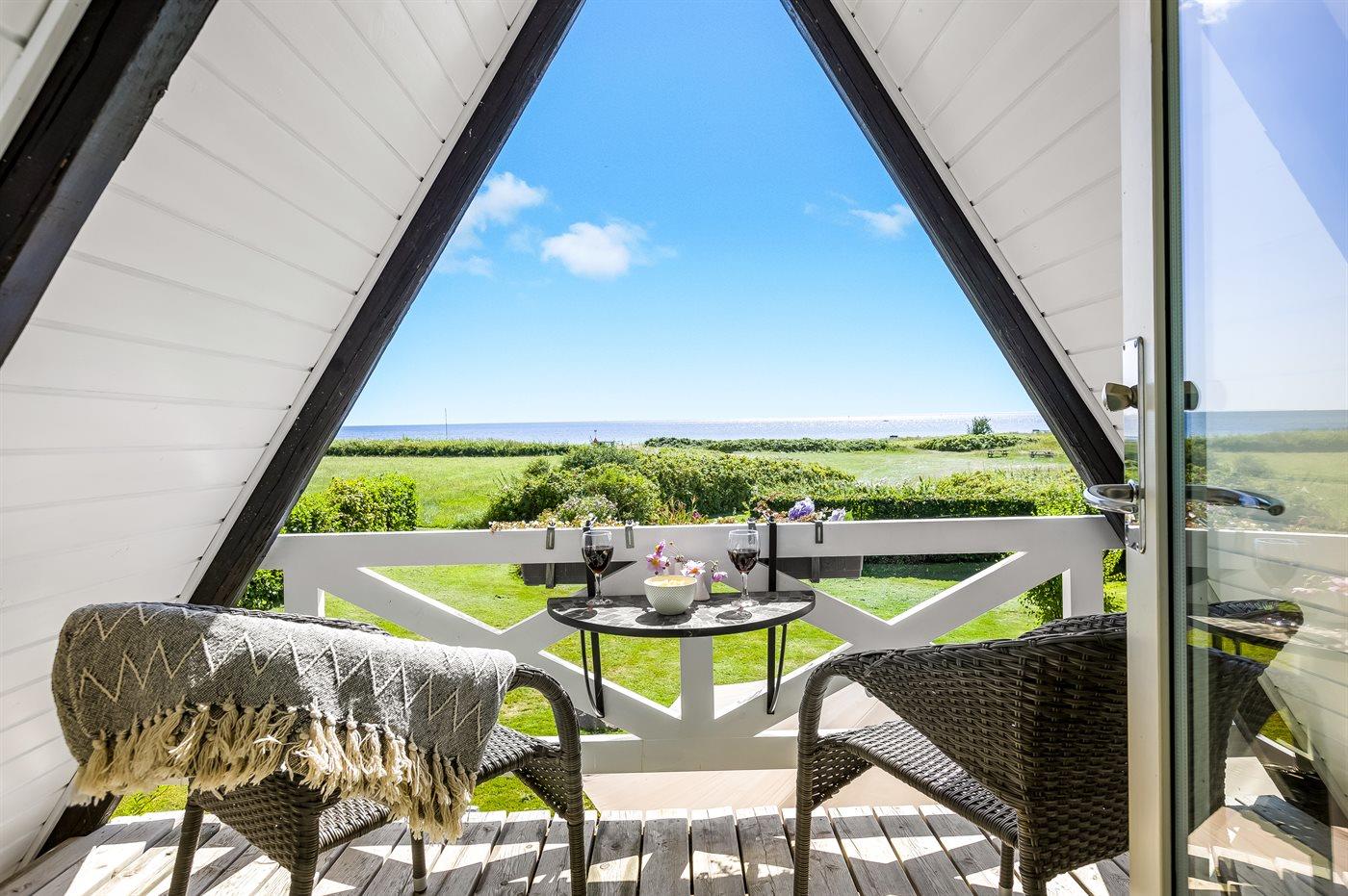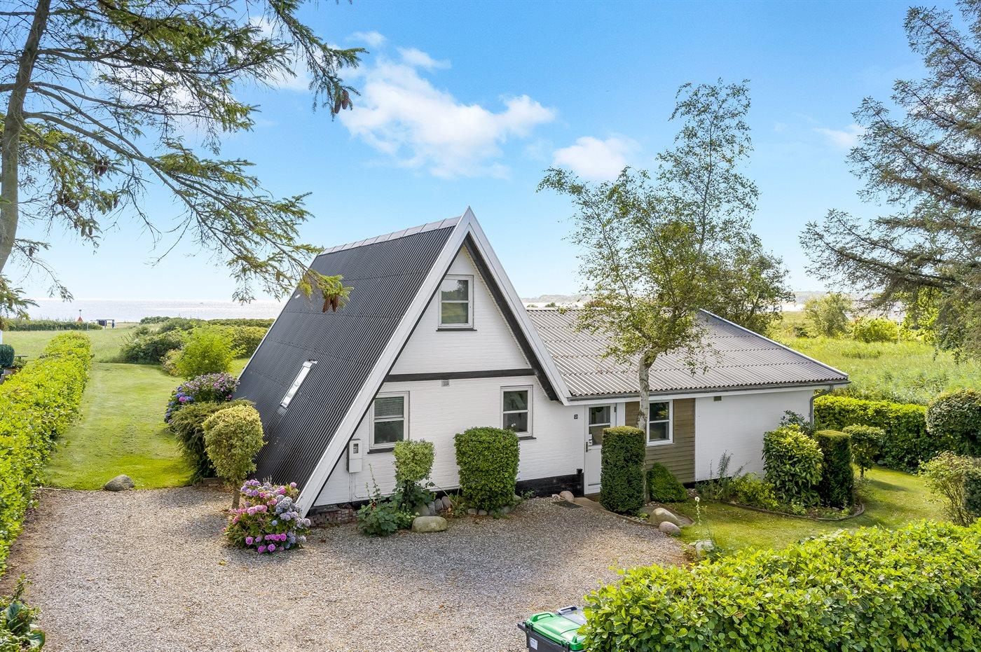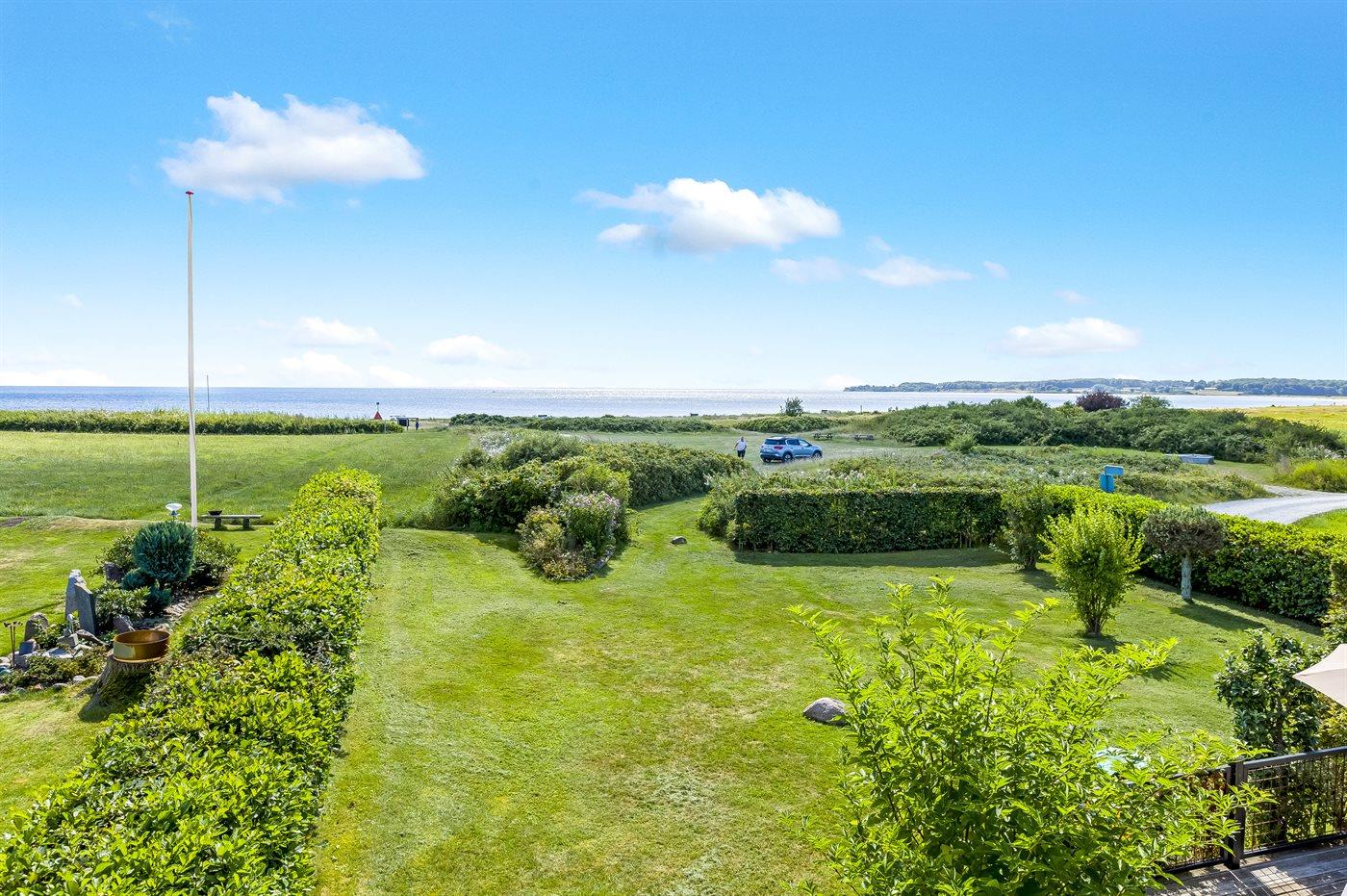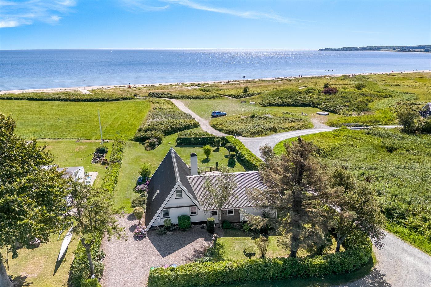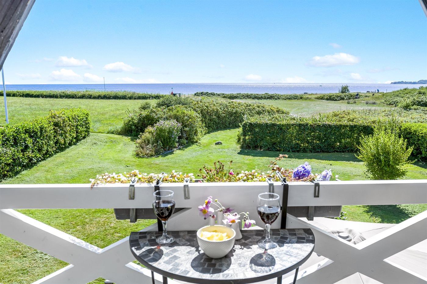 Gemütliches Ferienhaus in Flovt direkt am Meer mit Whirlpool, Terrasse und herrlichem Ausblick für erholsame Tage.