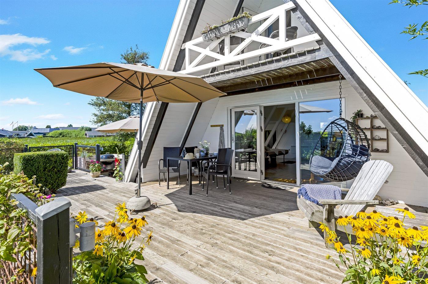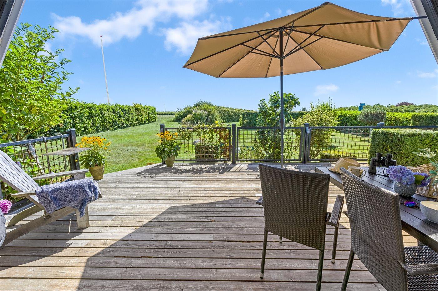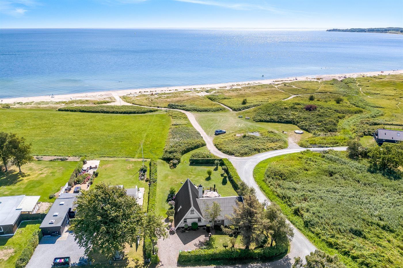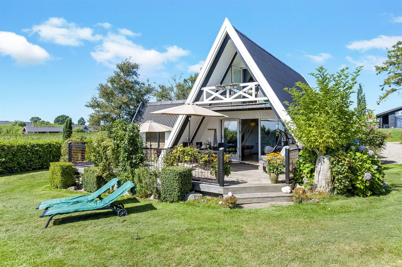 Gemütliches Ferienhaus in Flovt direkt am Meer mit Whirlpool, Terrasse und herrlichem Ausblick für erholsame Tage.