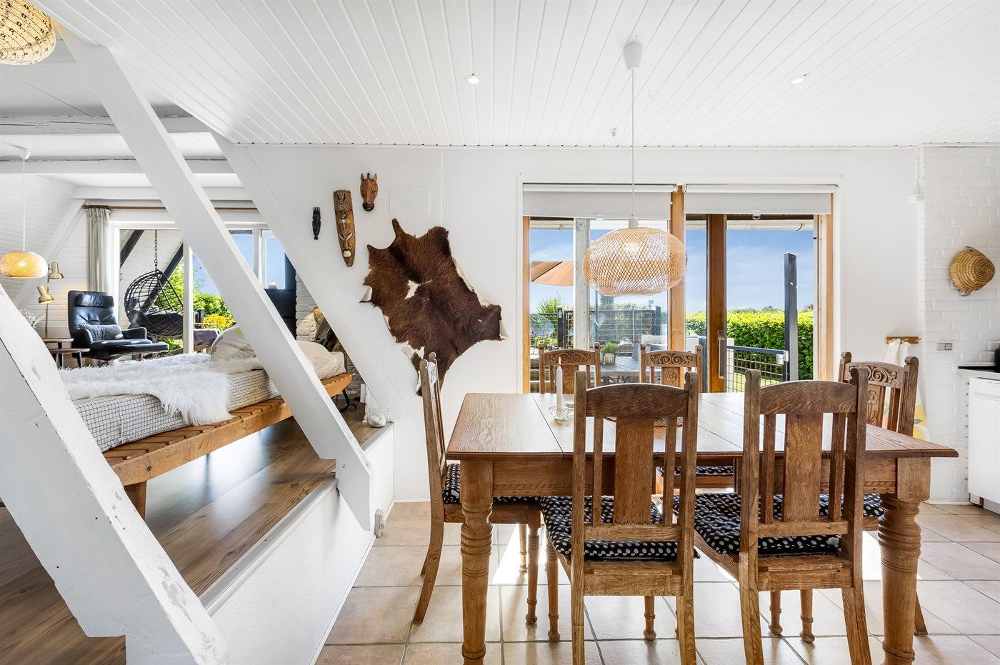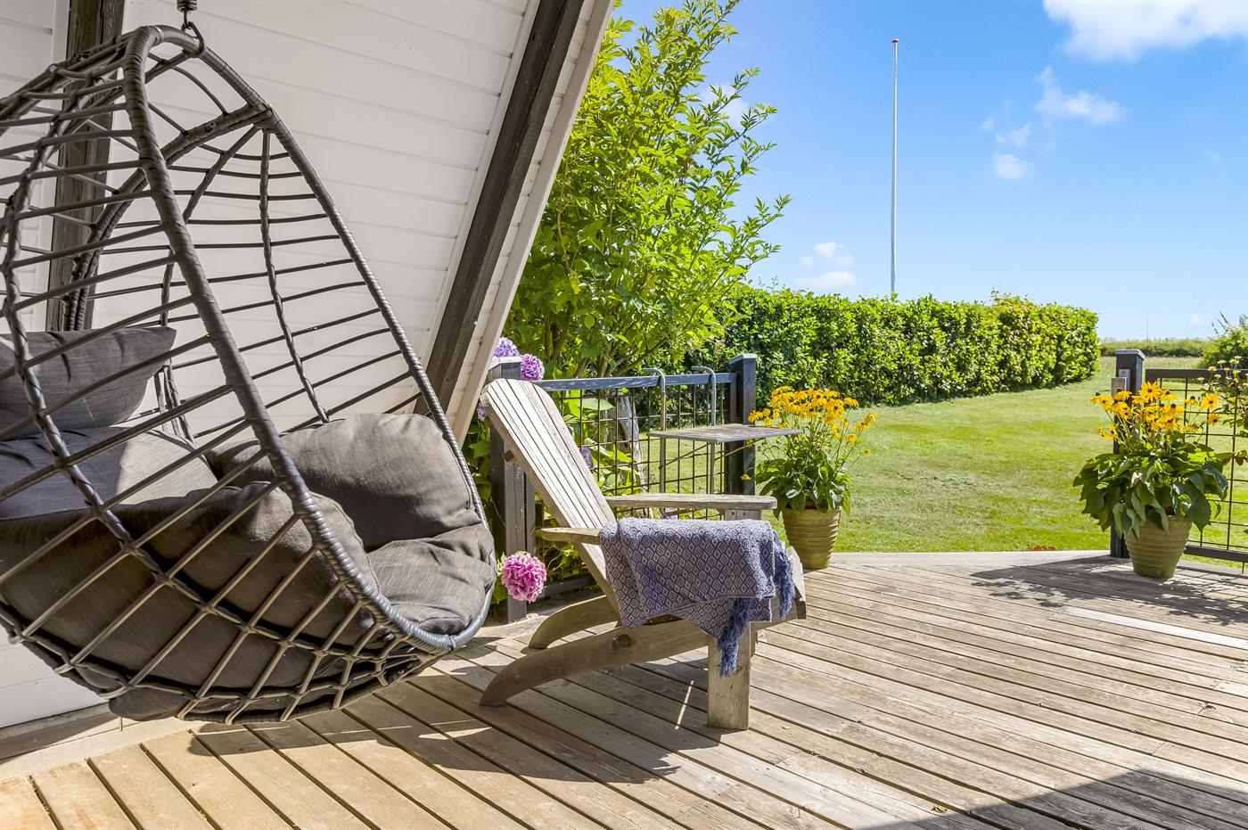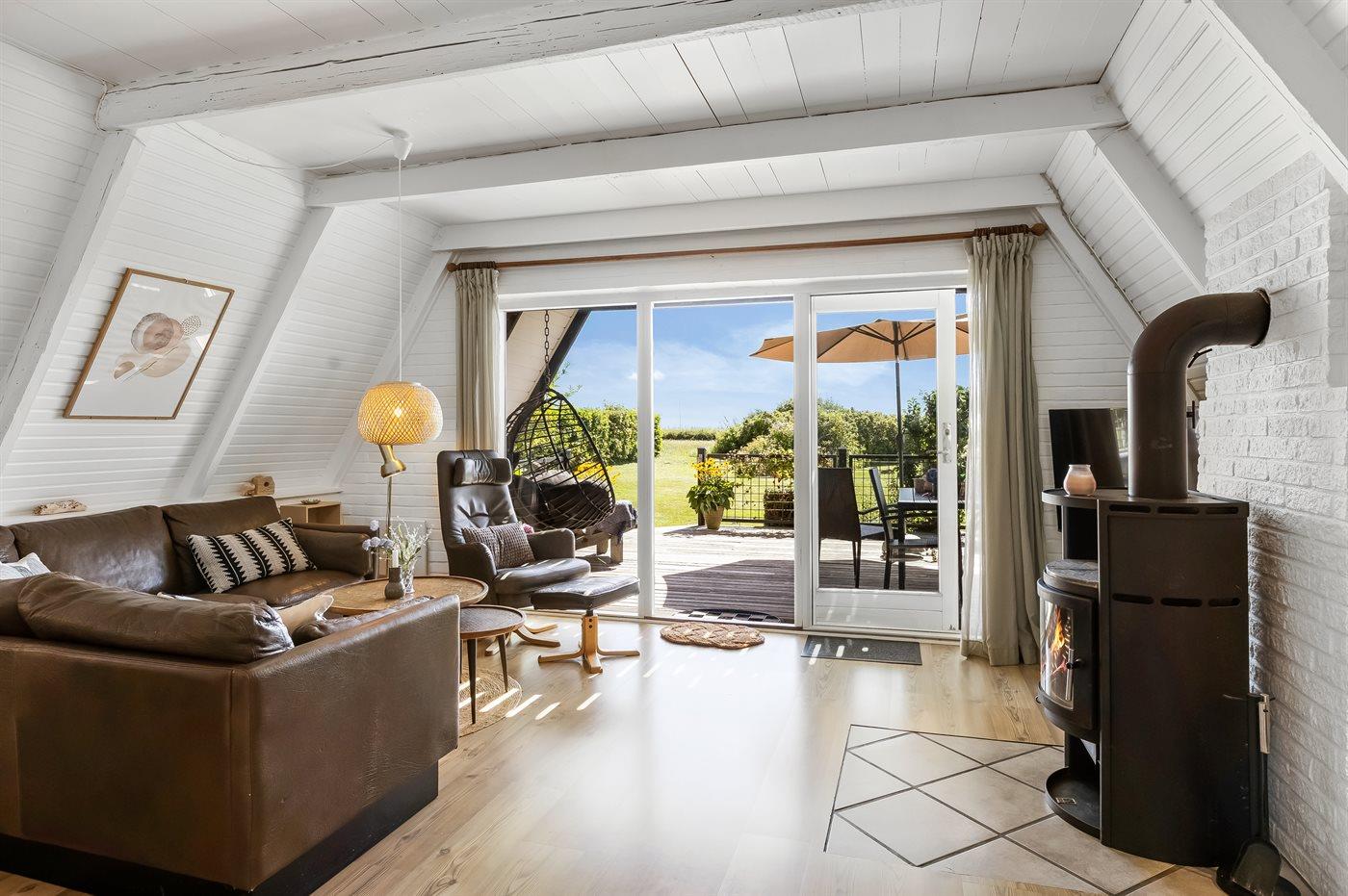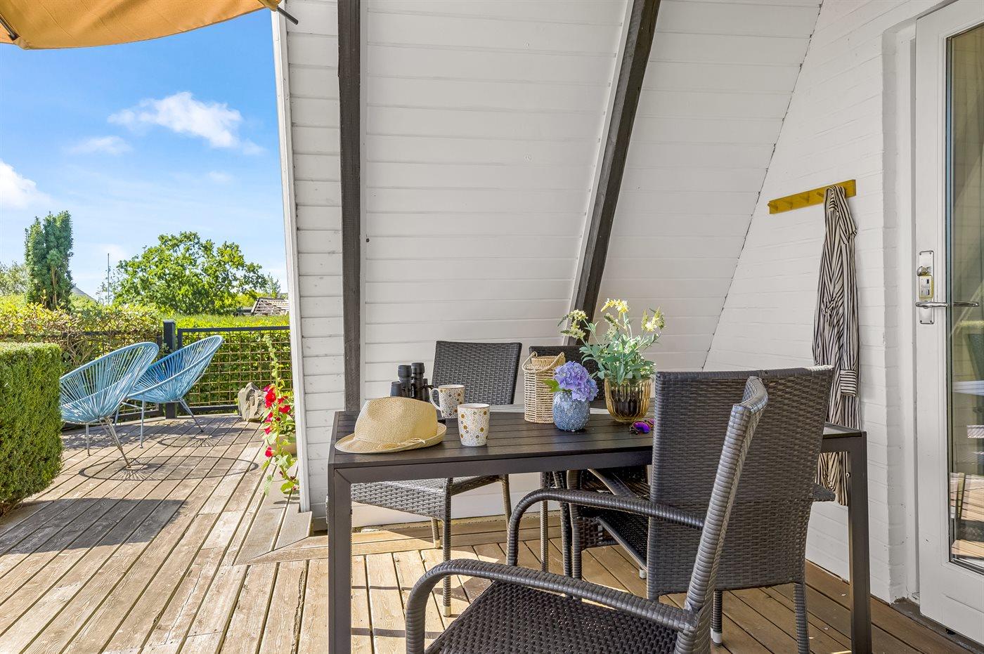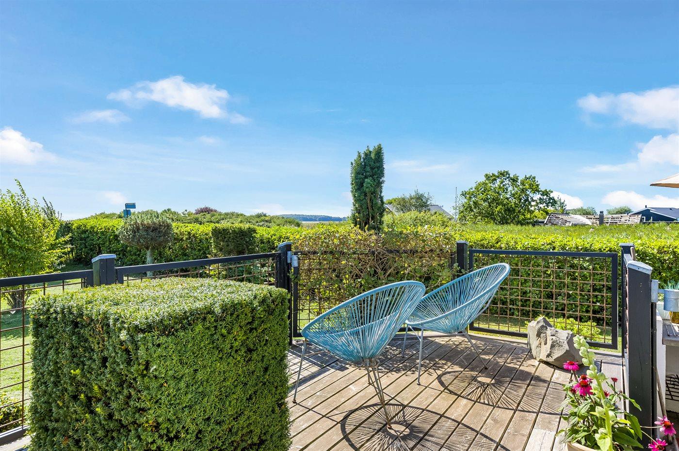 Gemütliches Ferienhaus in Flovt direkt am Meer mit Whirlpool, Terrasse und herrlichem Ausblick für erholsame Tage.