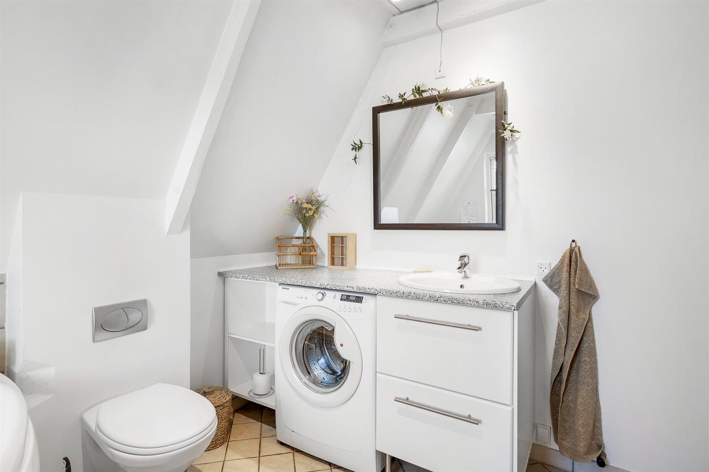 Es gibt 1 Badezimmer mit Dusche und 2 Toiletten, davon 1 Gästetoilette. Fußbodenheizung in 1 Badezimmer. Fußbodenheizung in der Gästetoilette.