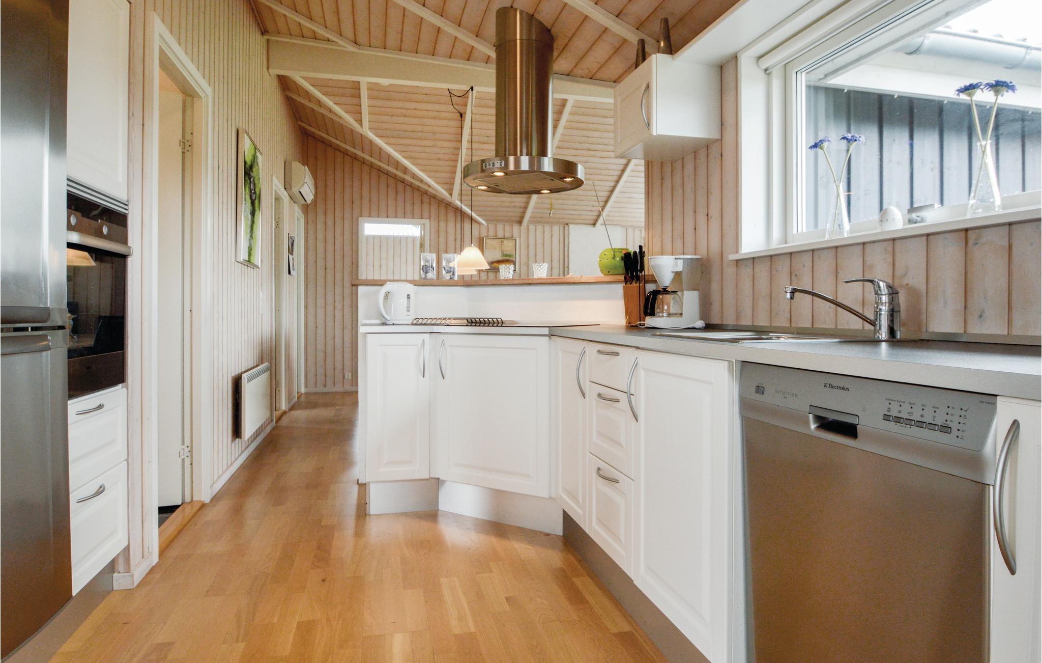 Ein schönes Ferienhaus in ruhiger Lage. Es ist gut eingerichtet mit einer hellen Wohnstube mit offenem Dachfirst. Wohnzimmer und Küche liegen in offener Verbindung miteinander und dieser schöne Raum bildet das Herz des Hauses. Es gibt drei schöne Schlafzimmer und ein Badezimmer mit Whirlpool.