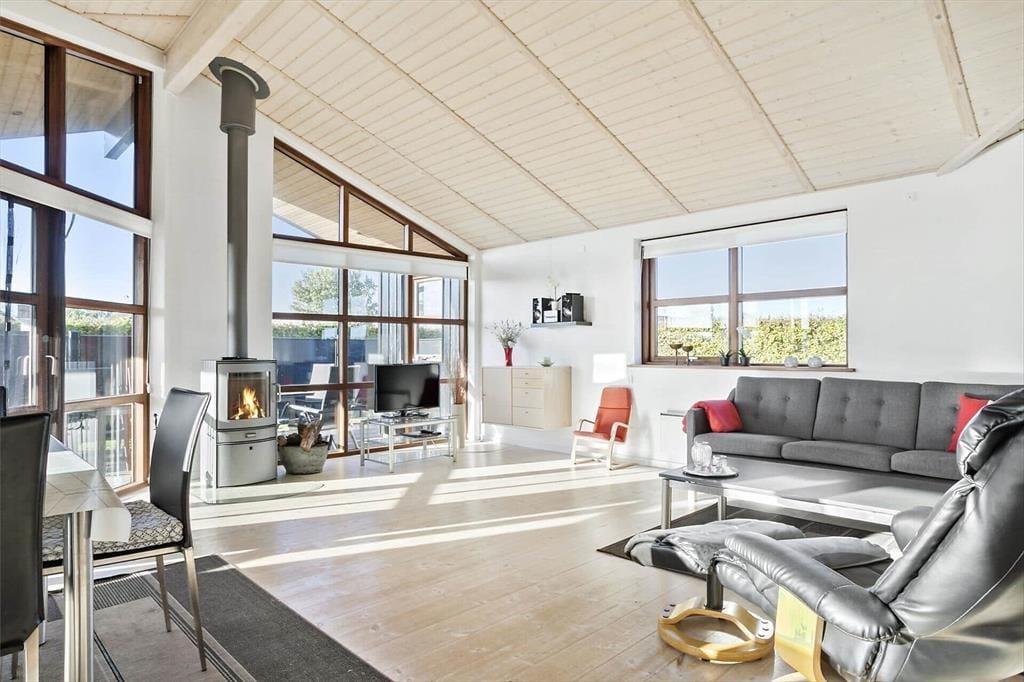 Tritt ein in ein helles und einladendes Ferienhaus, dessen Atmosphäre sofort für Entspannung sorgt. Die großen Fensterfronten lassen viel Tageslicht herein und schaffen eine natürliche Verbindung zwischen Innen- und Außenbereich. Der offene Grundriss verbindet Küche, Essbereich und Wohnzimmer zu einem harmonischen Ganzen und lädt zu geselligen Momenten, gemeinsamem Kochen und gemütlichen Abenden am Kamin ein. Hier kannst du eine Tasse Kaffee auf dem Sofa genießen, während der Regen sanft an die Scheiben klopft, oder nach einem langen Tag am Strand ein Glas Wein trinken. Das Badezimmer ist großzügig gestaltet und mit Whirlpool und Sauna ausgestattet – perfekt für wohltuende Stunden, in denen du Körper und Seele verwöhnst. Die hellen Schlafzimmer sorgen für erholsamen Schlaf, sodass du frisch und ausgeruht in einen neuen Ferientag starten kannst.