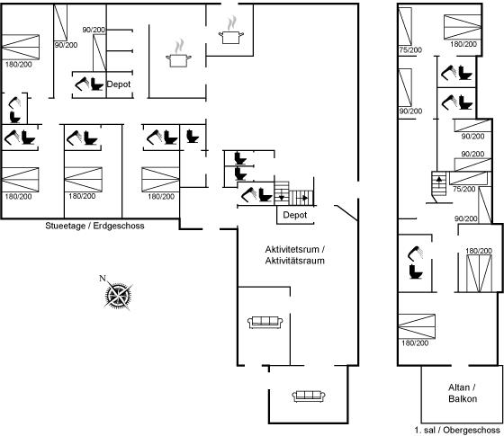 Das Ferienhaus bietet 20 Schlafplätze plus 2 Kinderbetten an. Die Wohnfläche von 512 m² erstreckt sich über 2 Etagen und das Haus wurde 1920 erbaut und 2005 renoviert. Es ist erlaubt, 2 Haustiere mitzubringen. Die Unterkunft verfügt über eine Waschmaschine und einen Wäschetrockner. Es gibt 2 Kinderhochstühle. Das Ferienhaus liegt auf einem 3000 m² großen Garten-/Strandgrundstück, das von einer Straße zwischen dem Haus und dem Grundstück aufgeteilt ist. Der Fjord liegt 50 m entfernt. Direkter Zugang zur 80 m² großen Sonnenterrasse. Balkon. Es gibt einen Geräteraum. Parkplatz am Ferienhaus. Am Wasser gibt es eine große Lagerfeuerstelle.