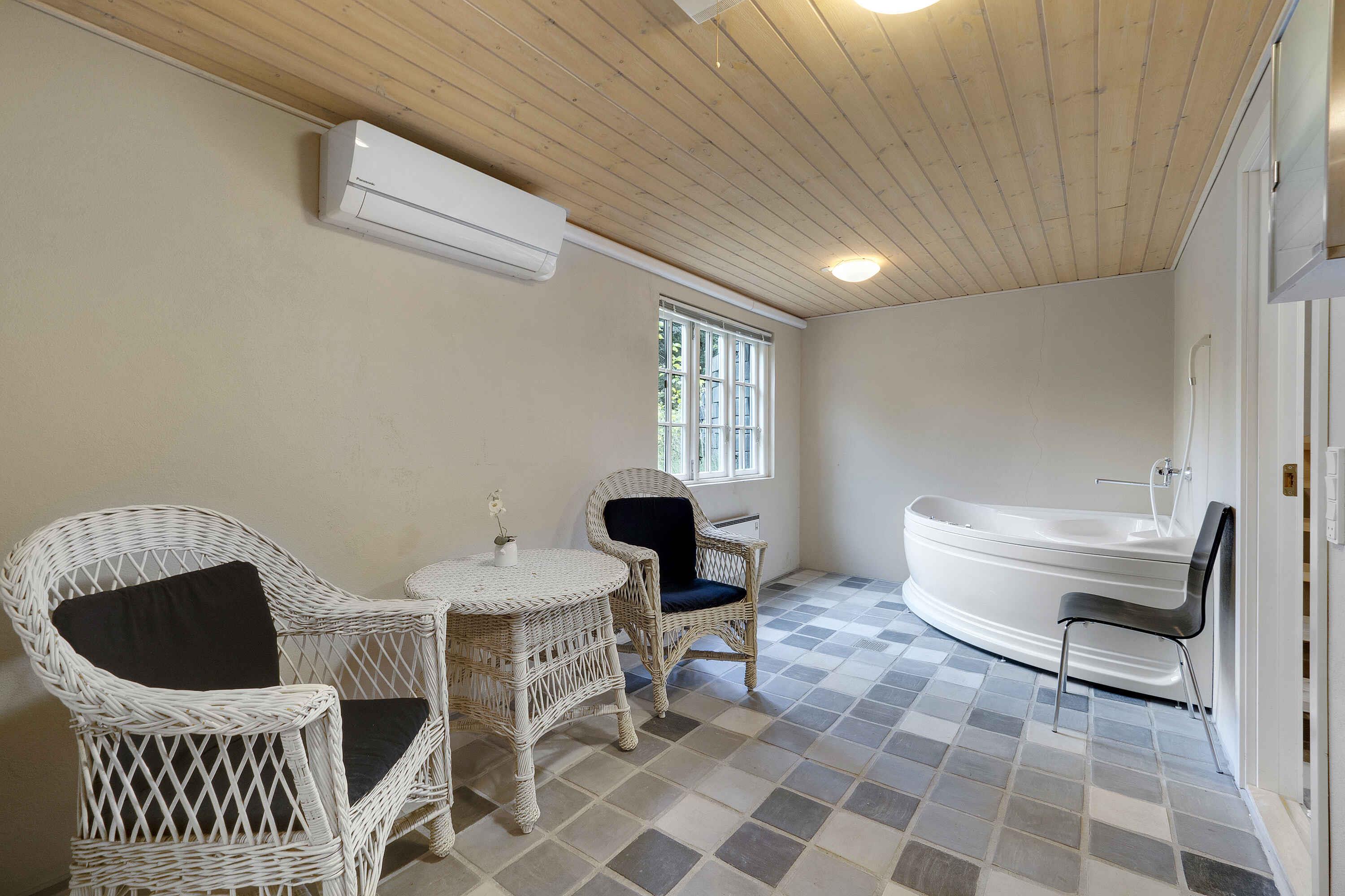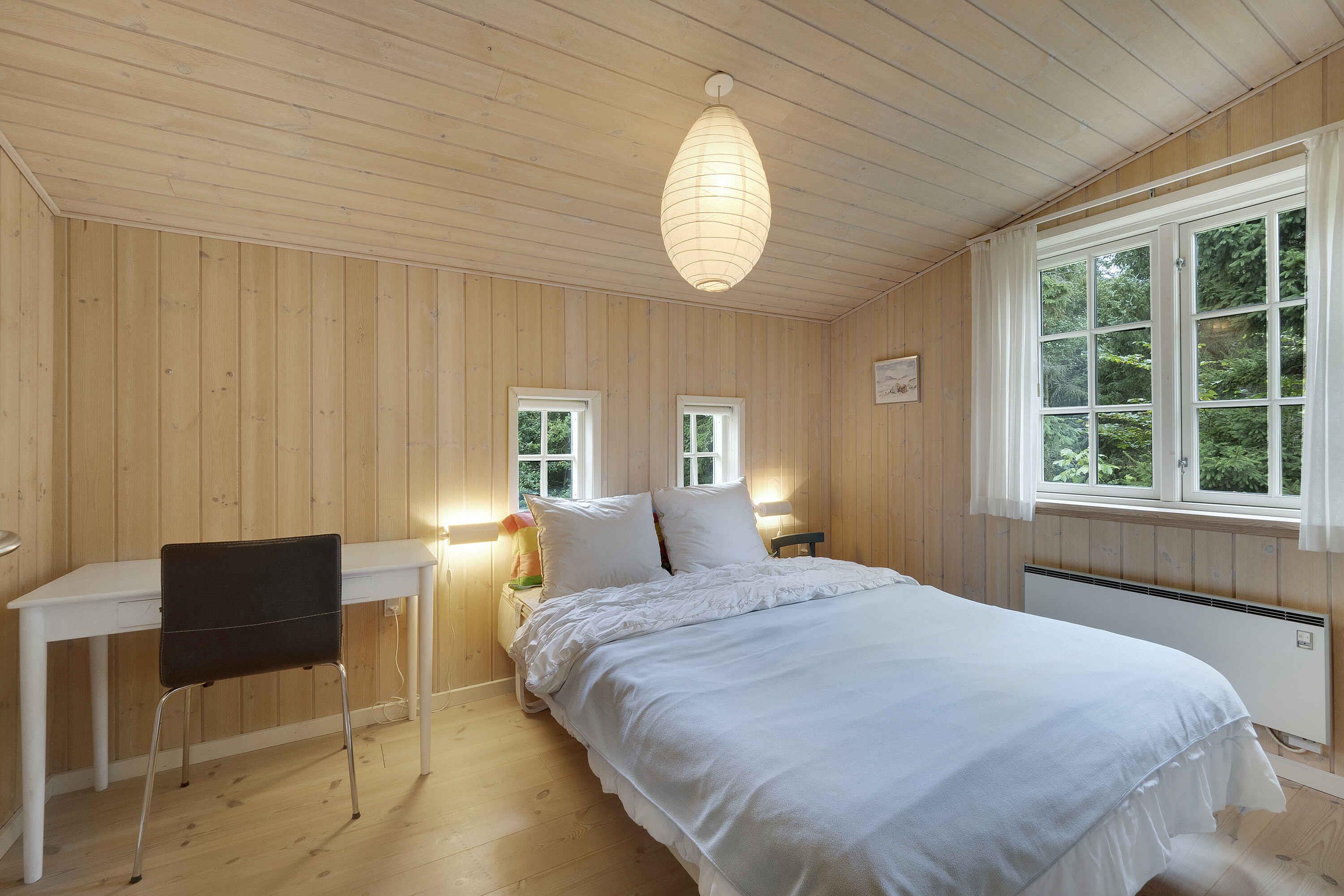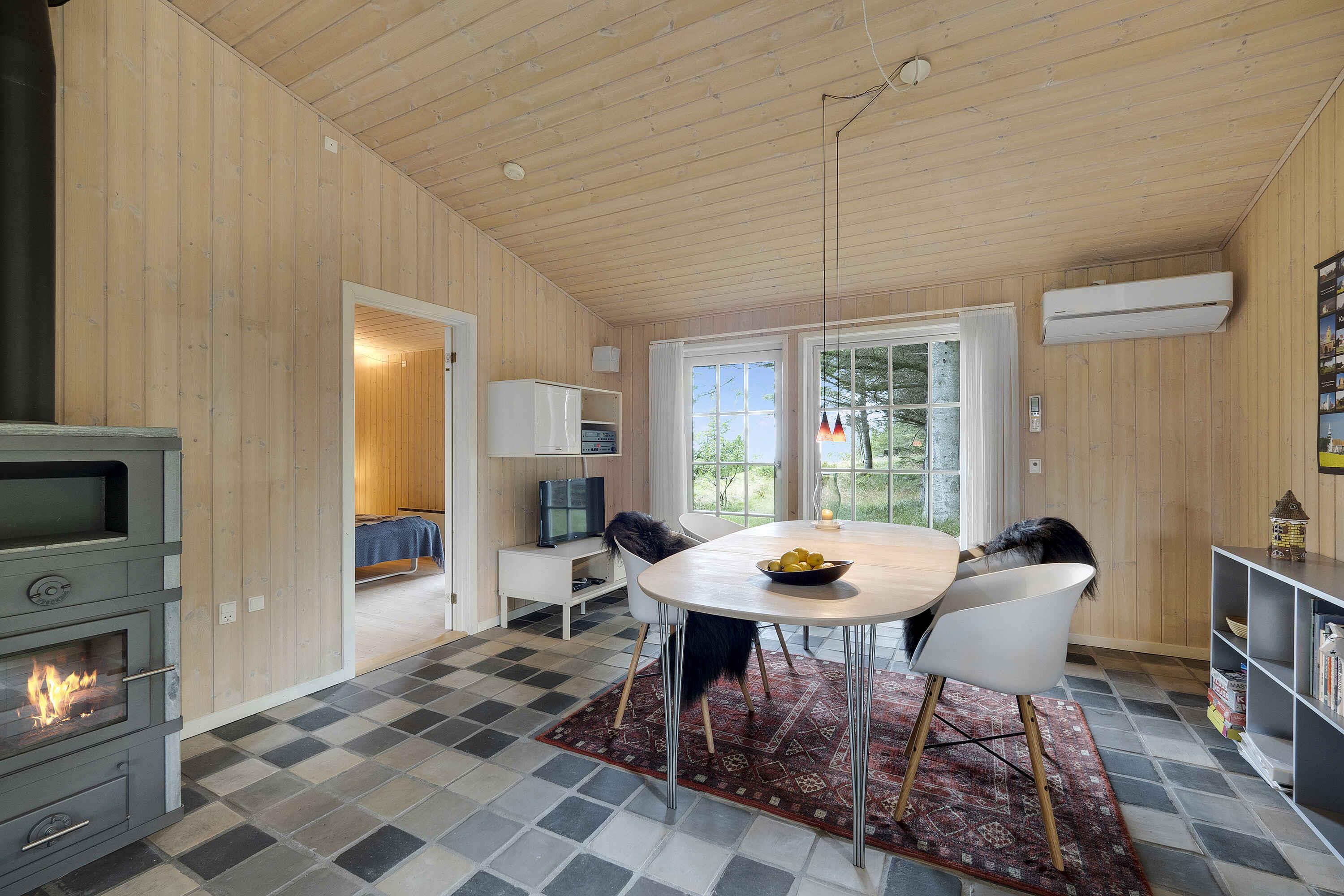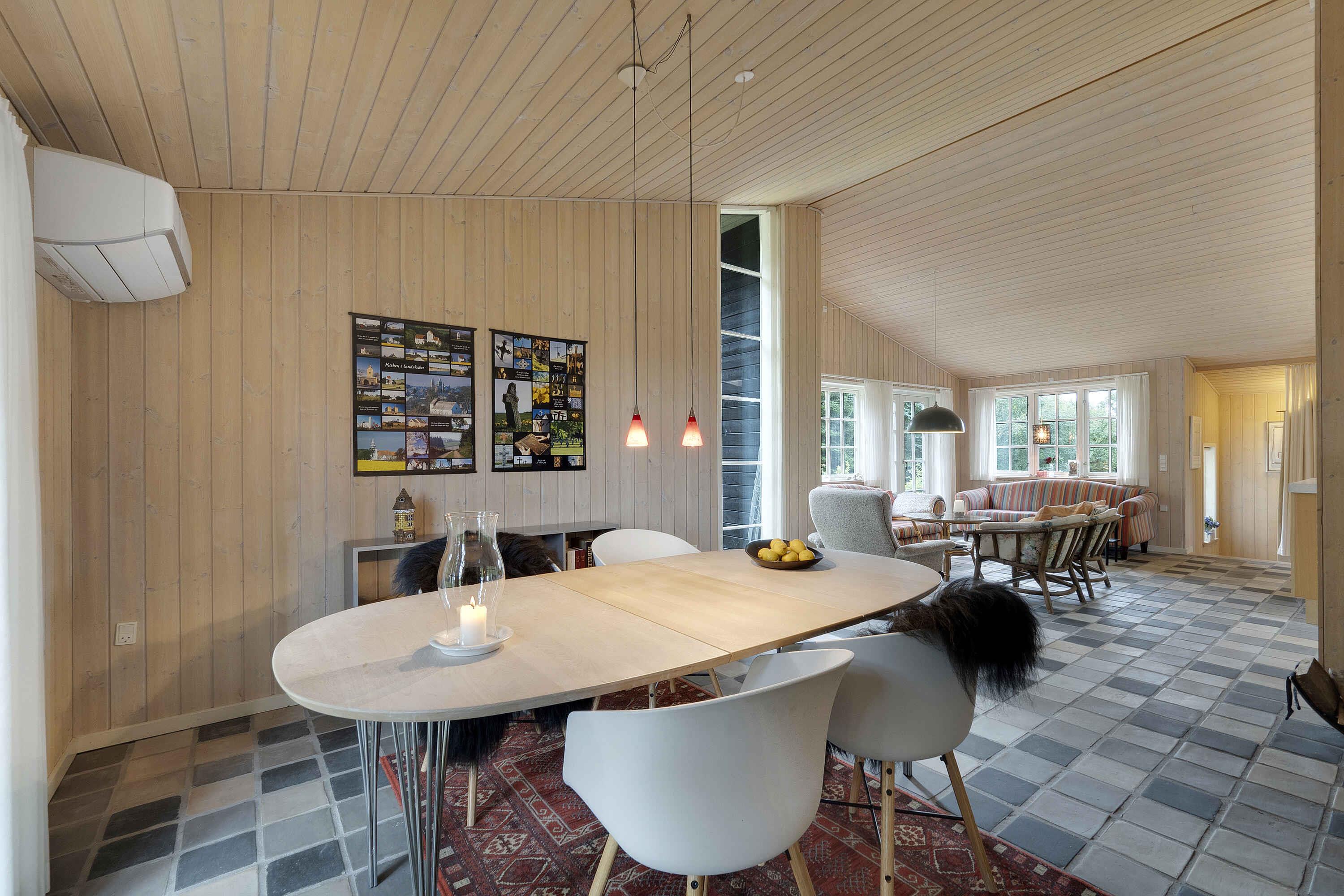 Das Ferienhaus liegt idyllisch inmitten der Natur auf einem 5.000 m² großen Naturgrundstück, nur 200 Meter vom Wasser entfernt. Das Haus verfügt über einen kombinierten Wohn- und Essbereich mit gut ausgestatteter Küche. Vom Esstisch aus hat man Blick auf das Wasser. Die gemütliche Sofaecke bietet ausreichend Platz für die ganze Familie und ist mit mehreren Sofas, Sesseln, kleinen Tischen und Leselampen eingerichtet. Im Wohnbereich stehen ein Smart-TV, Radio und CD-Player zur Verfügung. Ein Chrome-Dongle sowie ein HDMI-Anschluss ermöglichen die Verbindung mit dem Fernseher. Kostenloses Glasfaserinternet ist vorhanden und kann sowohl drahtlos als auch kabelgebunden genutzt werden. Es gibt zwei Schlafzimmer mit ¾-Betten sowie ein Schlafzimmer mit zwei Einzelbetten. Alle Schlafzimmer bieten ausreichend Schrankplatz. Zusätzlich stehen zwei Federkernmatratzen zur Verfügung, die bei Bedarf auf den Boden gelegt werden können. Ein Schlafzimmer hat direkten Zugang zu einem Badezimmer mit Dusche, Waschbecken und WC. Das zweite Badezimmer ist mit Dusche, Whirlpool, Zugang zur Sauna sowie einem WC in einem separaten kleinen Raum ausgestattet. Korbmöbel laden nach dem Baden zum Entspannen ein. Der Eingangsbereich ist eine überdachte, nach Westen ausgerichtete Terrasse, die direkt an die Küche anschließt – ideal für einen kleinen Imbiss vor dem Abendessen. Am nördlichen Ende des Grundstücks befindet sich ein kleiner Wald, der zu Erkundungen einlädt. Zudem kann man von einer eigenen Bank aus die dramatische Landschaft sowie den Sonnenuntergang über dem Limfjord und der Insel Mors genießen. An mehreren Stellen auf dem Grundstück bieten sich einzigartige Ausblicke auf Wasser und Küste. Da das Haus in den Hügeln liegt und direkt an der Nordküste von Fur, beginnt ein Großteil der schönen Wanderwege der Insel direkt vor der Haustür. Mehrere Strände sind ebenfalls fußläufig erreichbar. Der nächstgelegene Strand ist 700 Meter entfernt und über die wenig befahrene Waldstraße Emmelstenvej zu erreichen. Fur eignet sich hervorragend für Radtouren. Fahrräder können an der Touristeninformation am Hafen gemietet werden, etwa 6 km entfernt. Der Jesperhus Blumenpark ist mit dem Auto gut erreichbar und bietet neben dem Blumenpark auch Innen- und Außenwasserattraktionen. Auch der wilde Nationalpark Thy liegt innerhalb erreichbarer Fahrdistanz, zum Beispiel 78 km bis Stenbjerg Ladeplads. Musikinteressierte finden die Brauerei Fur Bryghus weniger als 5 km entfernt, wo während der Saison sowohl kleine als auch größere Konzerte stattfinden. Aktuelle Informationen finden Sie auf der Website des Veranstaltungsortes. Nicht an Jugendgruppen vermietet. Besonderer Hinweis zum drahtlosen Netzwerk: Im Haus selbst befinden sich keine drahtlosen Zähler oder ähnlichen Geräte. Diese sind in einem Schuppen in 30 Metern Entfernung untergebracht. Wird das drahtlose Netzwerk im Haus ausgeschaltet, kann der Urlaub mit einer vergleichsweise geringen elektromagnetischen Belastung genossen werden. Achtung: Wird nicht für gewerbliche Nutzung vermietet.